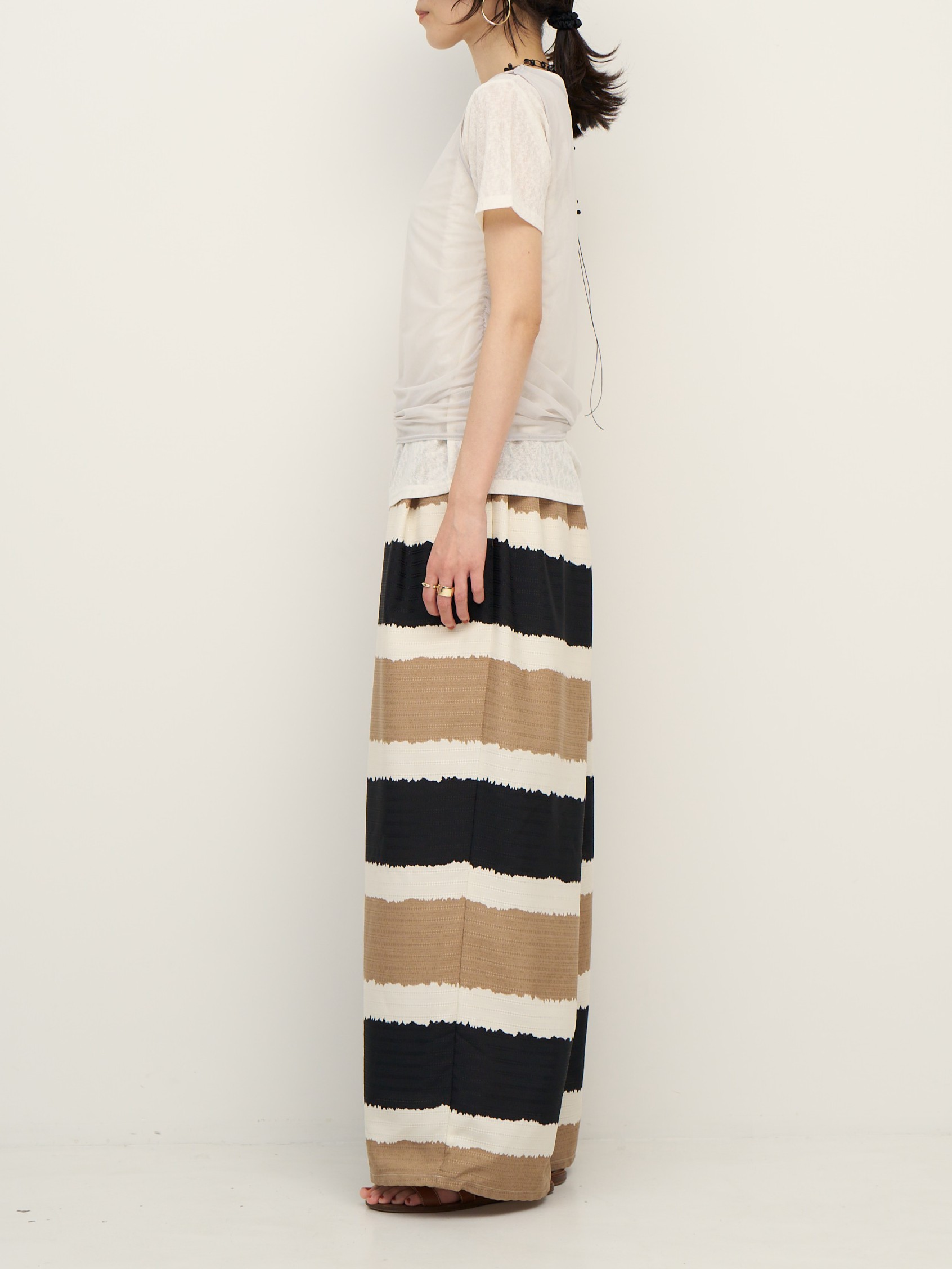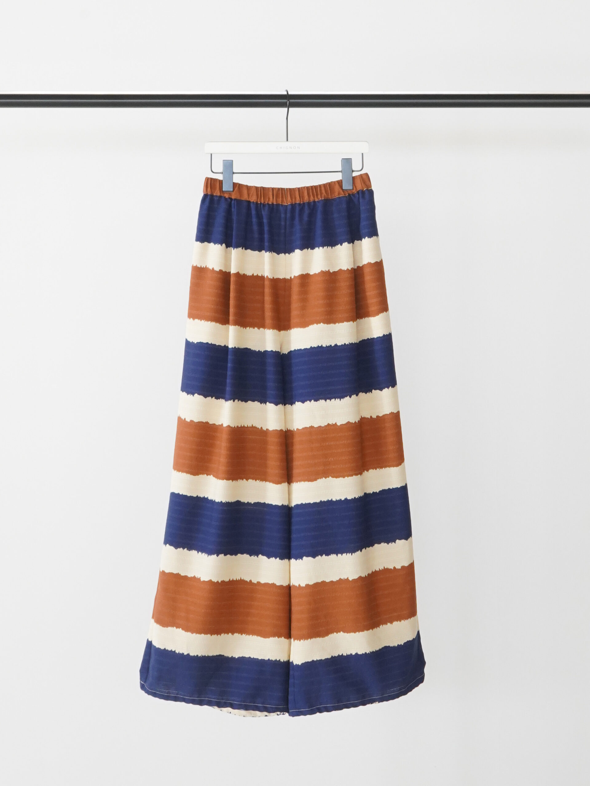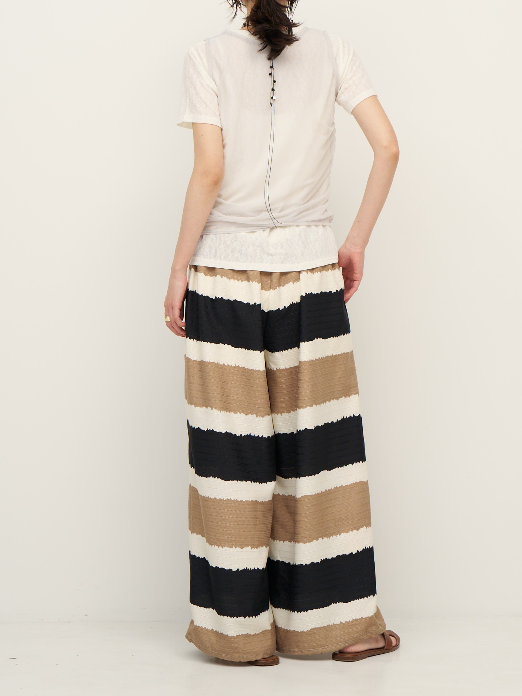 着映えするオリエンタルなボーダー柄で作った、2WAYバルーンパンツ。