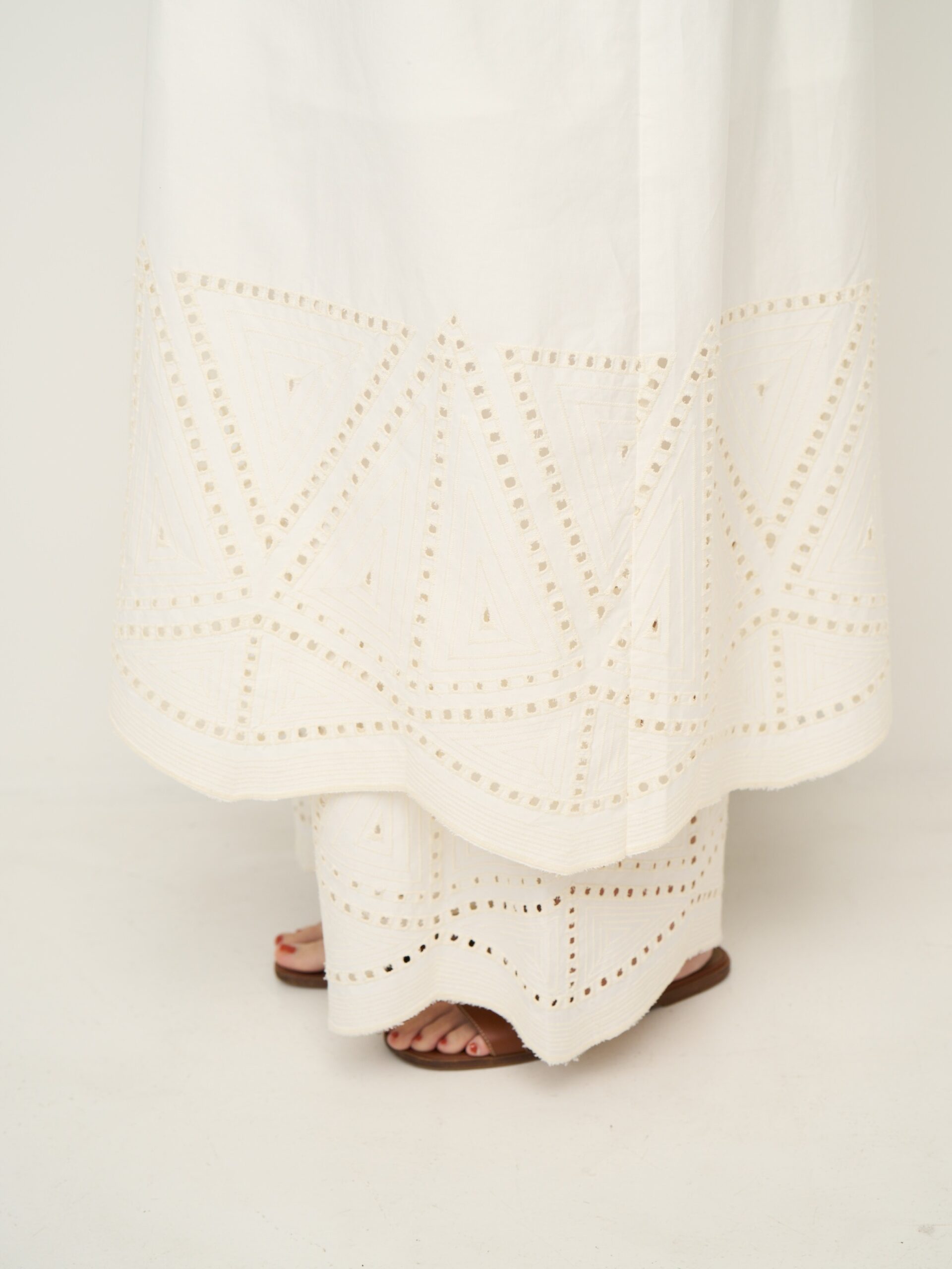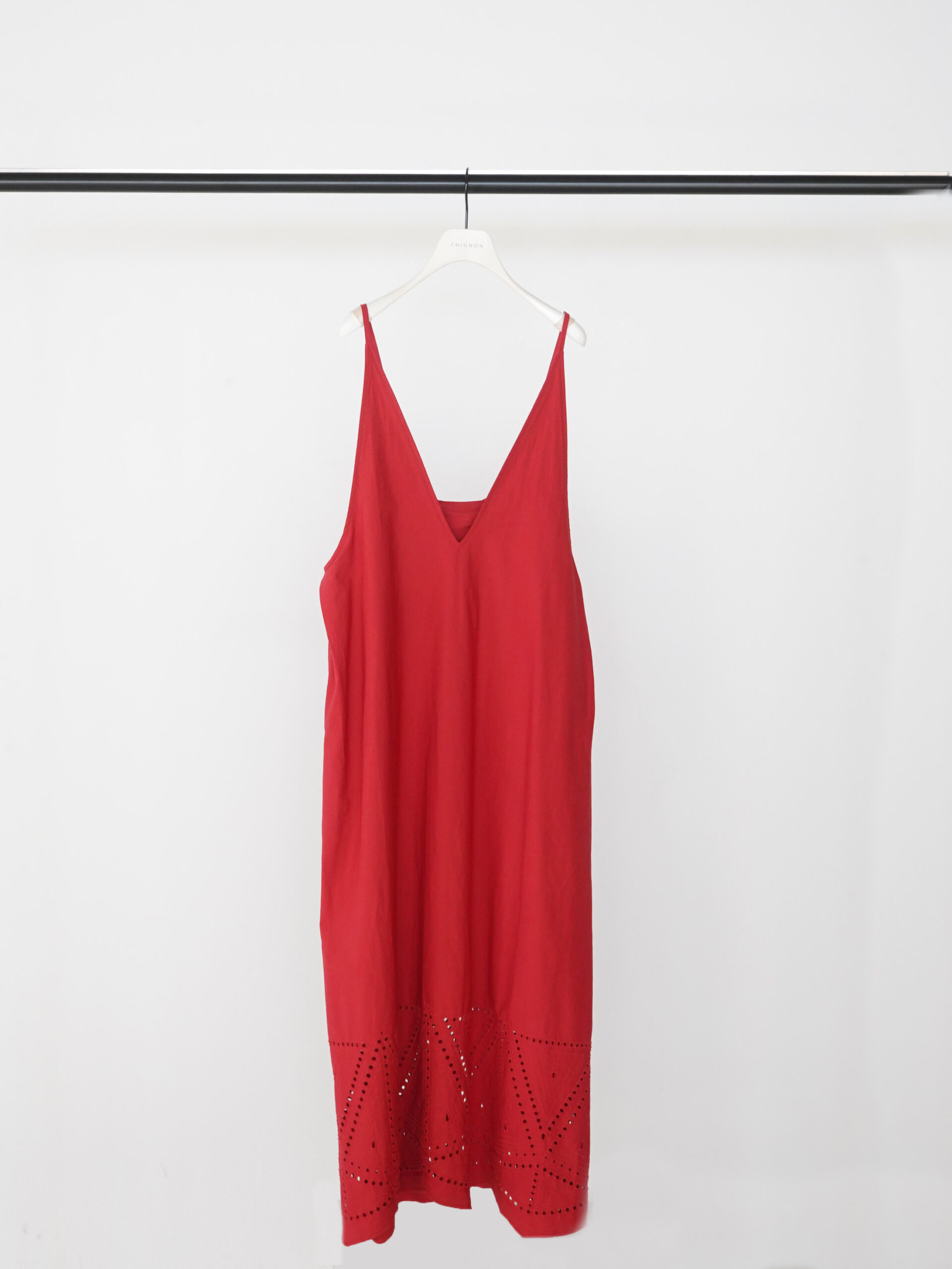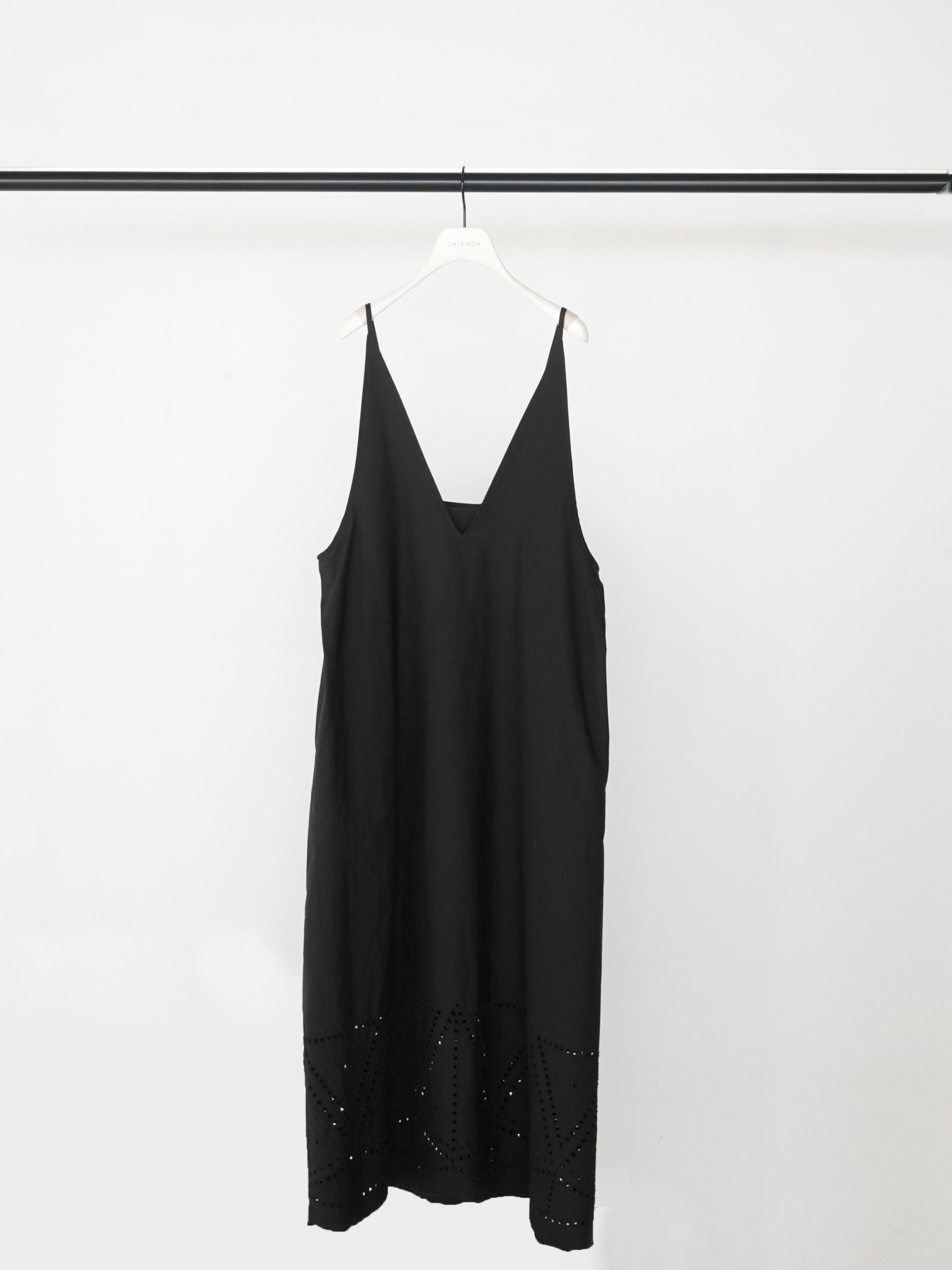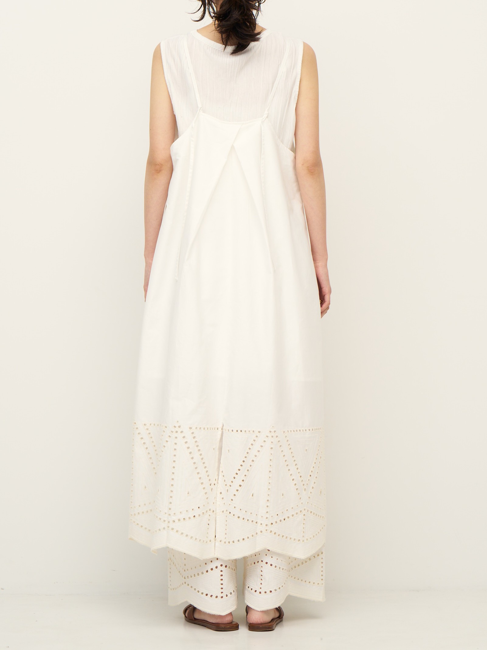 裾に施されたカットワーク刺繍が印象的なキャミソールワンピース。