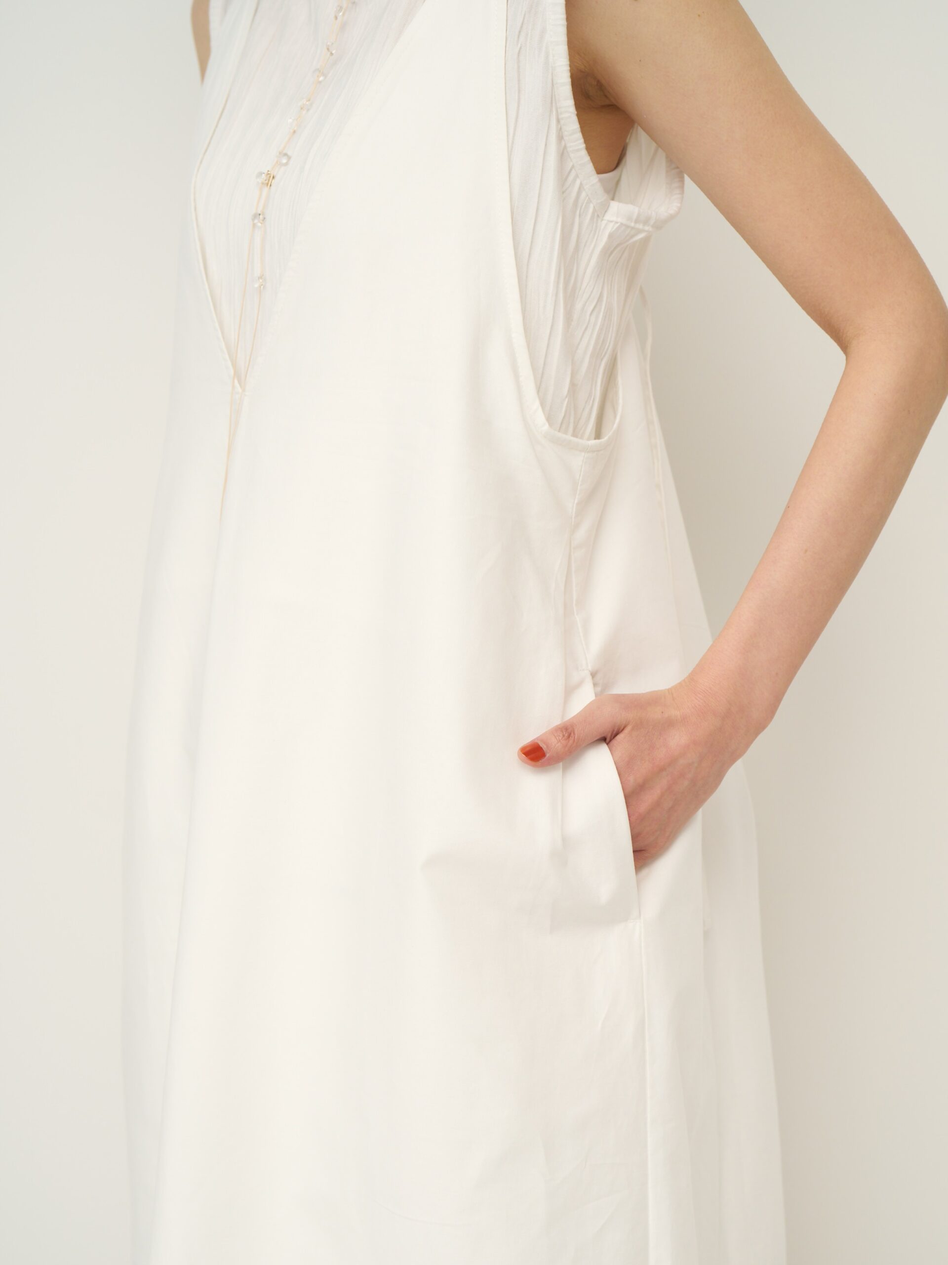 肩紐は後ろで調整が可能、後中心に深めのタックを入れて裾に動きを出しています。
