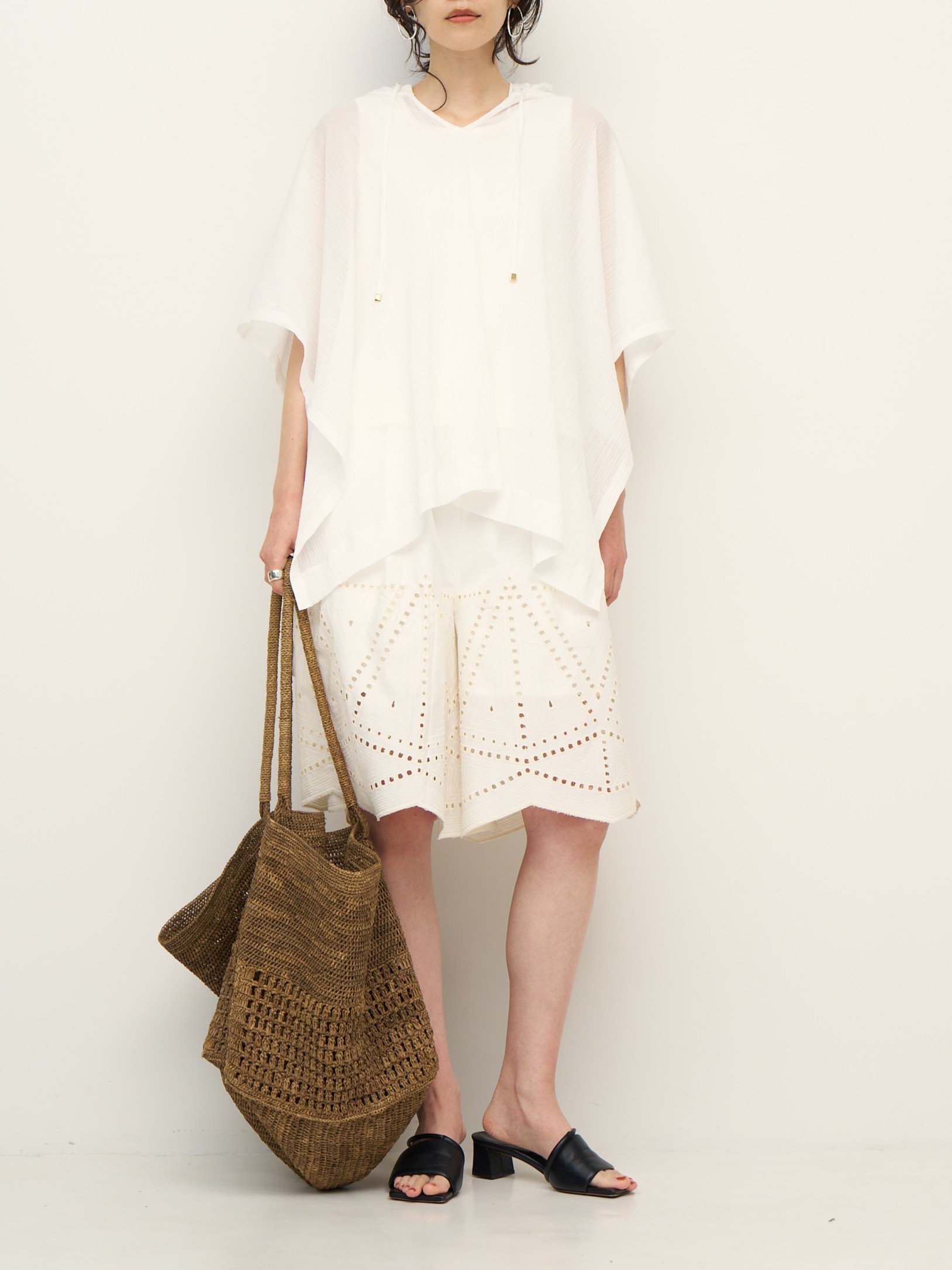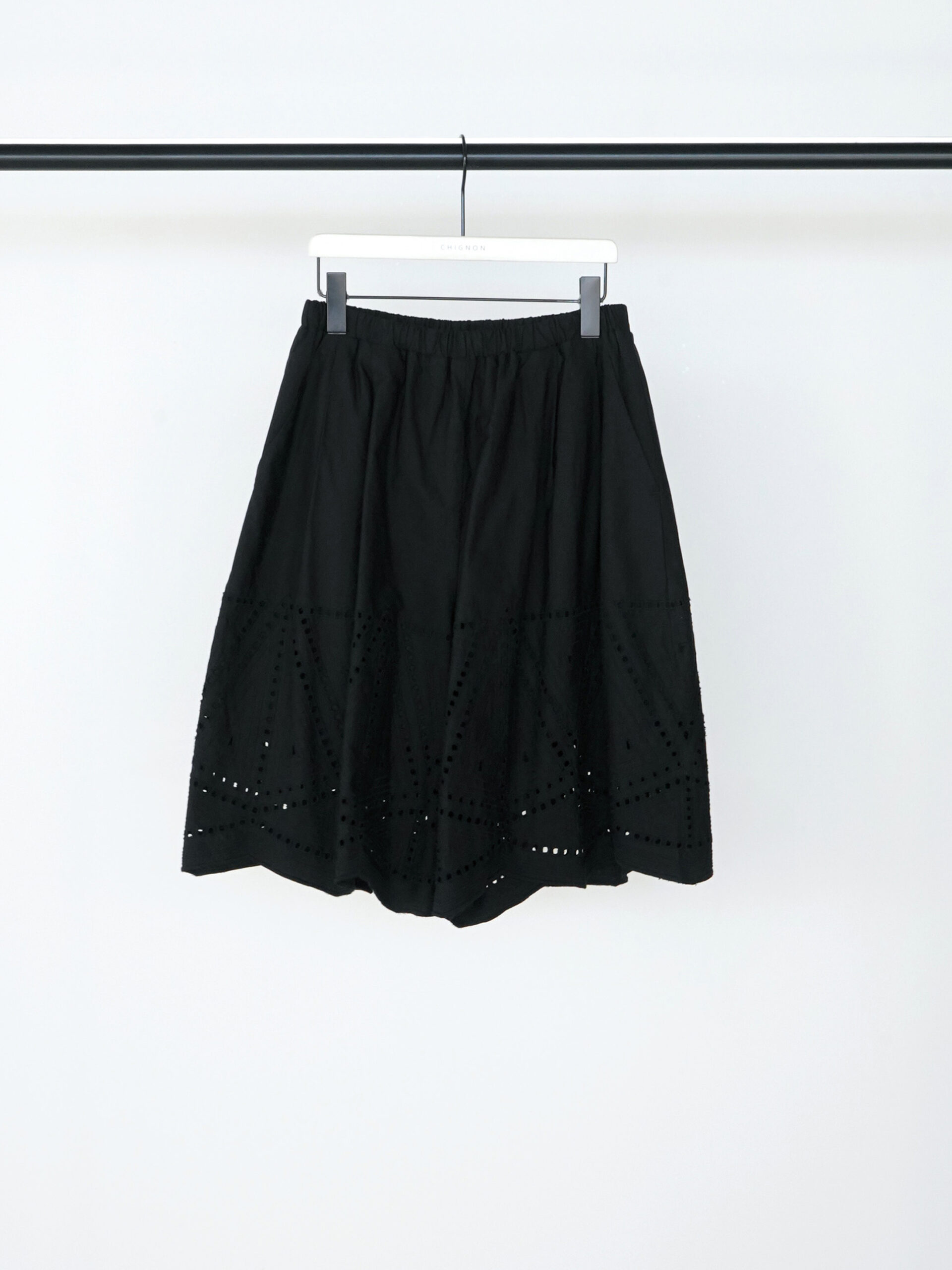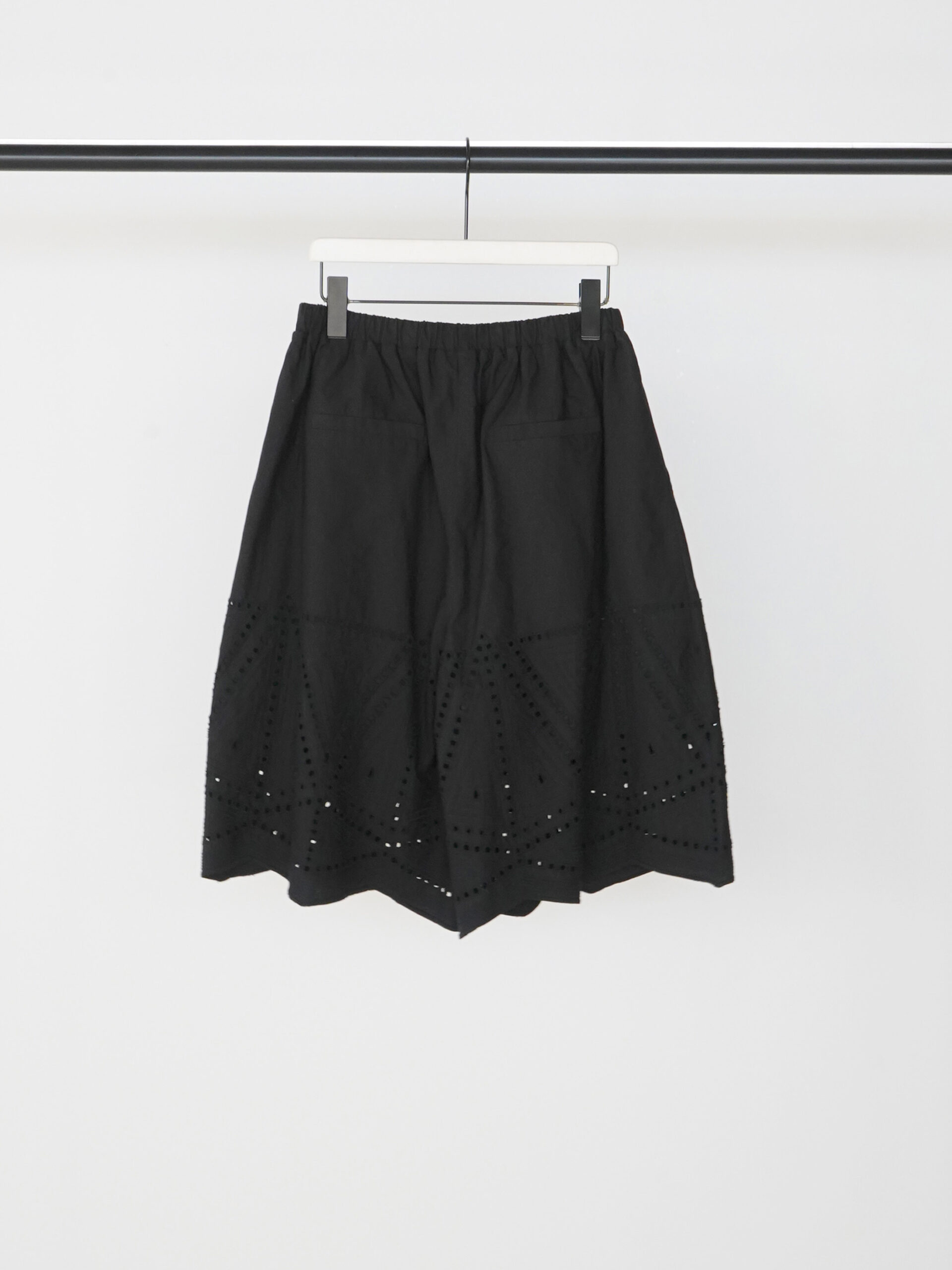 ナチュラルな雰囲気漂う、オリジナルのカットワーク刺繍入りハーフパンツ。