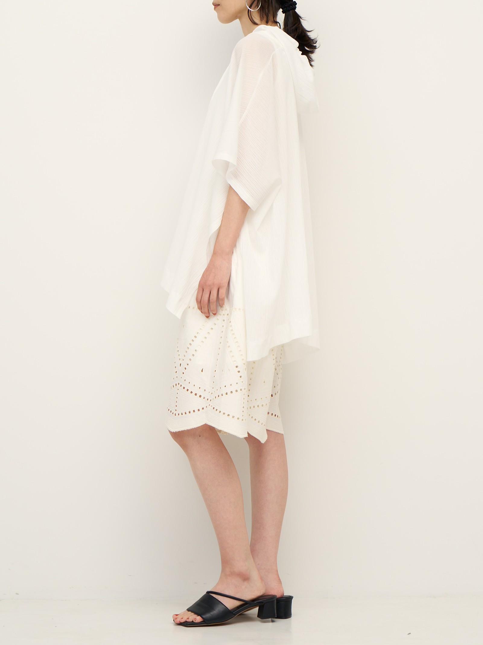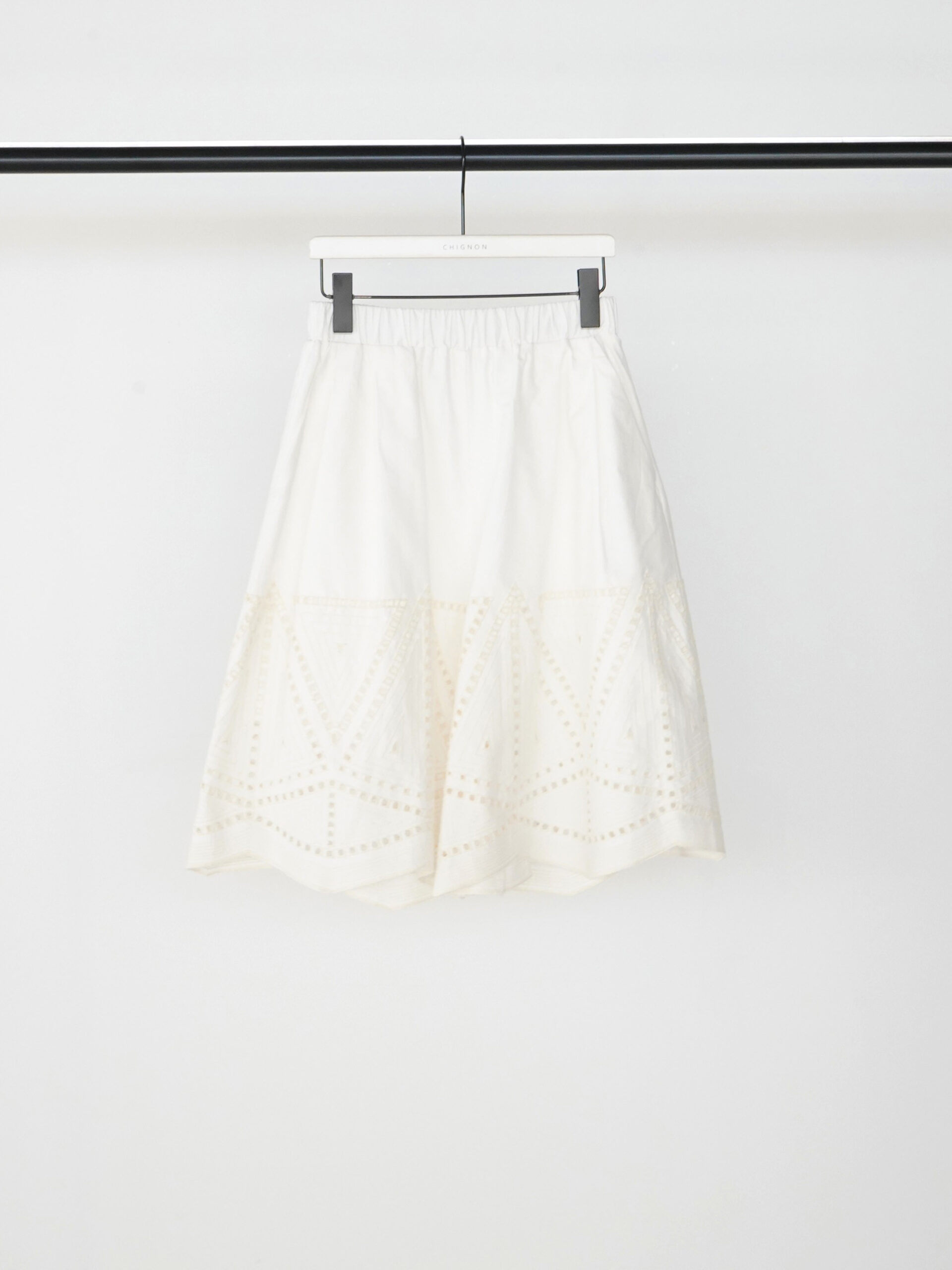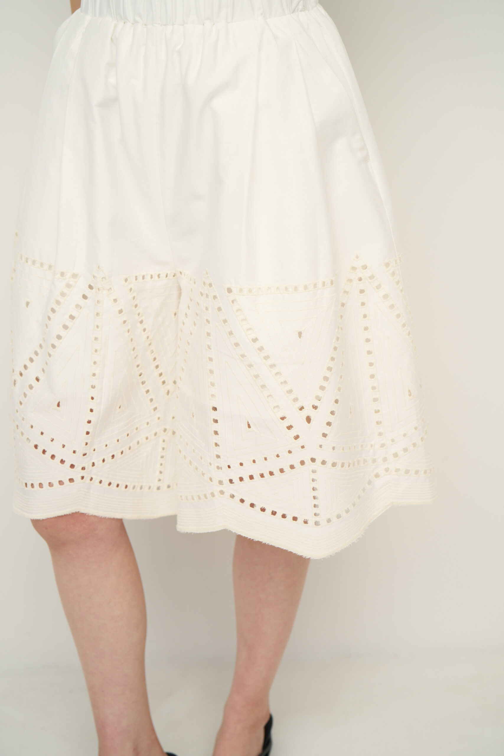 ナチュラルな雰囲気漂う、オリジナルのカットワーク刺繍入りハーフパンツ。