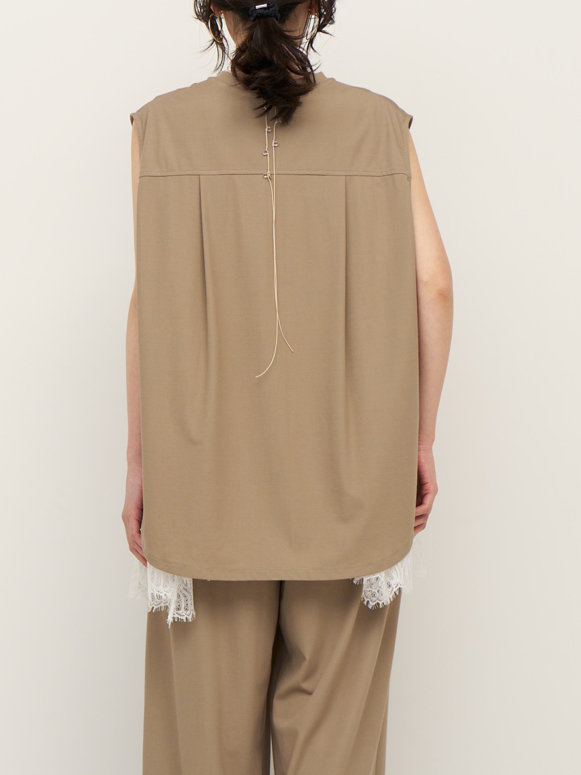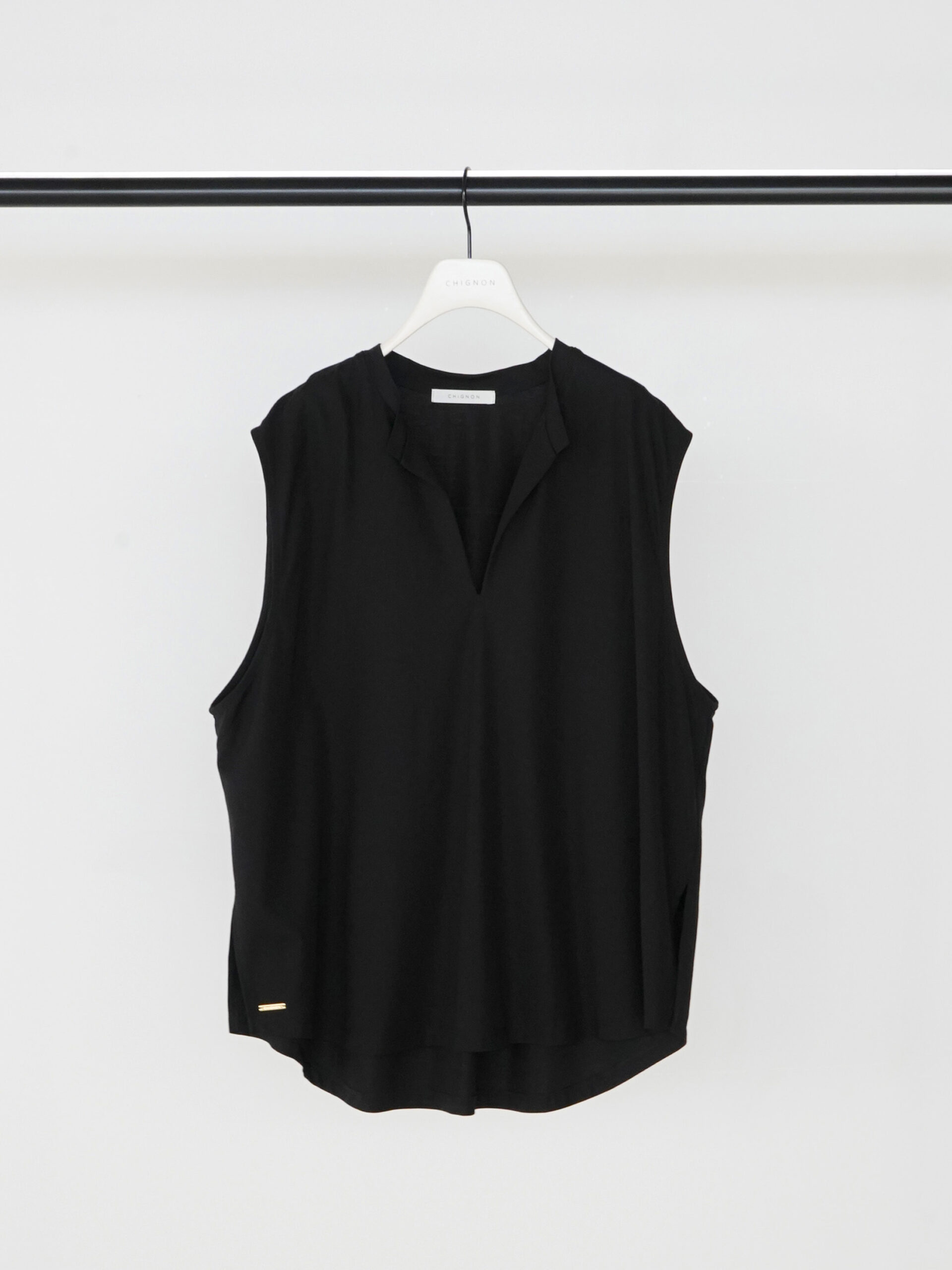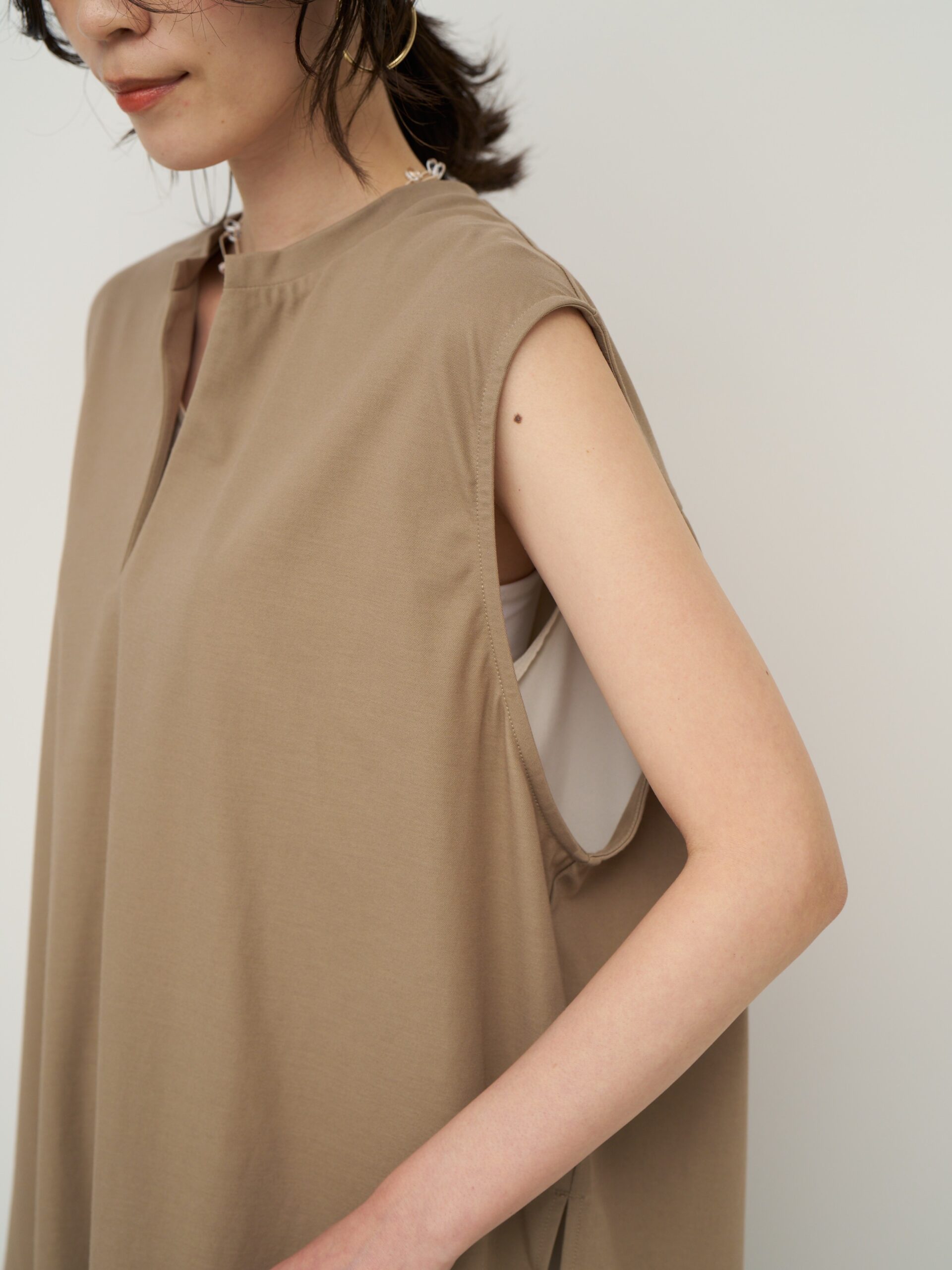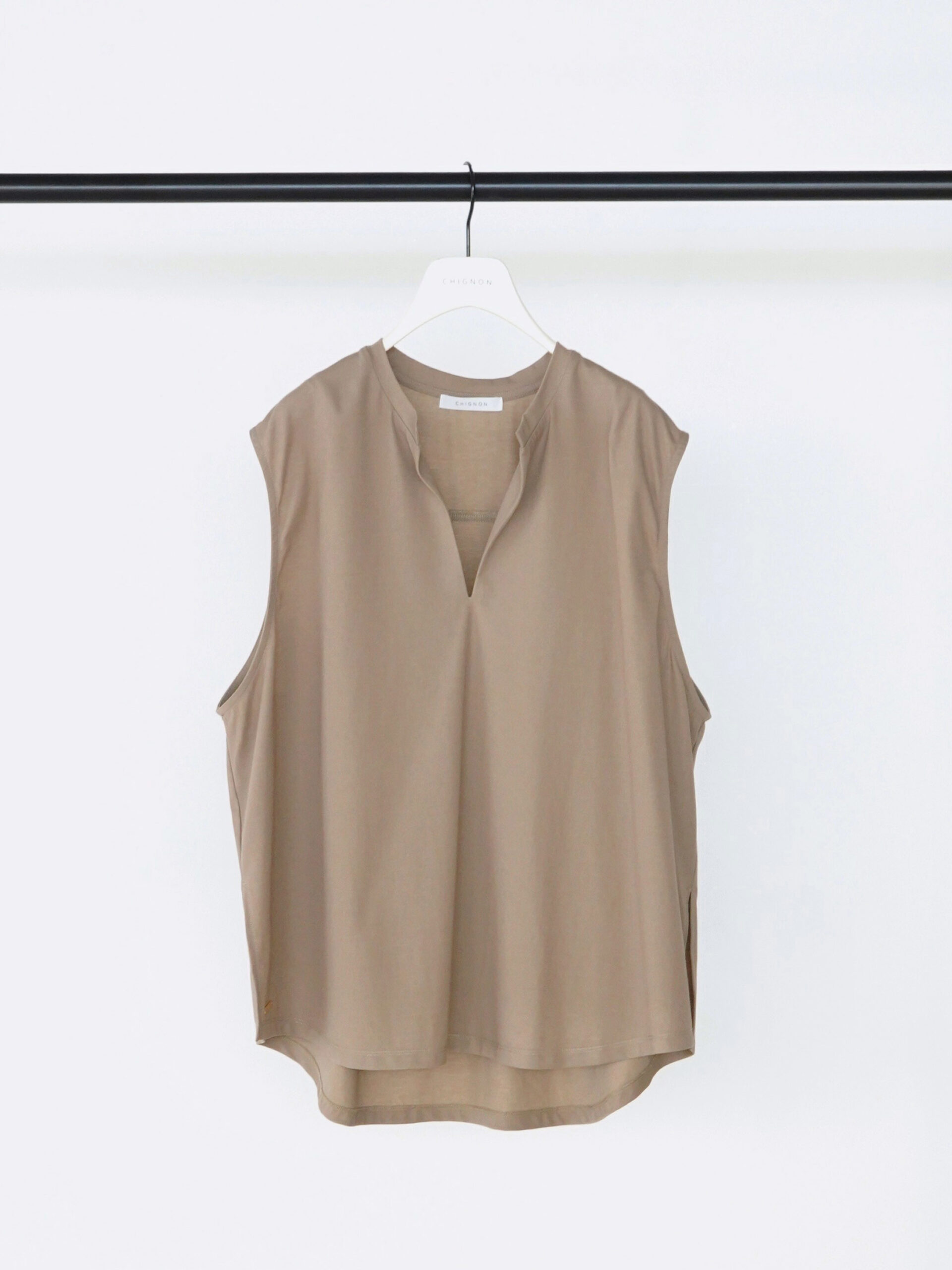 布帛見えするカットソー素材を使用した、スキッパータイプのプルオーバートップス。