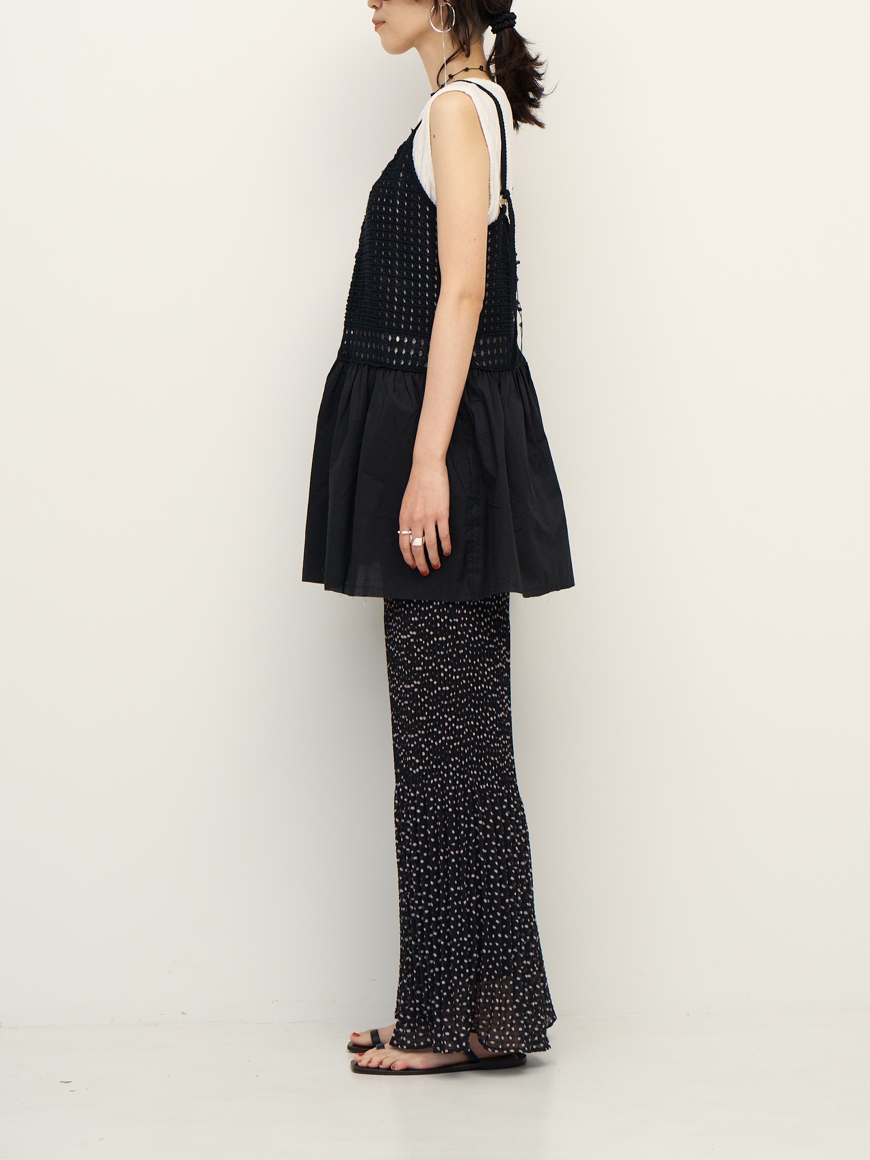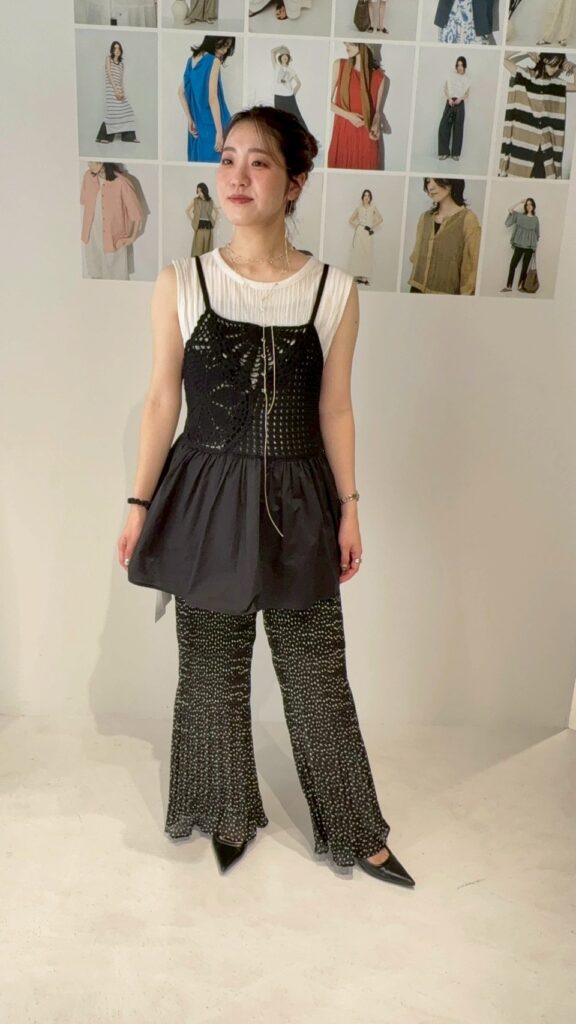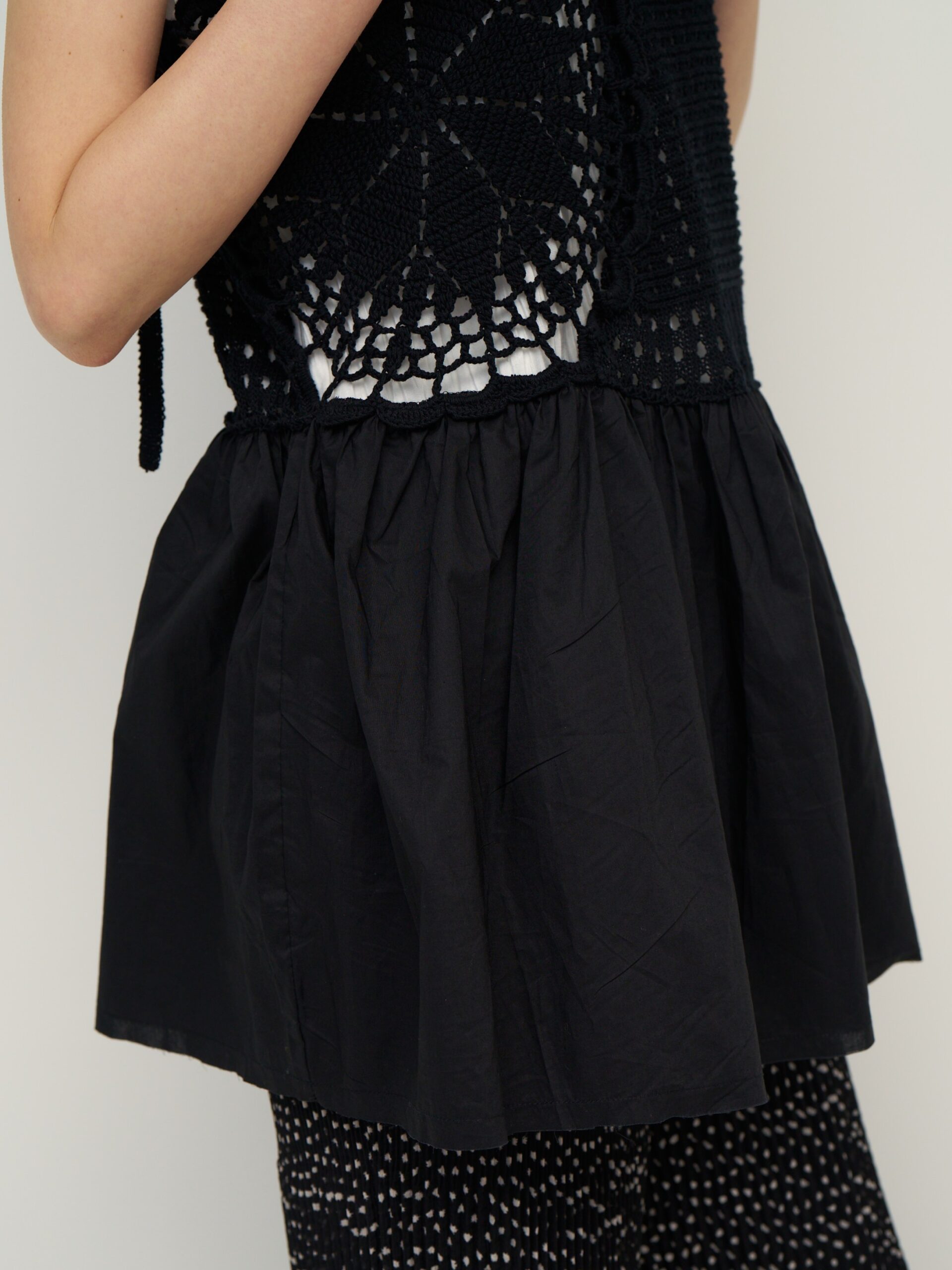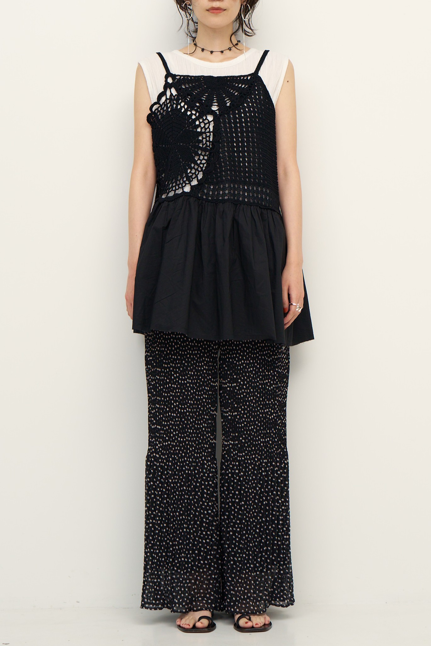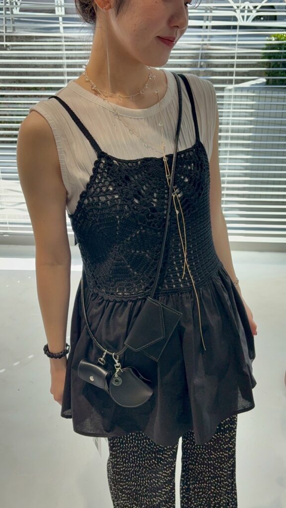 手編みのかぎ針編みが目を引く、存在感のあるプラスワンキャミソールトップス。