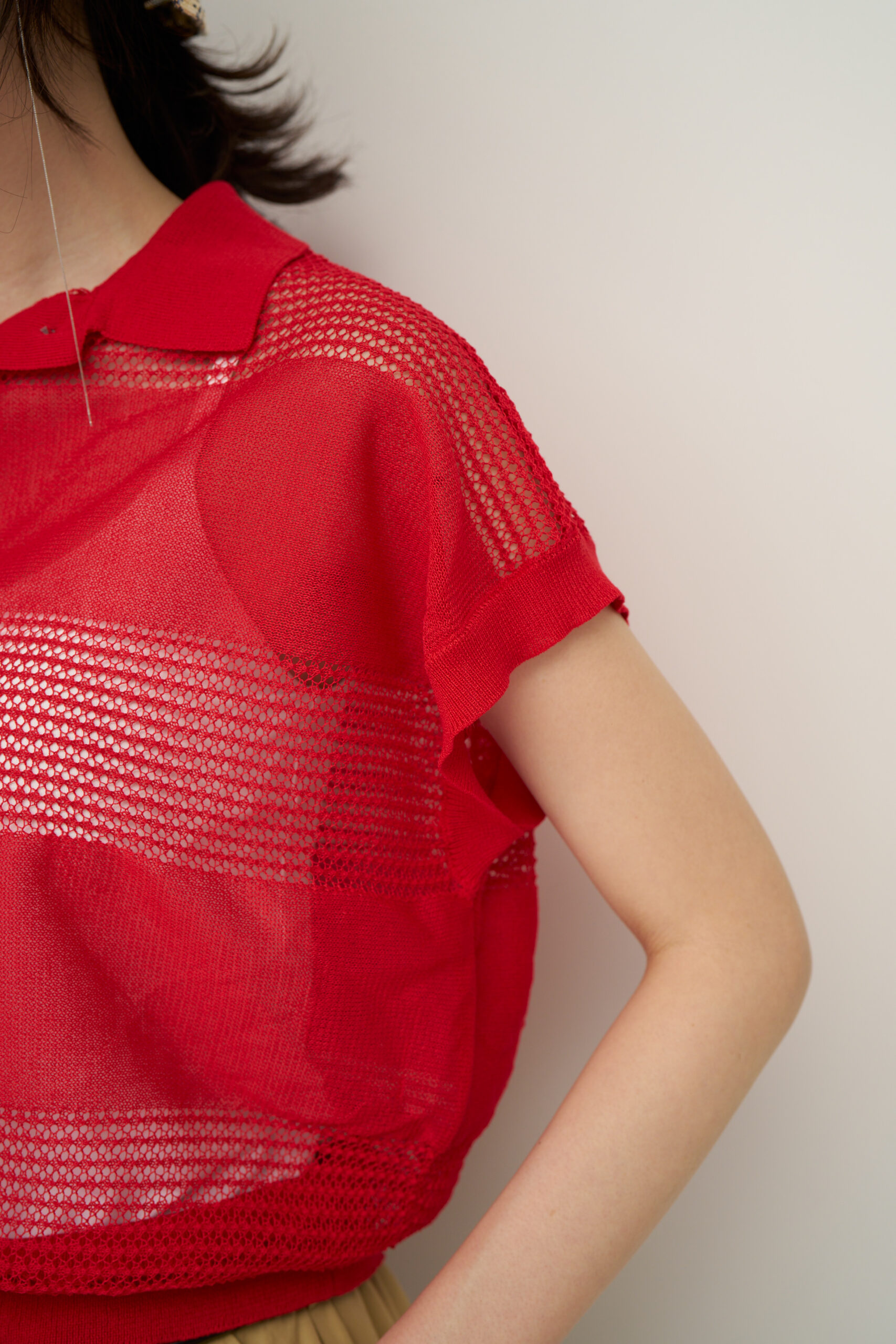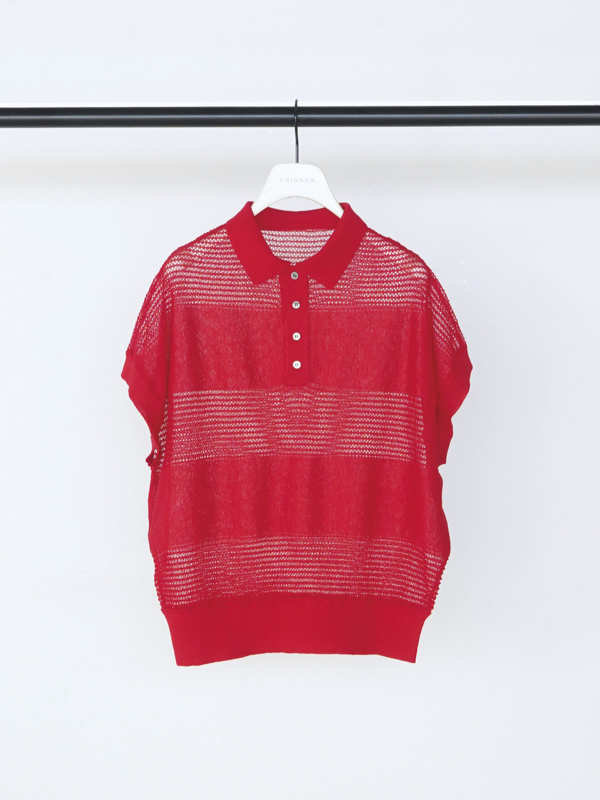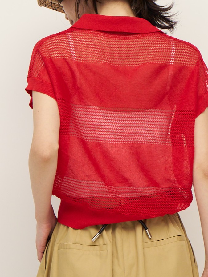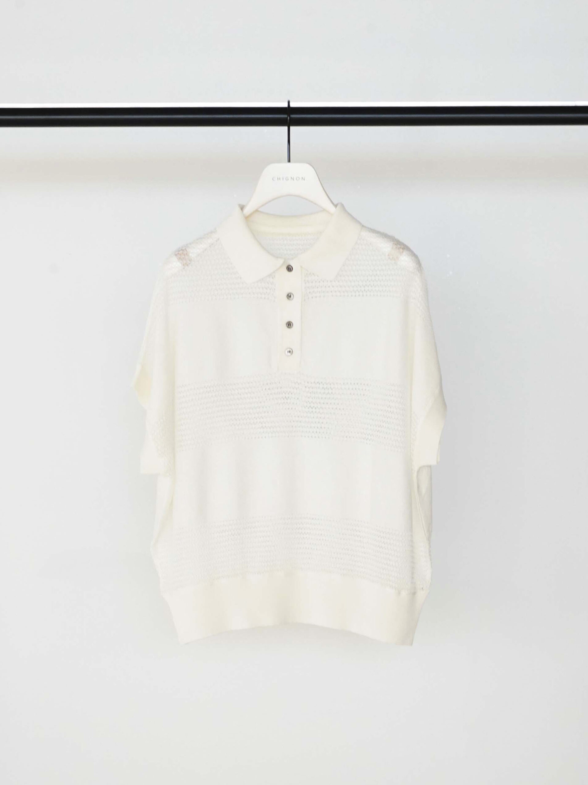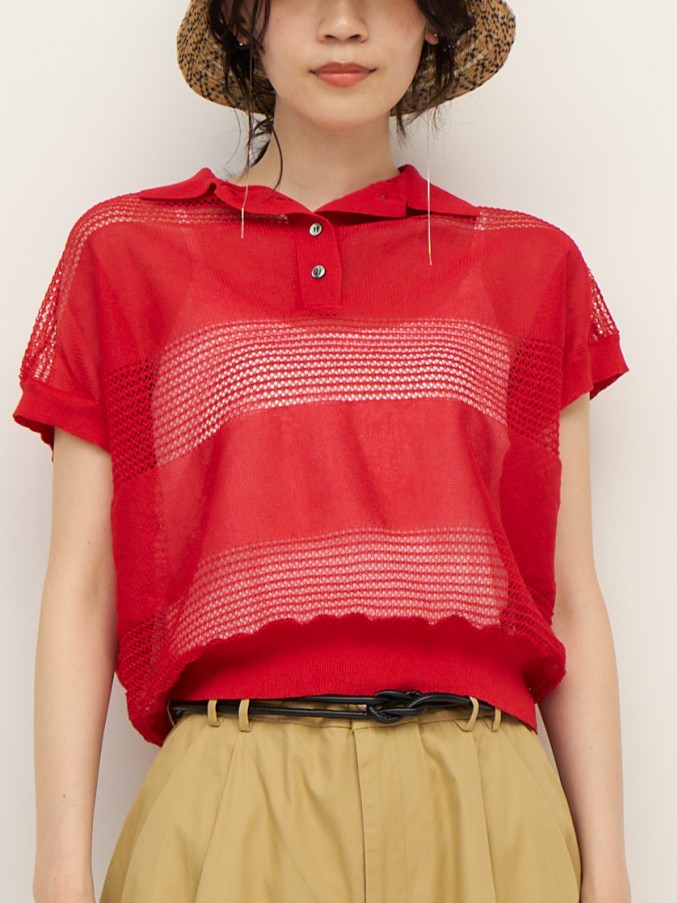 今季気になるポロシャツも、レース編みをミックスすることで、大人っぽくこなれ感のあるアイテムに。