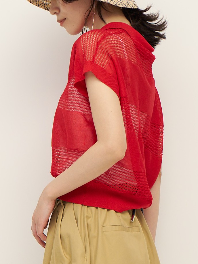 シャリ味のある糸を使用したドライタッチの素材感も夏にうれしいポイントです。