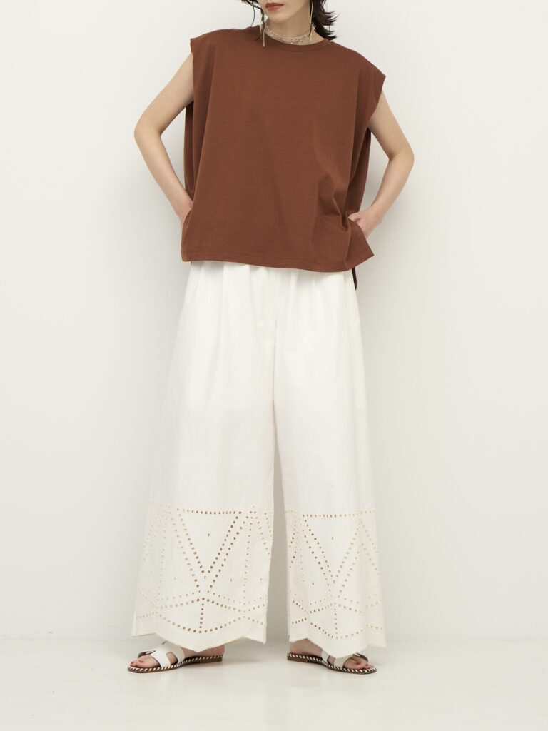 肩に光るゴールドパーツがスタイリングのアクセントになってくれます。