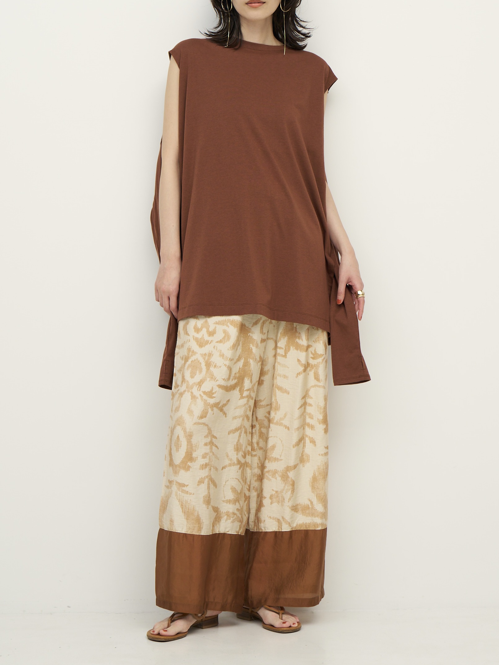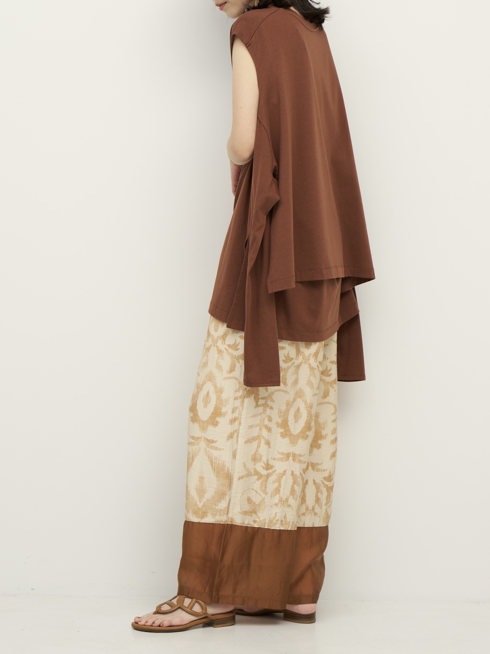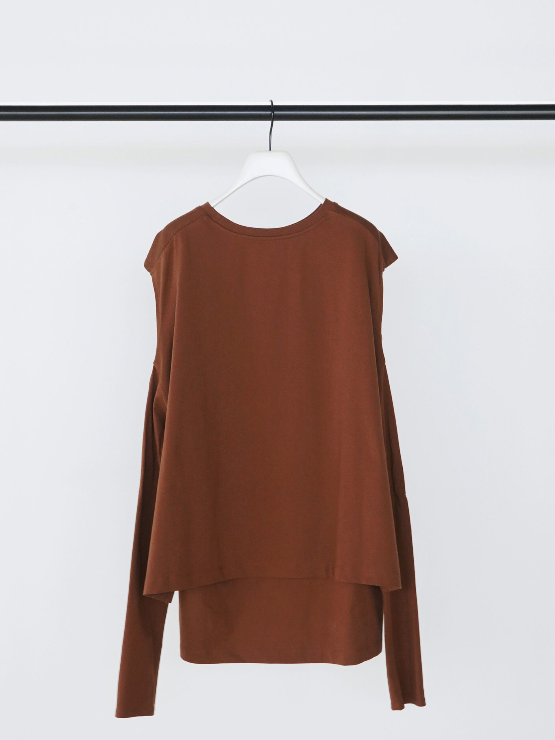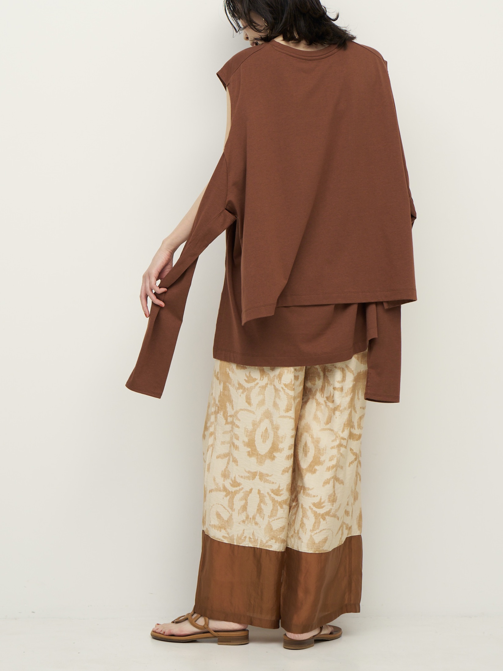 レイヤード風デザインながら、すっきりとしたIラインが作れるトップスなので、様々なシルエットのボトムスと相性抜群。