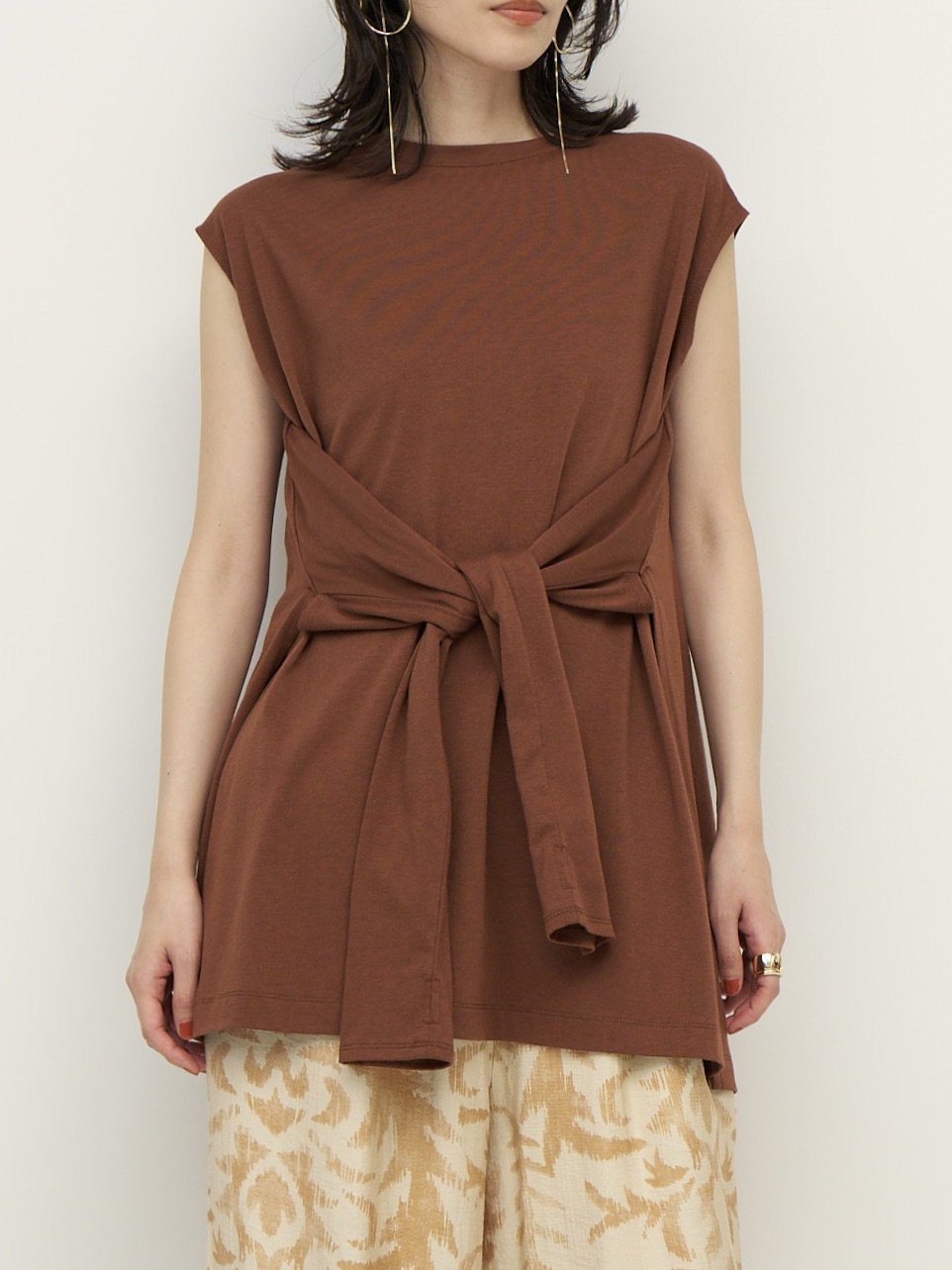 ウェストで結ぶ・ななめ掛け風に結ぶ・肩掛け風に結ぶなど、結ぶ系アレンジが自在で楽しい1枚です。