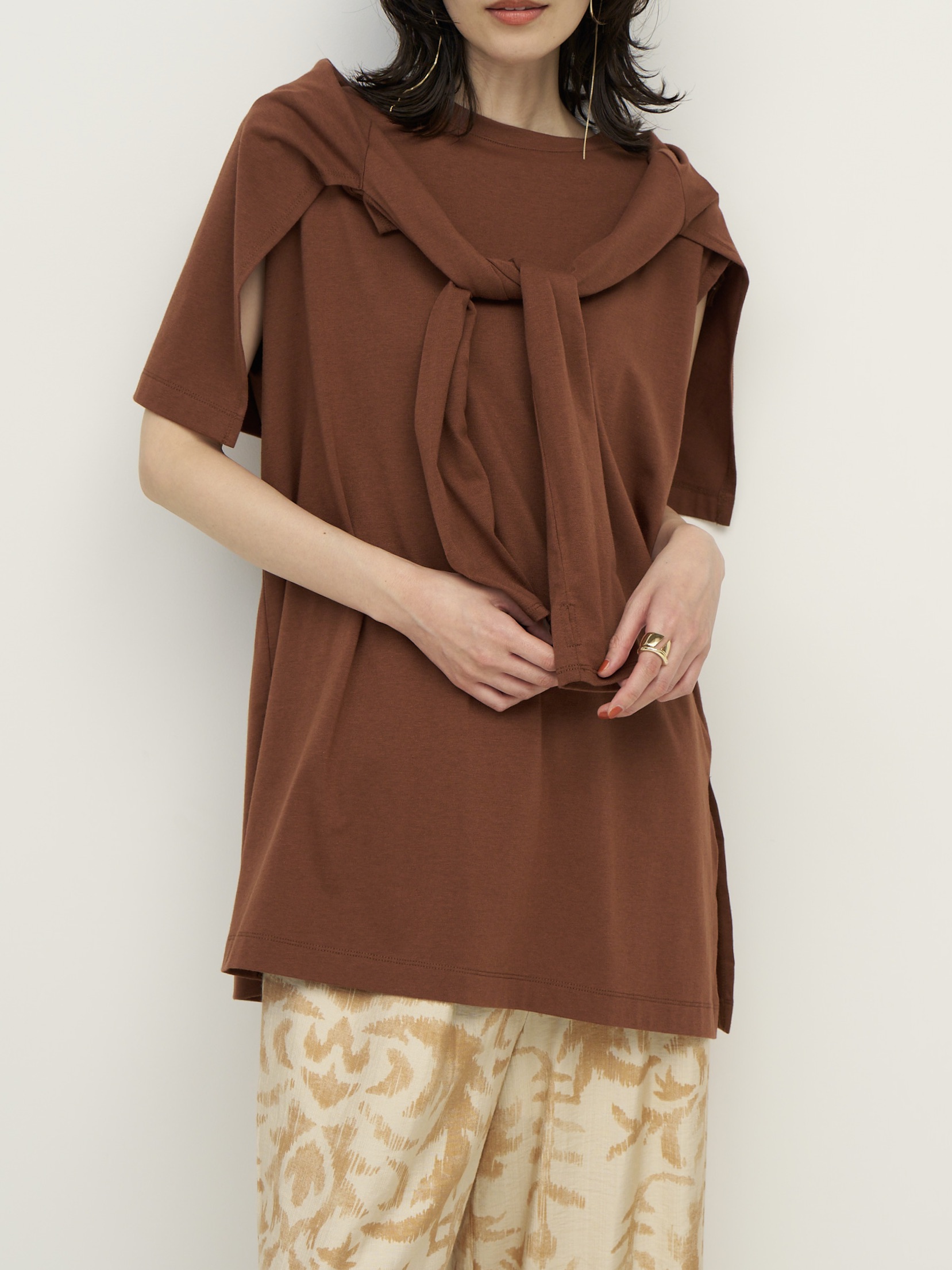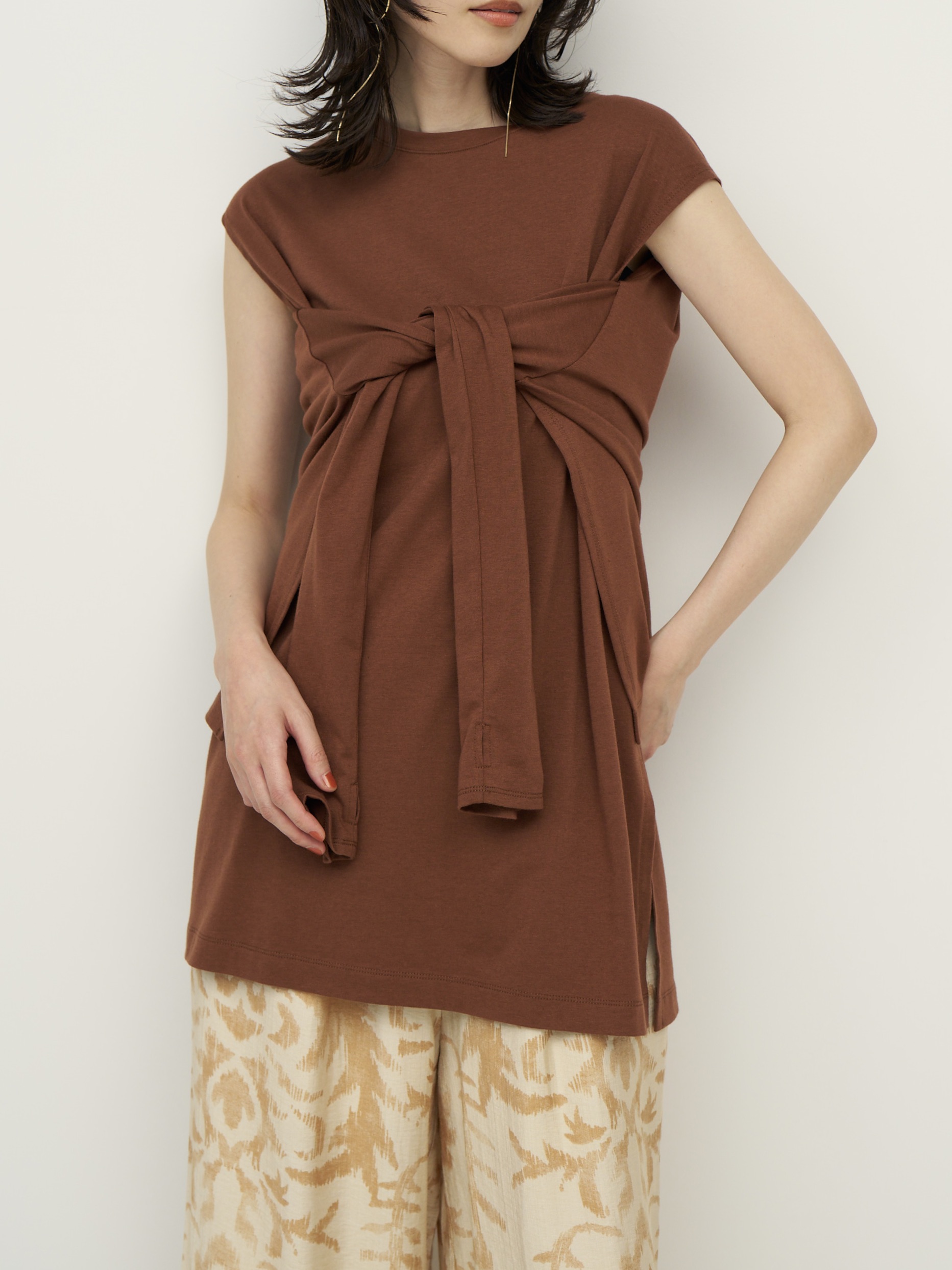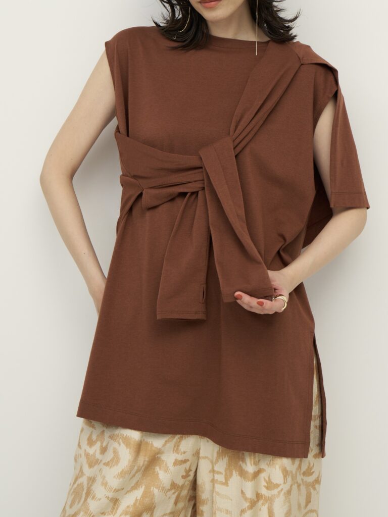 袖がついたようなデザインが効いた、様々な着こなしを楽しめるマルチWAYチュニック。