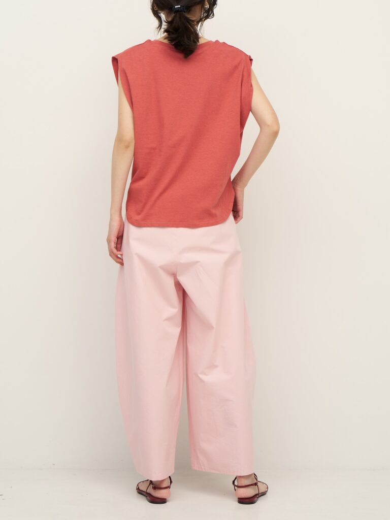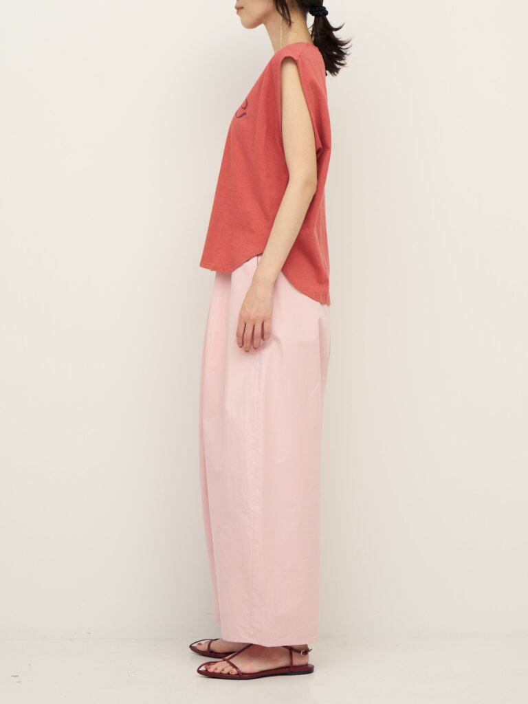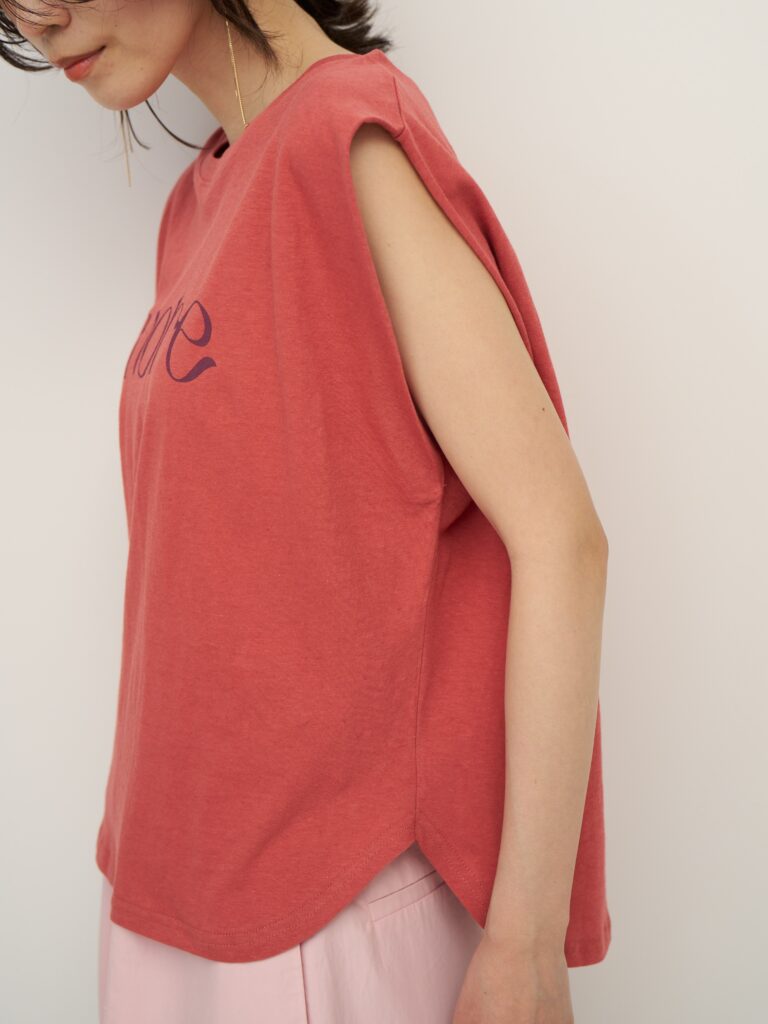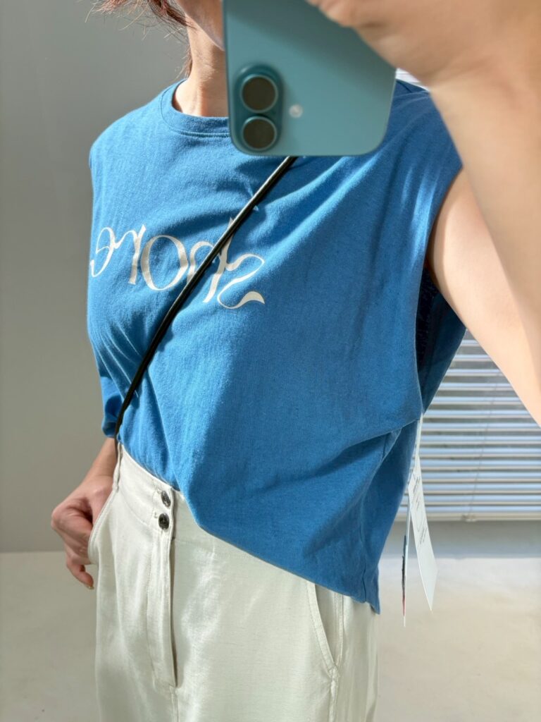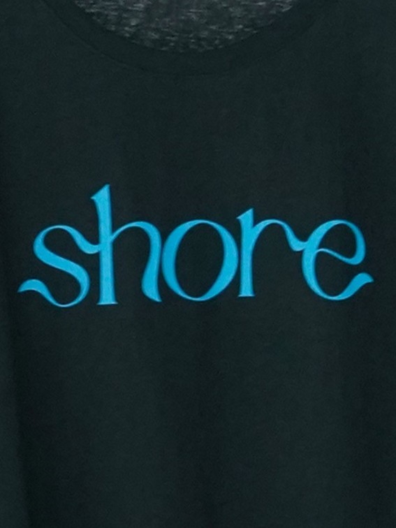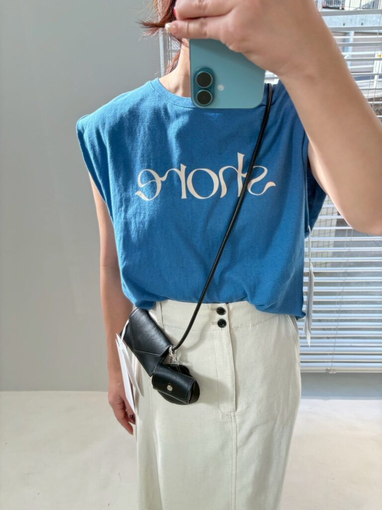 綿麻の夏らしいドライタッチな生地をセレクトしたコンパクトシルエットのフレンチスリーブT。フロントに流れるようなロゴ”SHORE”(海辺)をプリントし女性らしいプリントTに仕上がりました。シンプルながらもスタイリングのアクセントになる、1枚で着映えするデザイン。