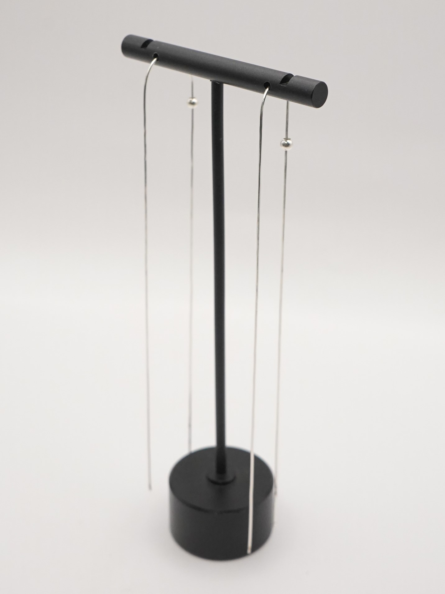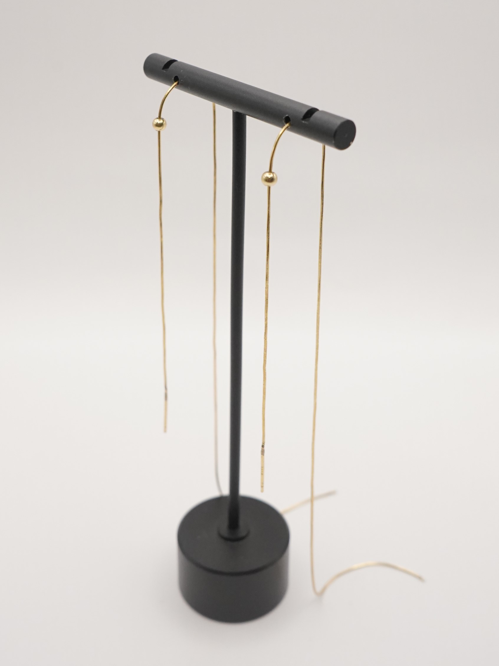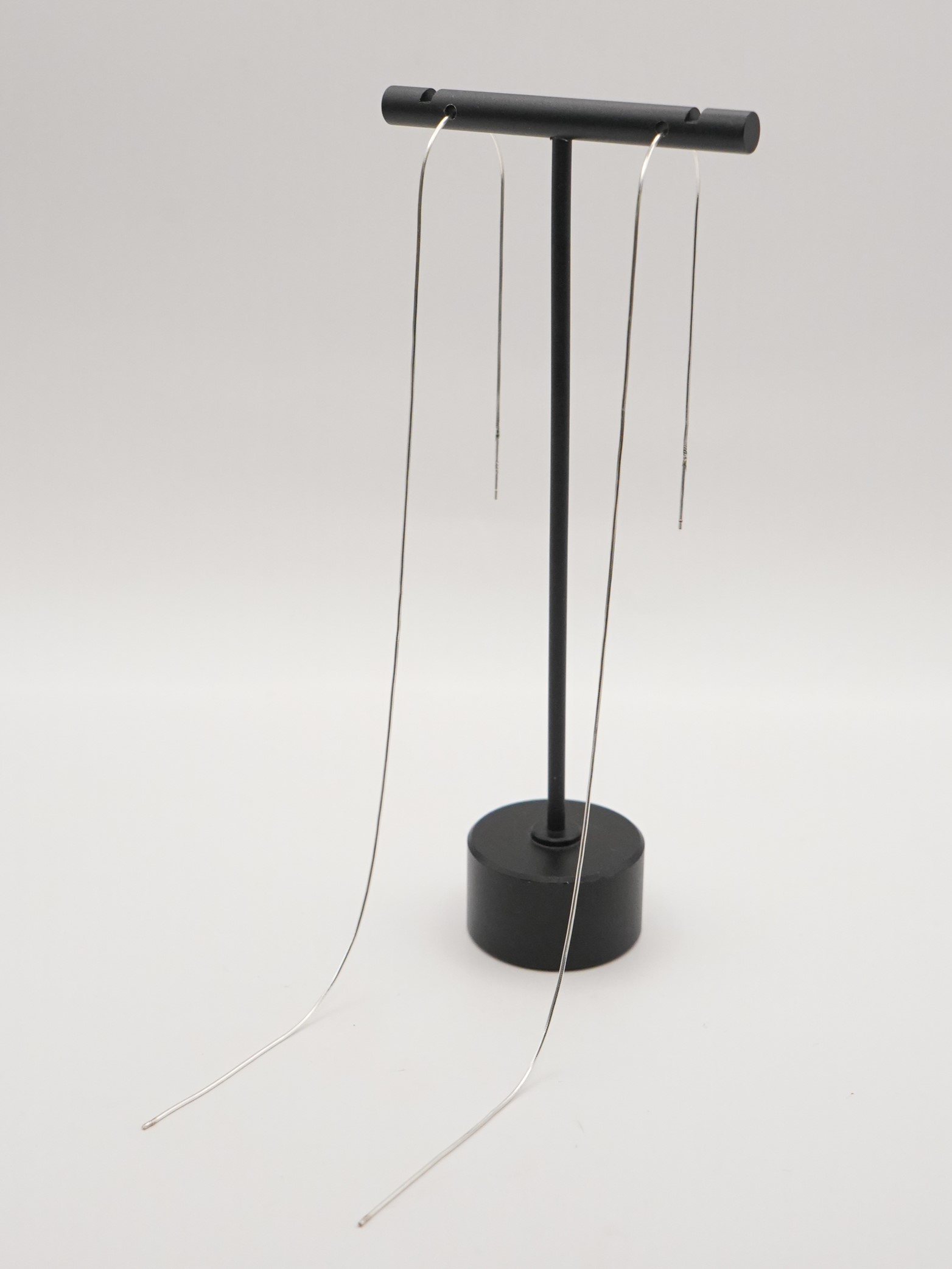 Silver925の角スネークチェーンを使用したロングアメリカンピアス。アメリカンピアスは先端のポストから耳穴に通していただき、お好きな位置でチェーンをUターンさせる仕様になります。小さな丸玉キャッチも付いていますので、前を長くして垂らして後ろをキャッチで留めておくことも可能です。