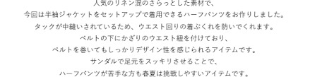 ☆ショートスリーブジャケット【納期3月中旬頃】とセットアップが可能です!