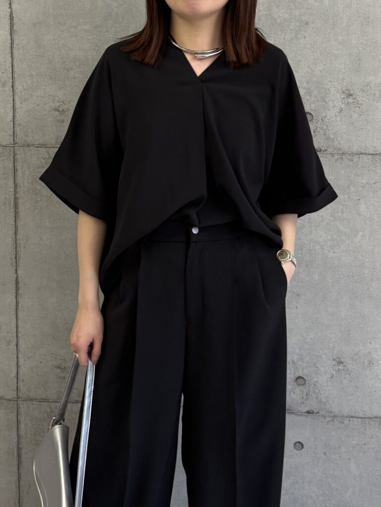シルバー飾り付きスキッパーブラウス【納期4月初旬頃】