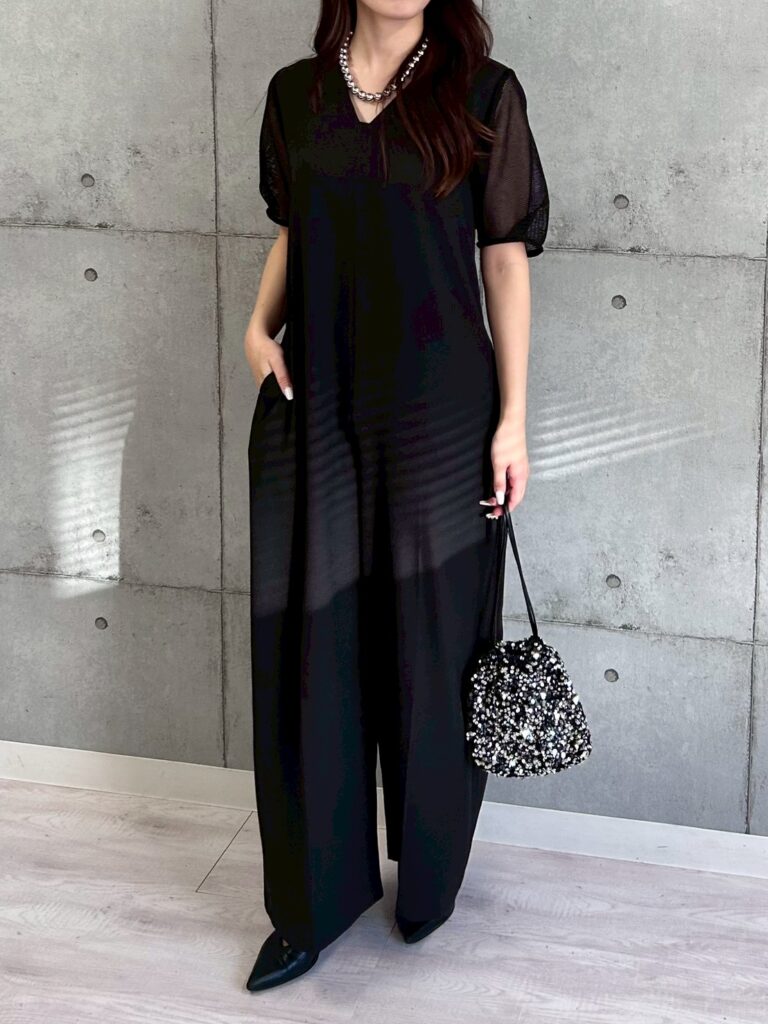 袖メッシュオールインワン【納期4月初旬頃】