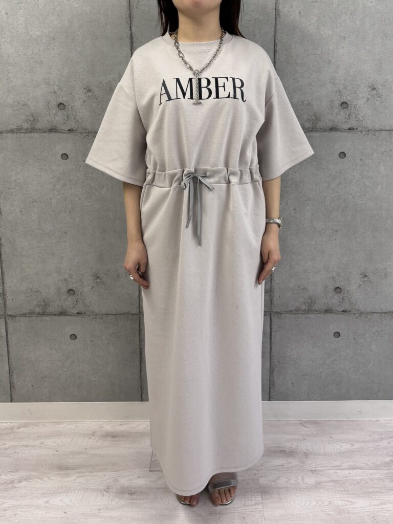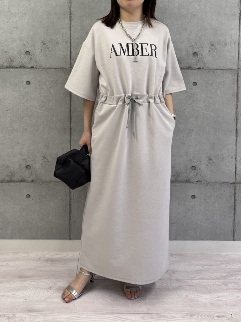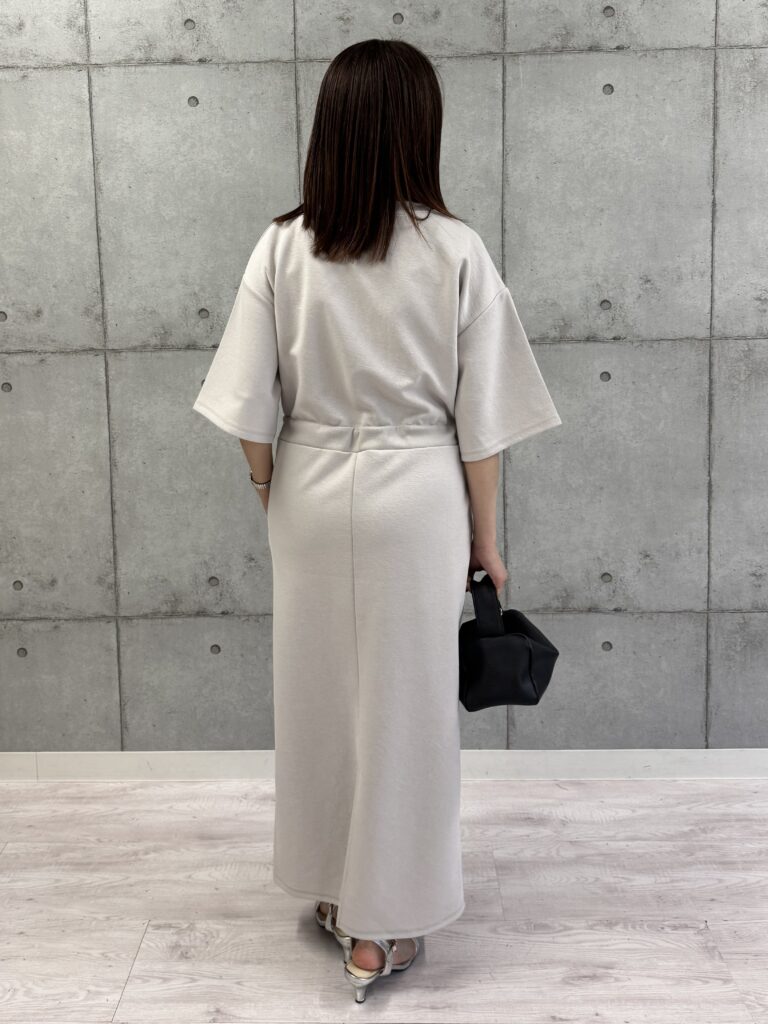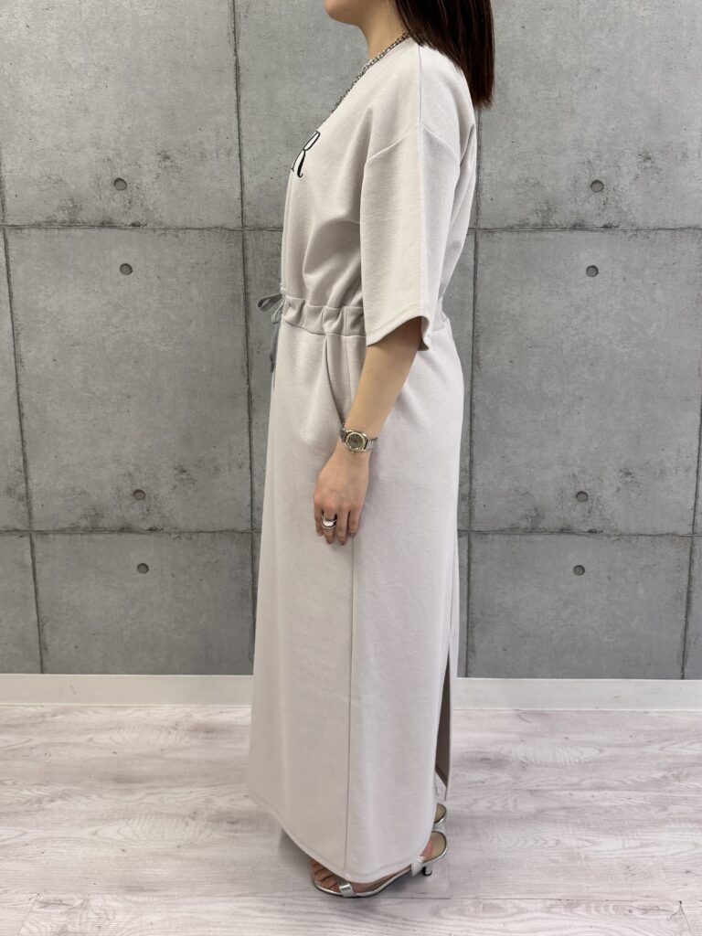 ロゴ刺繍ウエストマーク5分袖ワンピース【納期3月中旬頃】