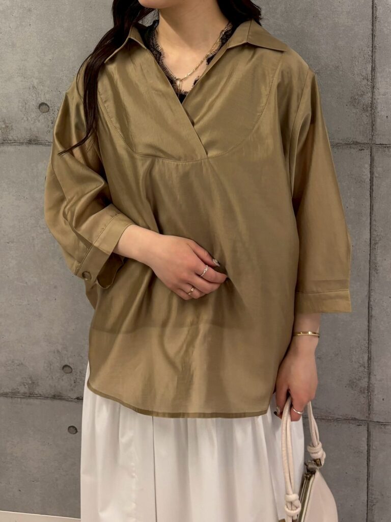 CB釦スキッパーシアーシャツ【納期4月初旬頃】