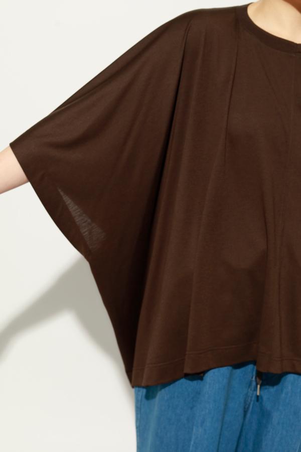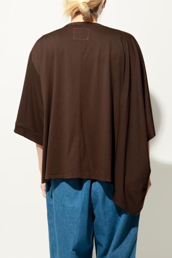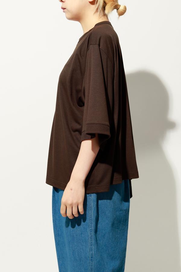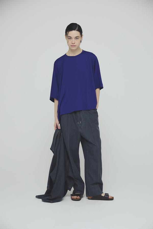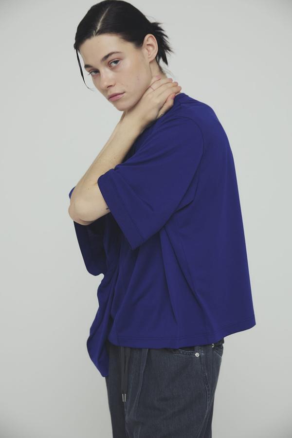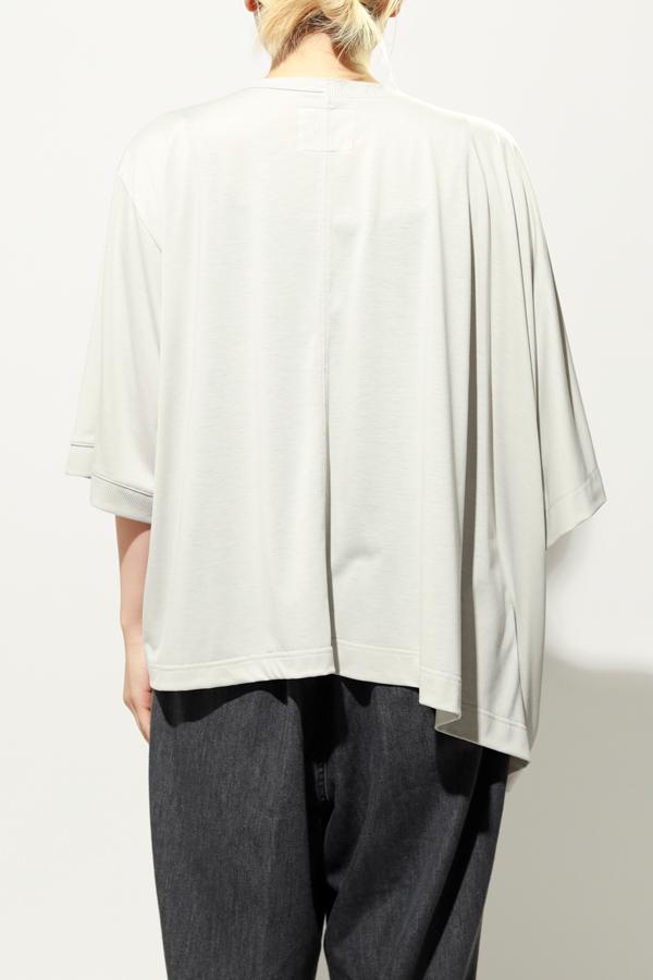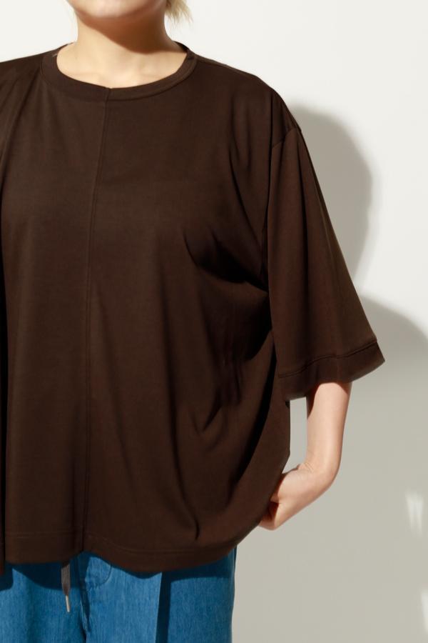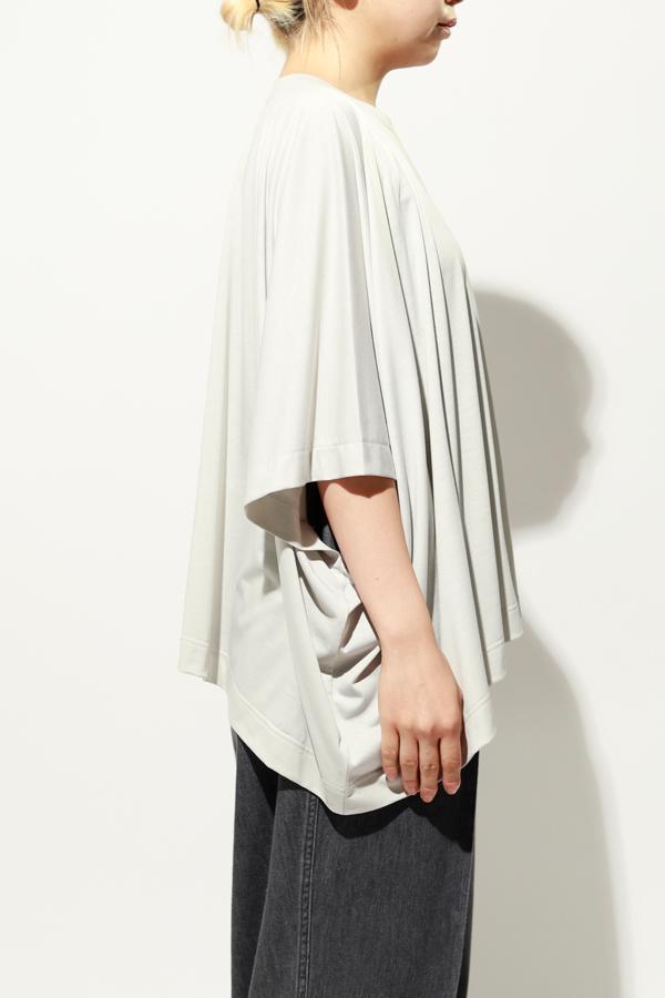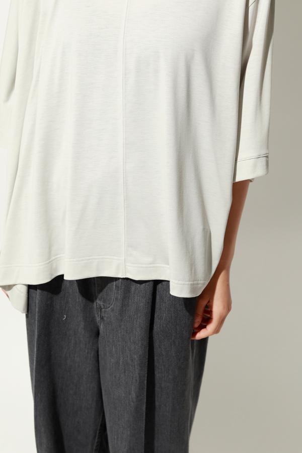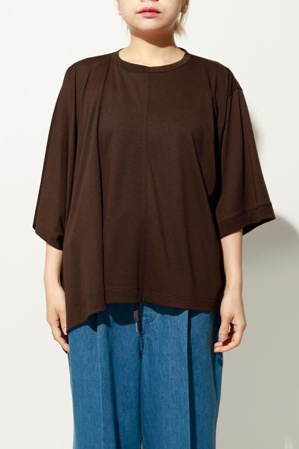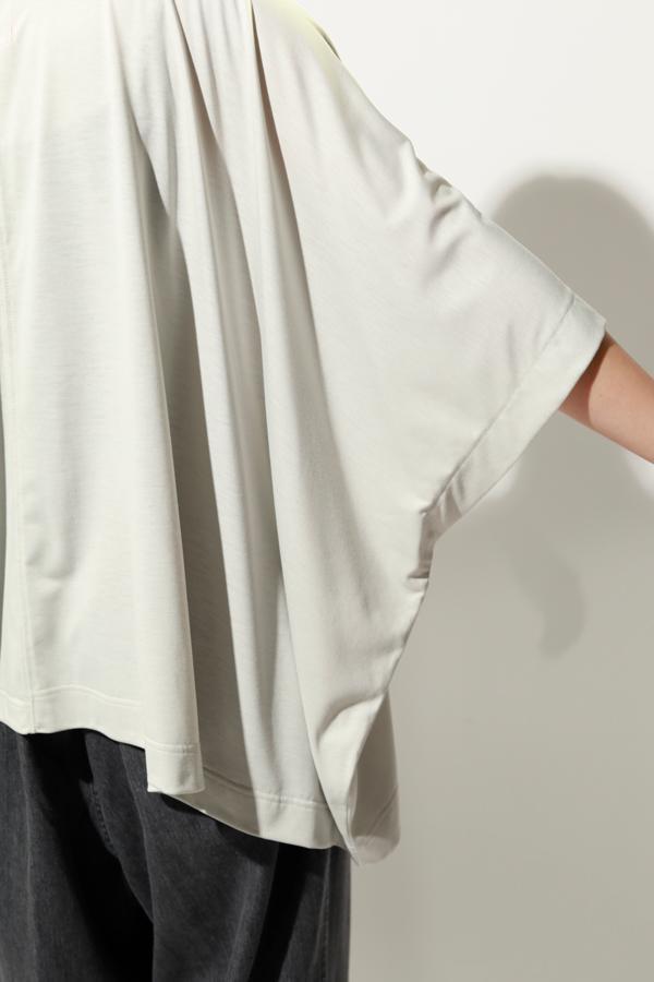 中心のハギによるデザインの切り替えが、着るだけでスタイリングのポイントになり、綺麗なドレープが女性らしいシルエットを演出。