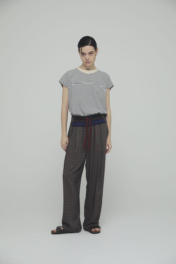 高密度に編み立てたボーダー生地を使用し、しっかりとした肉感とハリがあるため、変形シルエットをきれいにキープしてくれます。