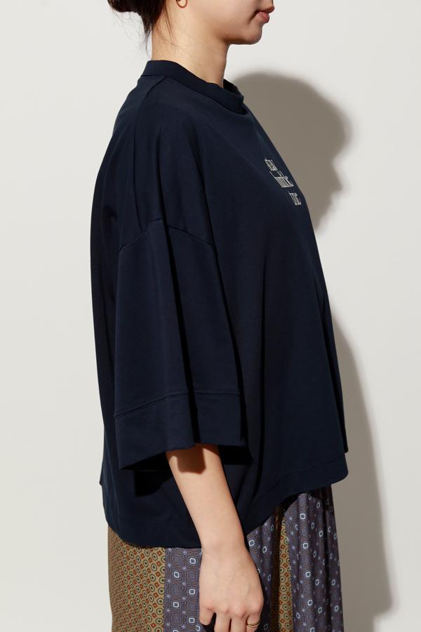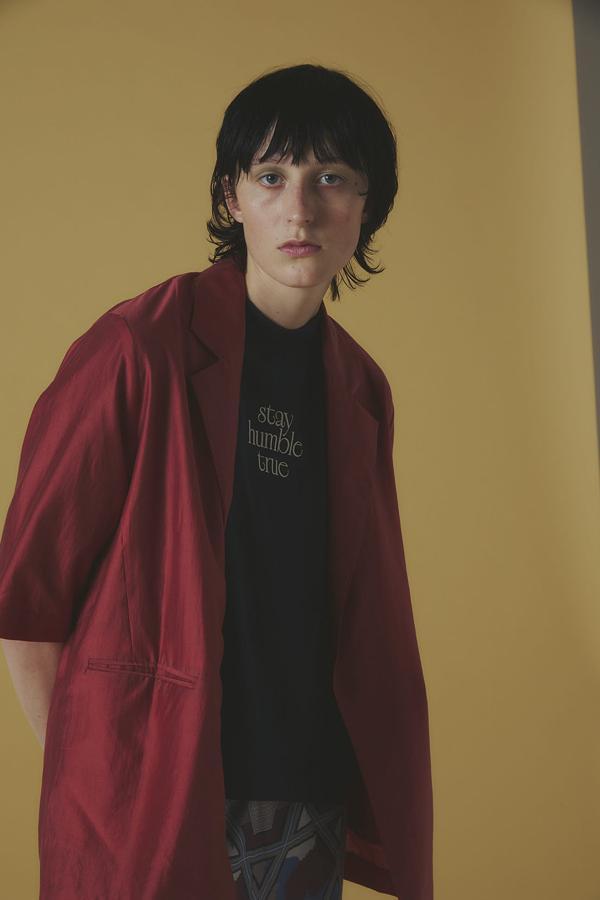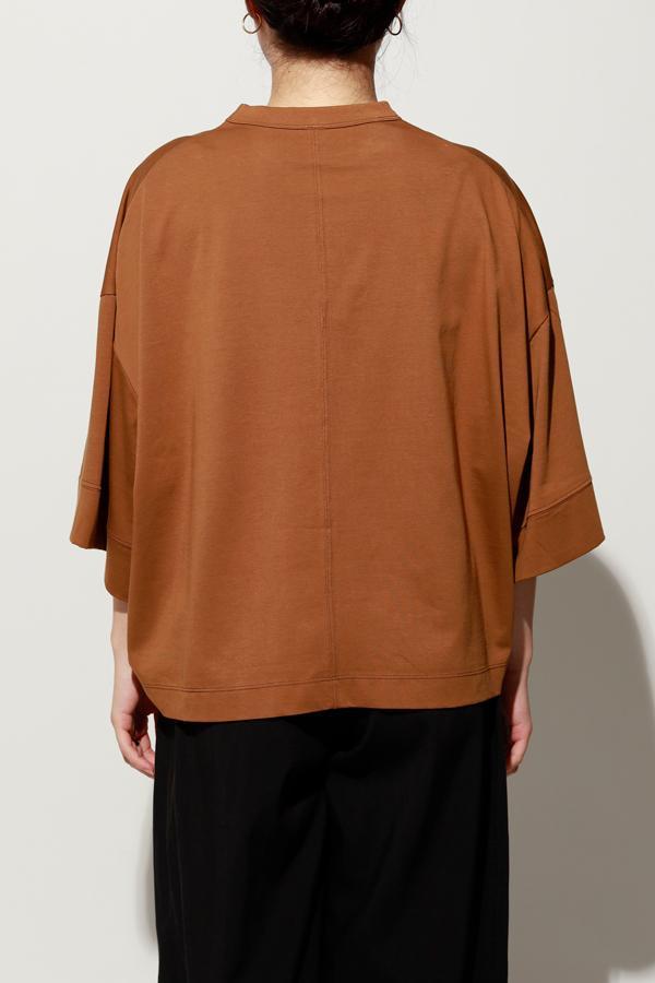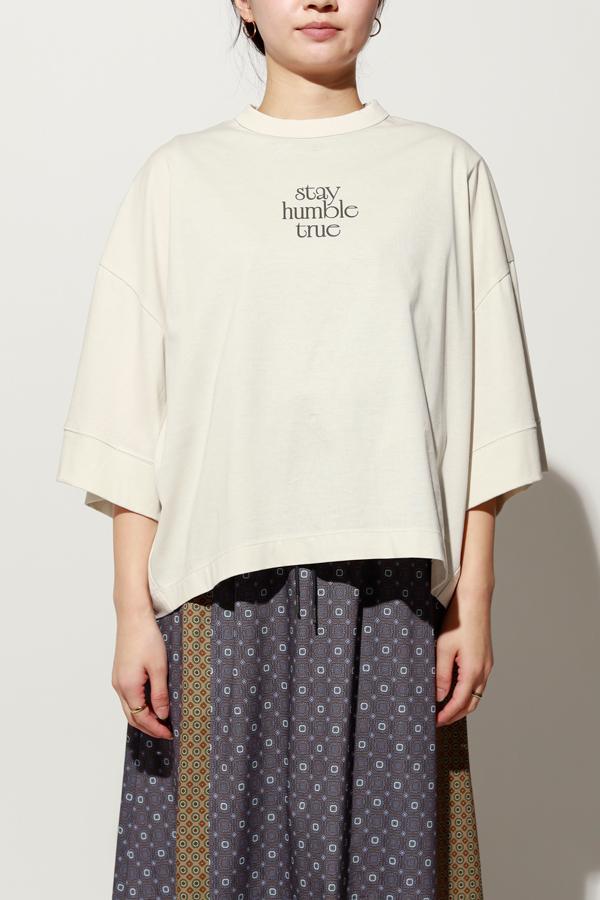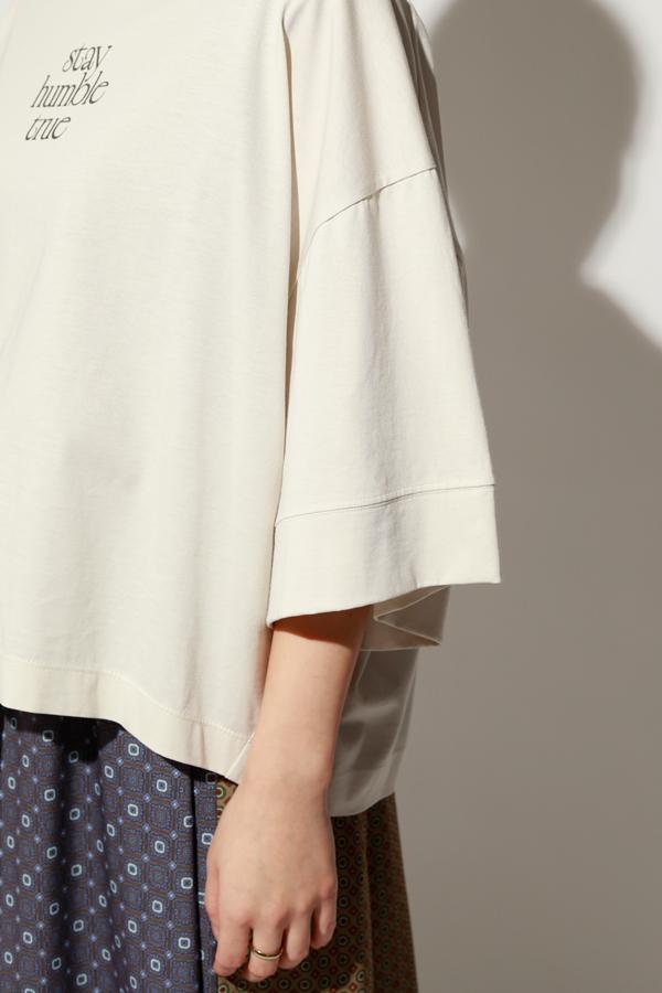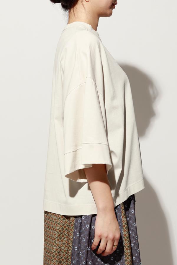 どんなボトムともバランスが取りやすい着丈に、五分袖がさり気なく二の腕をカバー。ワイドパンツやフレアスカートと合わせると、クリーンで端正なシルエットが完成します。