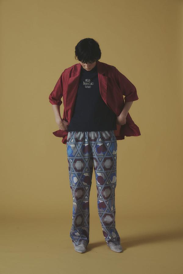 毛羽の少ない強撚糸を使用したサイロコンパクトHG天竺は、さらりとした肌触りと清涼感のある表情が魅力。目の詰まった生地が透け感を抑え、上質な佇まいを叶えます。