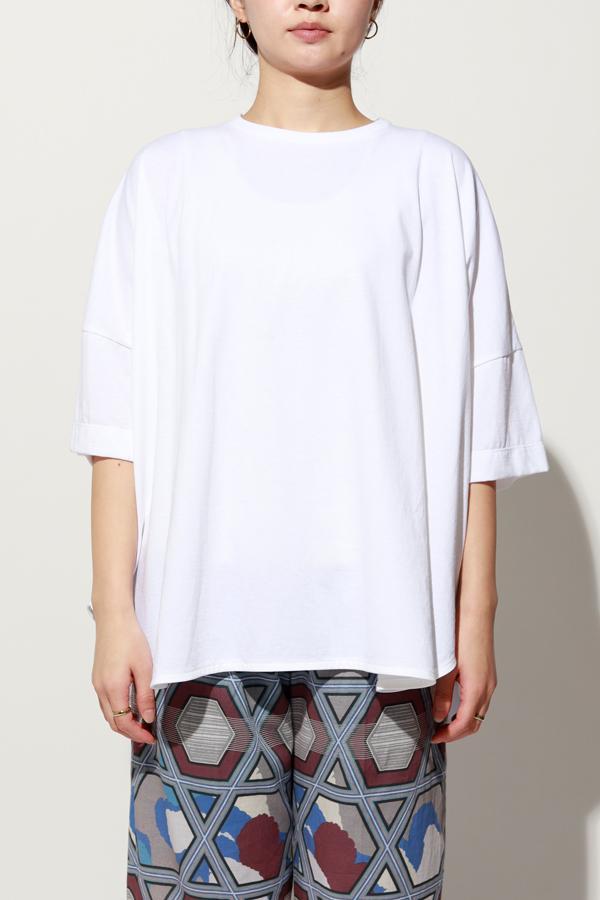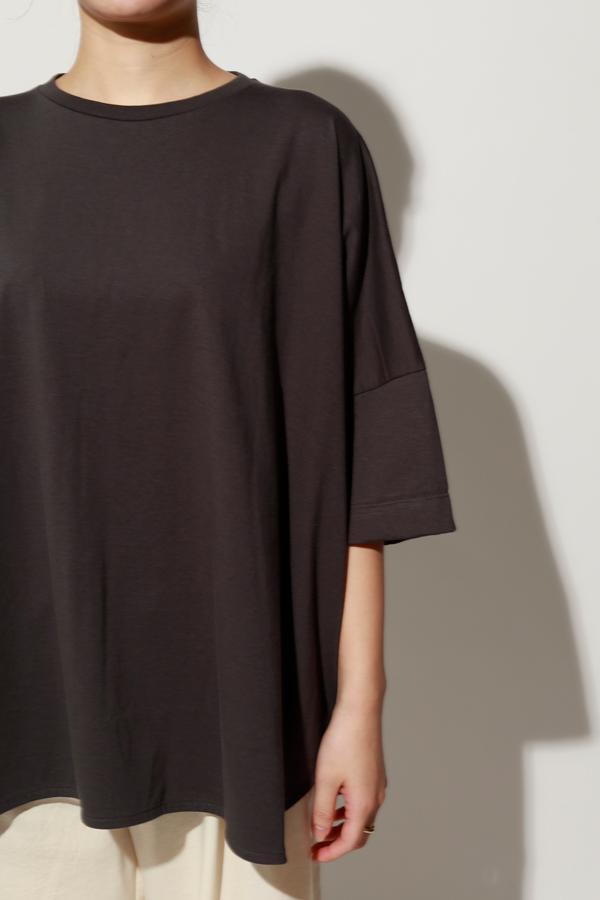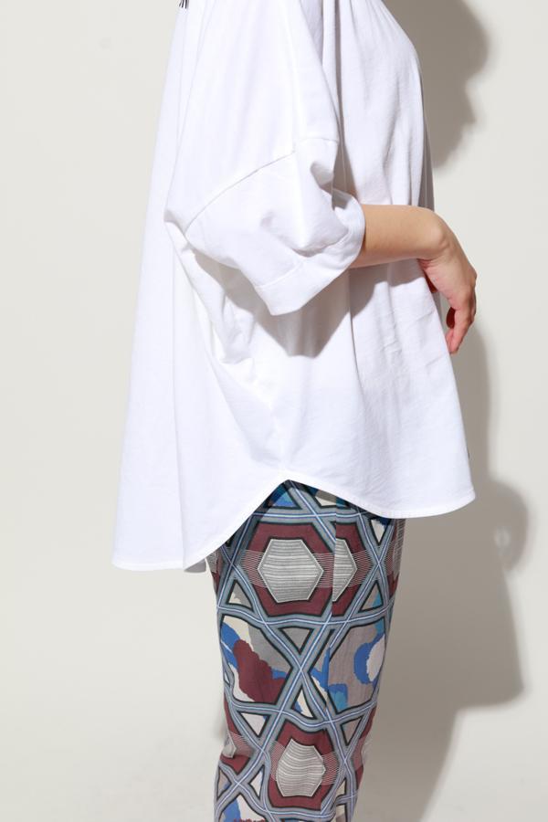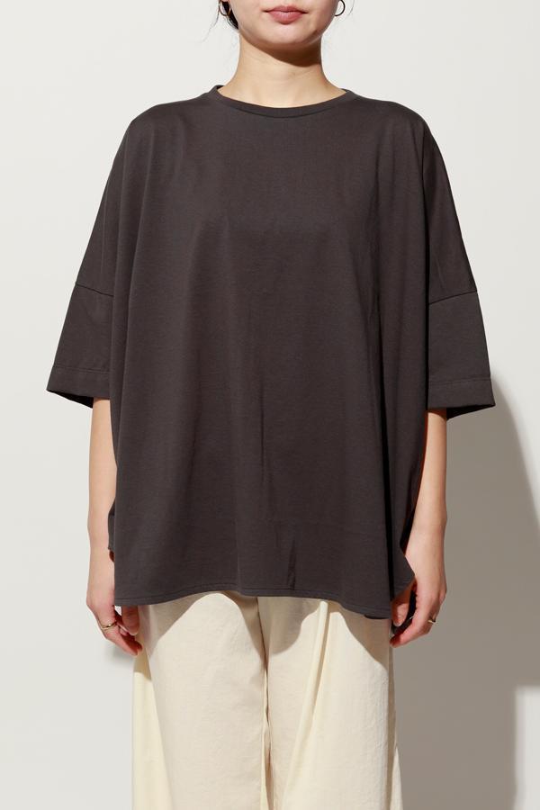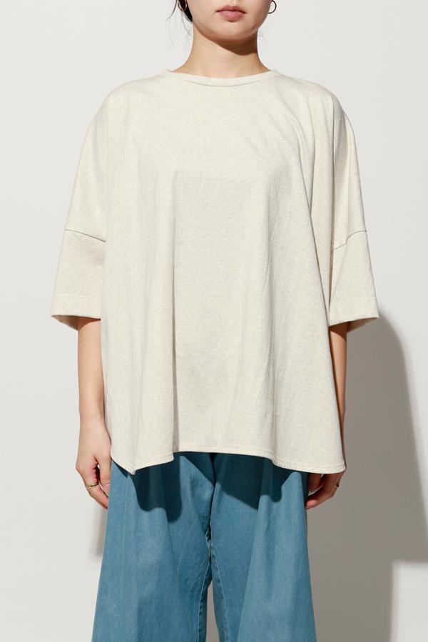 空気精紡糸ならではのドライなタッチと程よい膨らみが、軽さを感じさせながらも品よくまとまる一枚です。