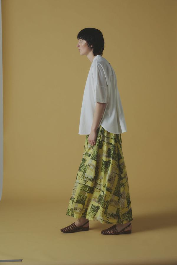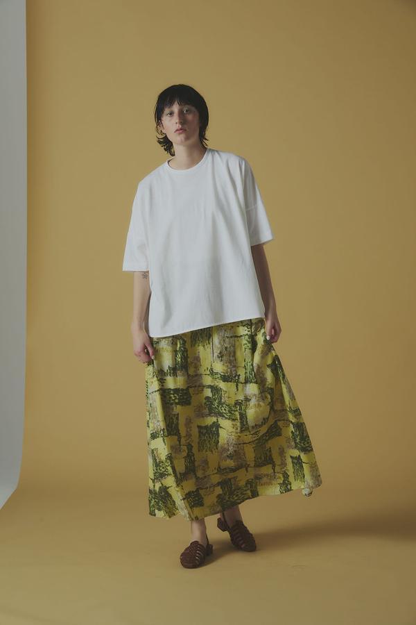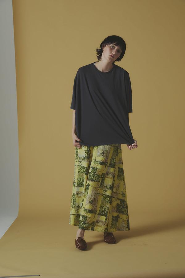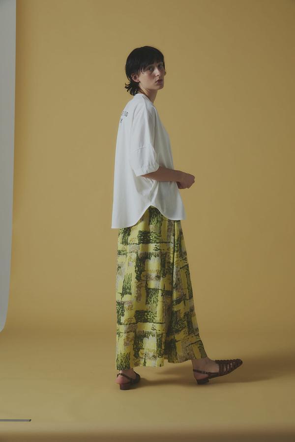 プリントパンツやスカートとも好相性で、軽やかなスニーカーやストラップサンダルを合わせると、抜け感のある都会的な大人スタイルが完成します。