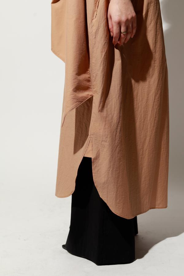 軽やかで肌離れの良い素材感と、体型を選ばず美しいフォルムを叶える一枚。