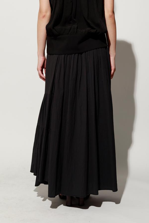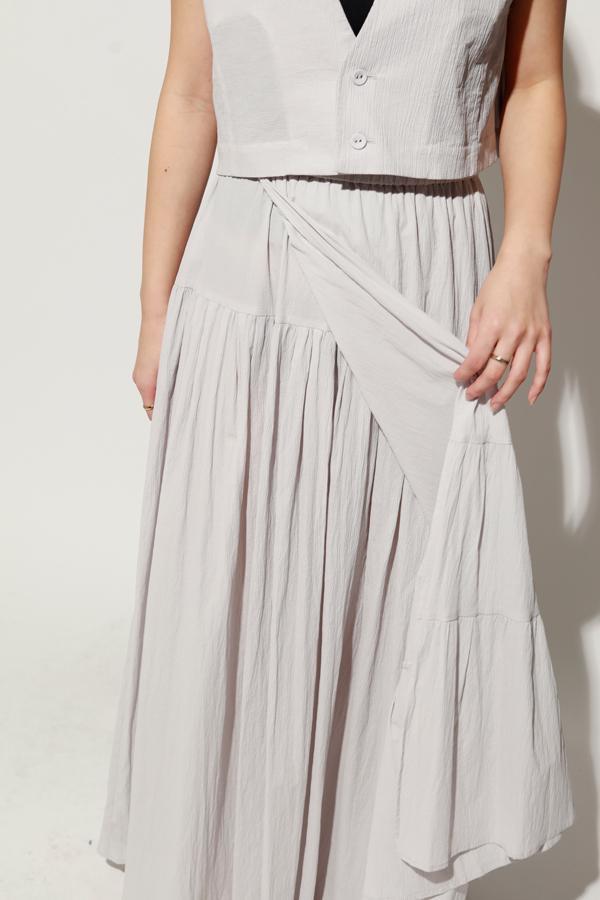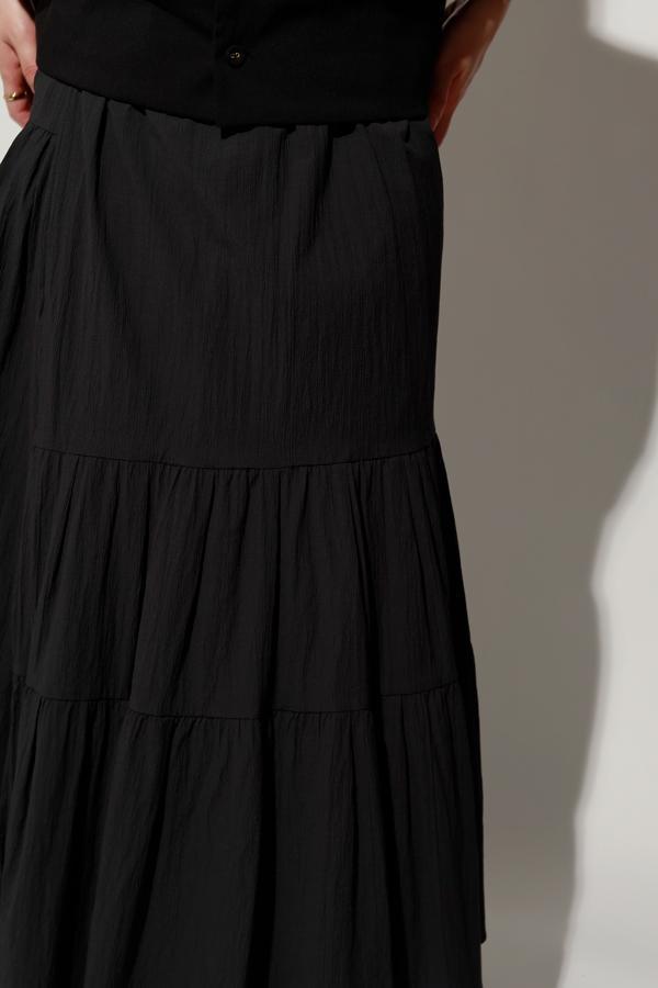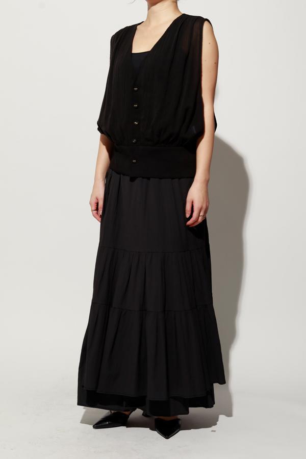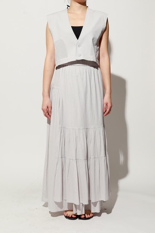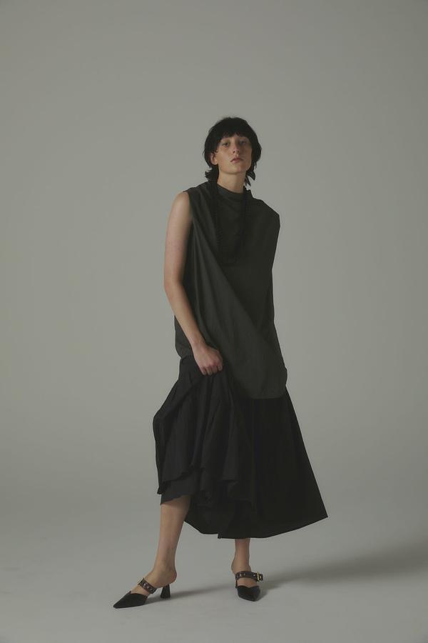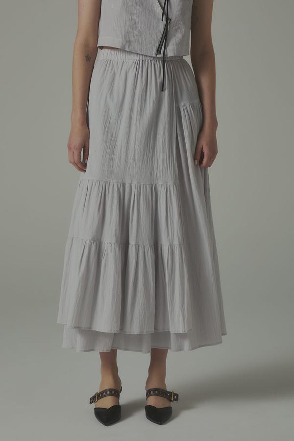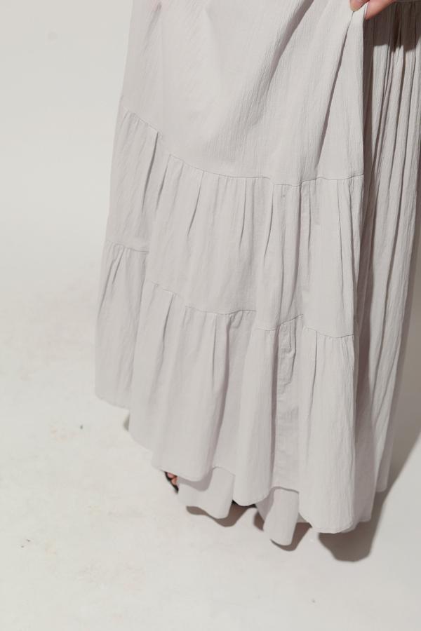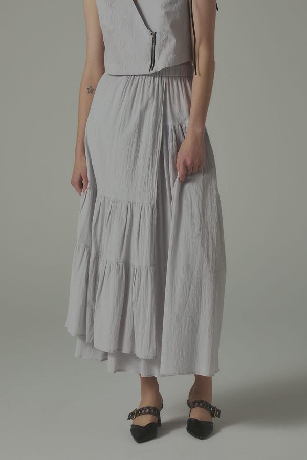 表地を二枚重ねることで動きに奥行きが生まれ、歩くたびに軽やかな立体感を描きます。ウエストはゴム仕様でリラックスでき、体型を選ばず自然にシルエットを整えてくれる万能さも魅力。