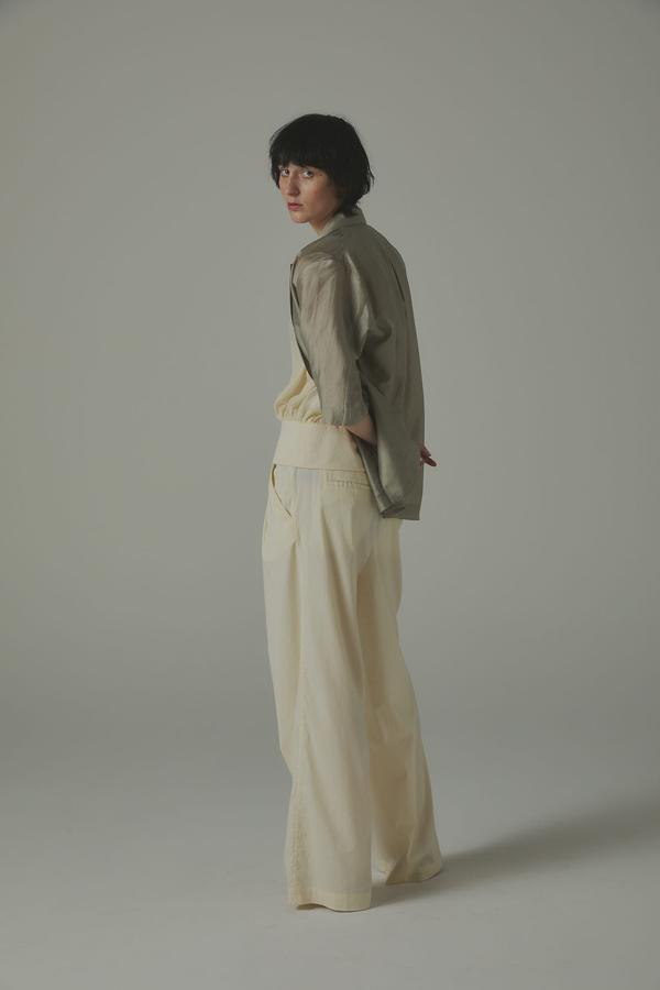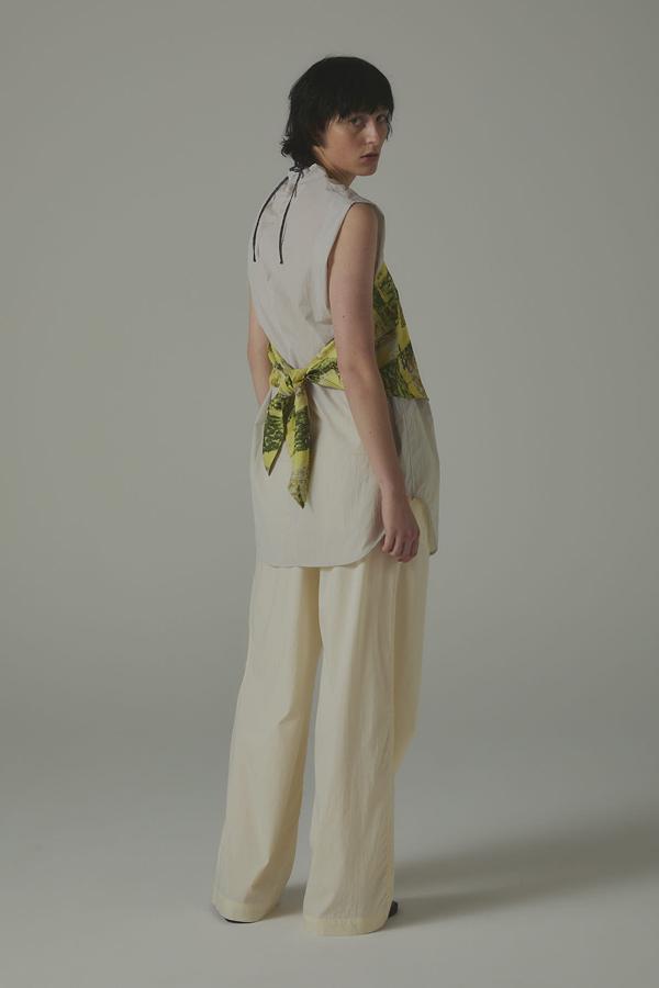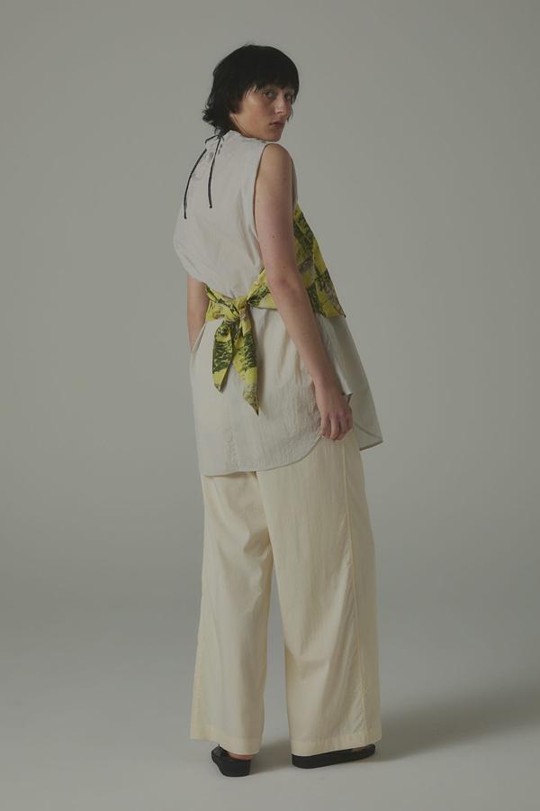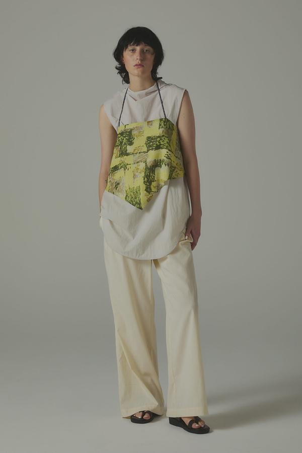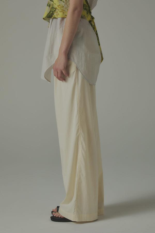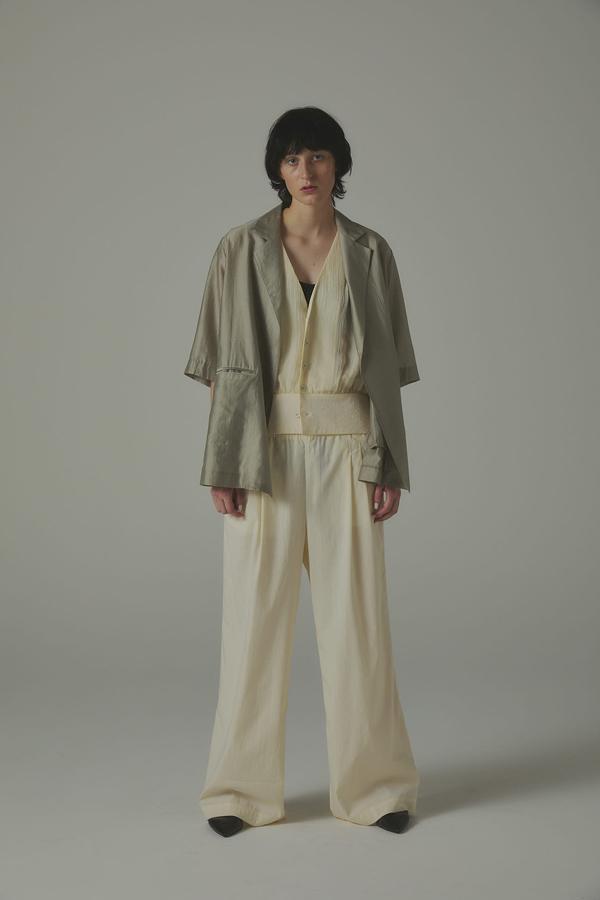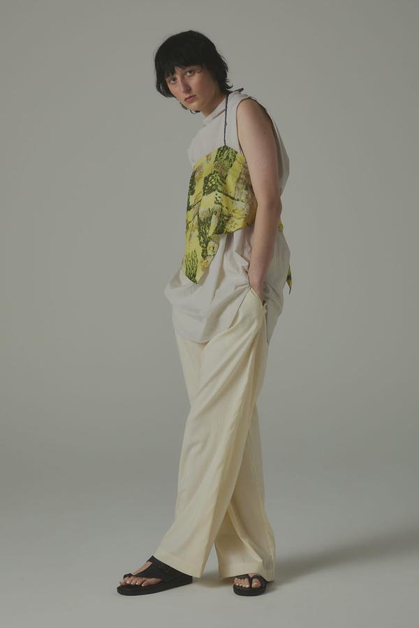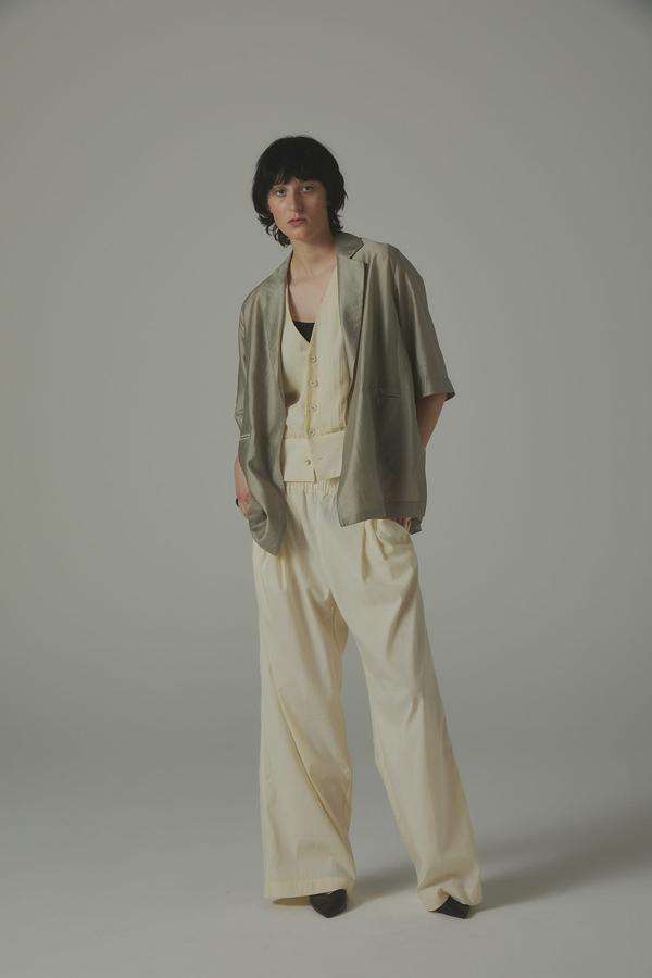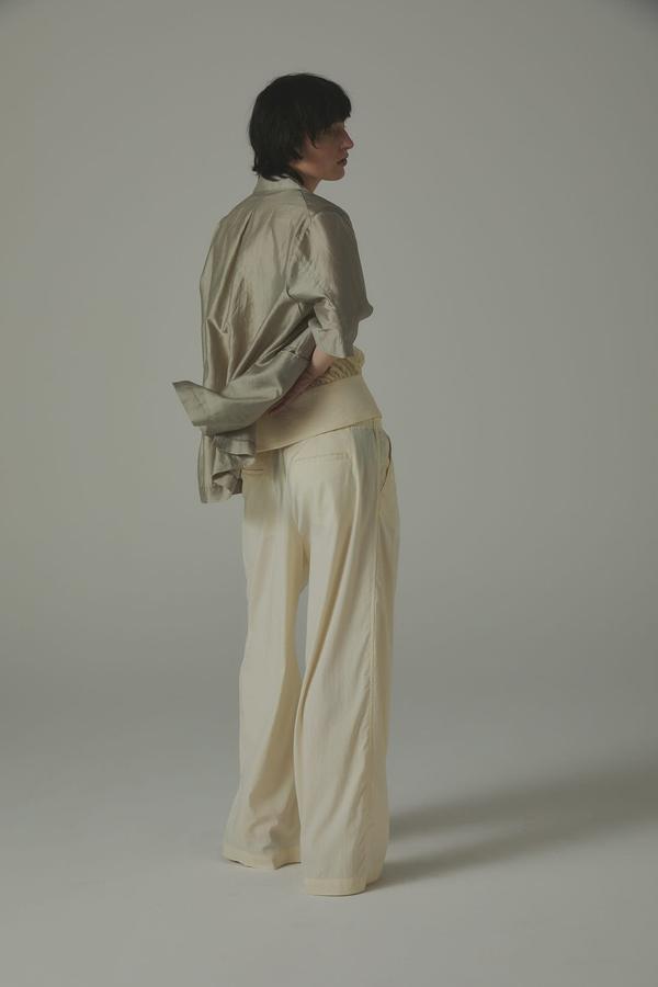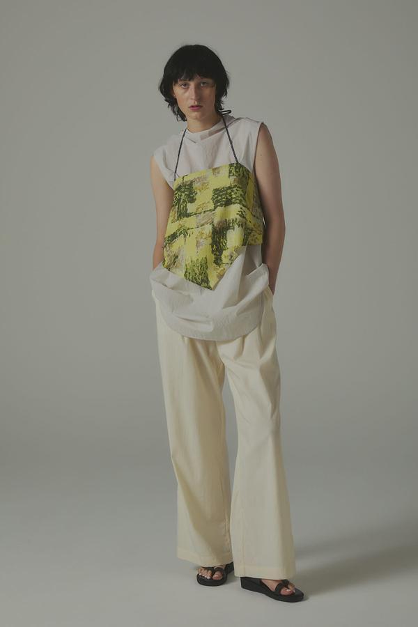 パンツ単体なら、シアーシャツやタンクで抜け感をプラスし、ミニマルなスタイルに季節の軽さをひとさじ。