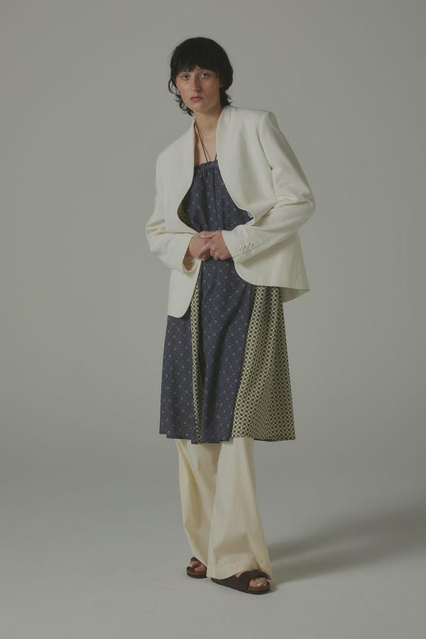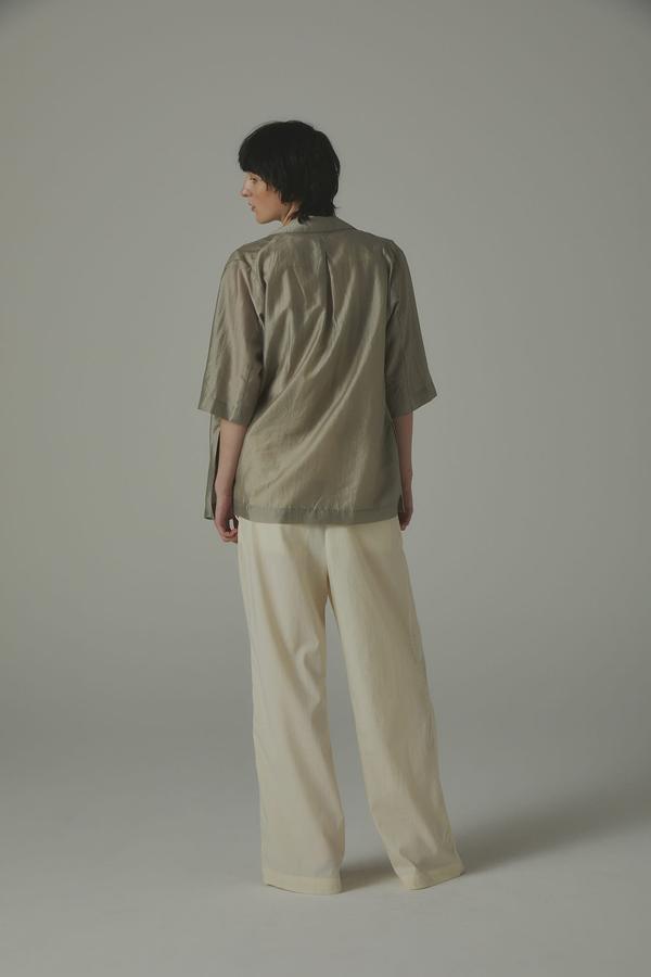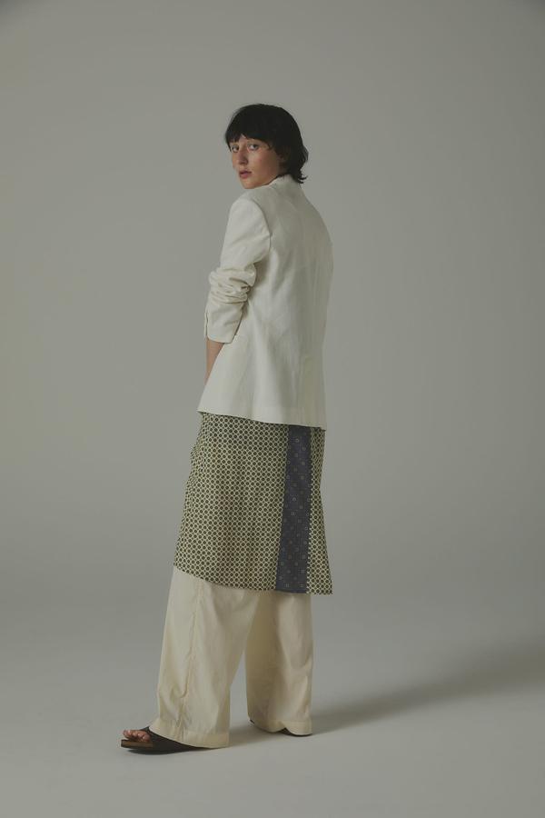 ナイロン・レーヨン・綿をブレンドした素材は、生地洗いによる自然な表面感と柔らかな落ち感が特徴。
