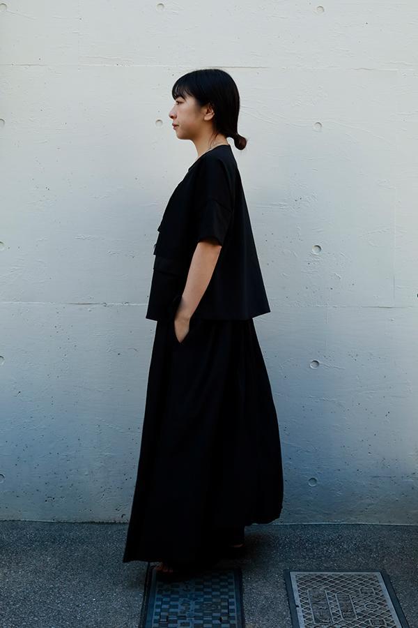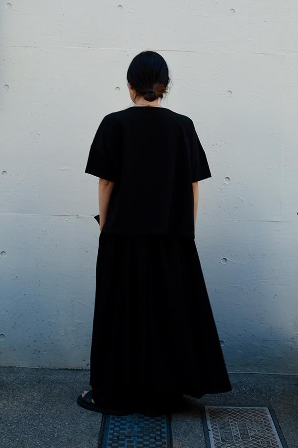 蹴回し(裾回り寸)をたっぷりとった贅沢なフレアシルエットで、体のラインを拾わずストレスフリーな着心地です。