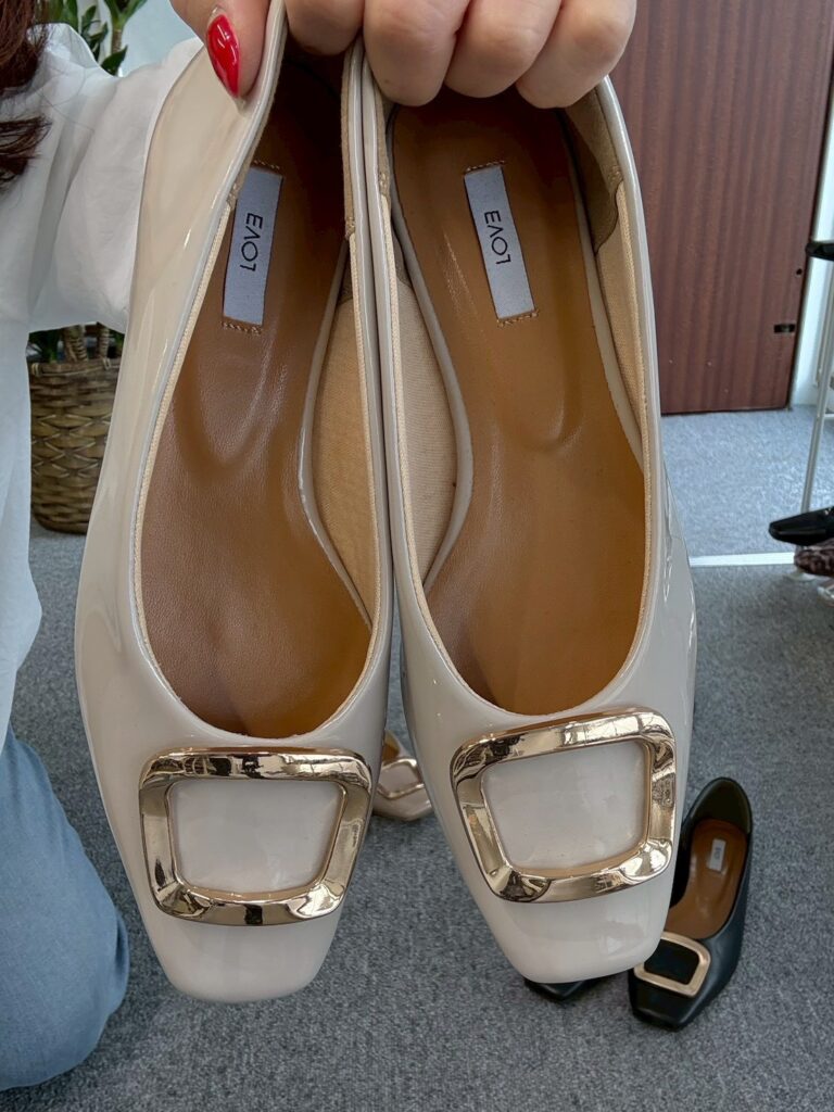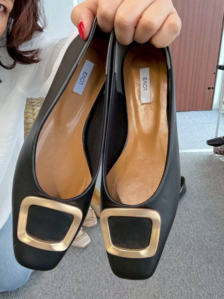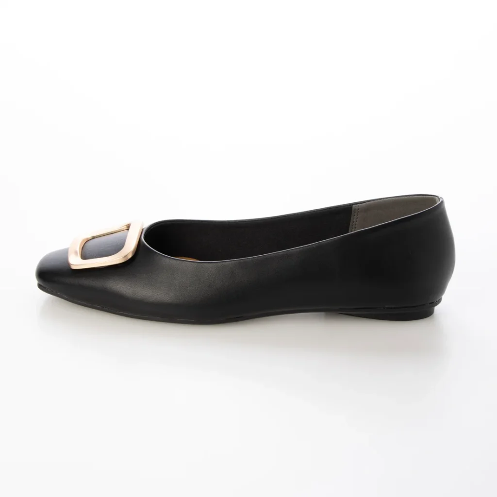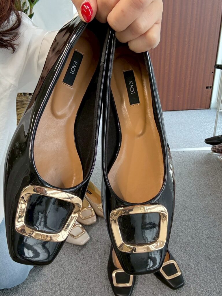 ★メタルモチーフがポイントのパンプス。フラットソールで、歩きやすさ◎エナメル調の素材で高級感をプラスしてくれます。落ち着いたカラー展開で、これからの季節にぴったり。通勤にもおすすめなアイテムです。