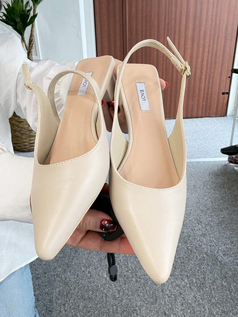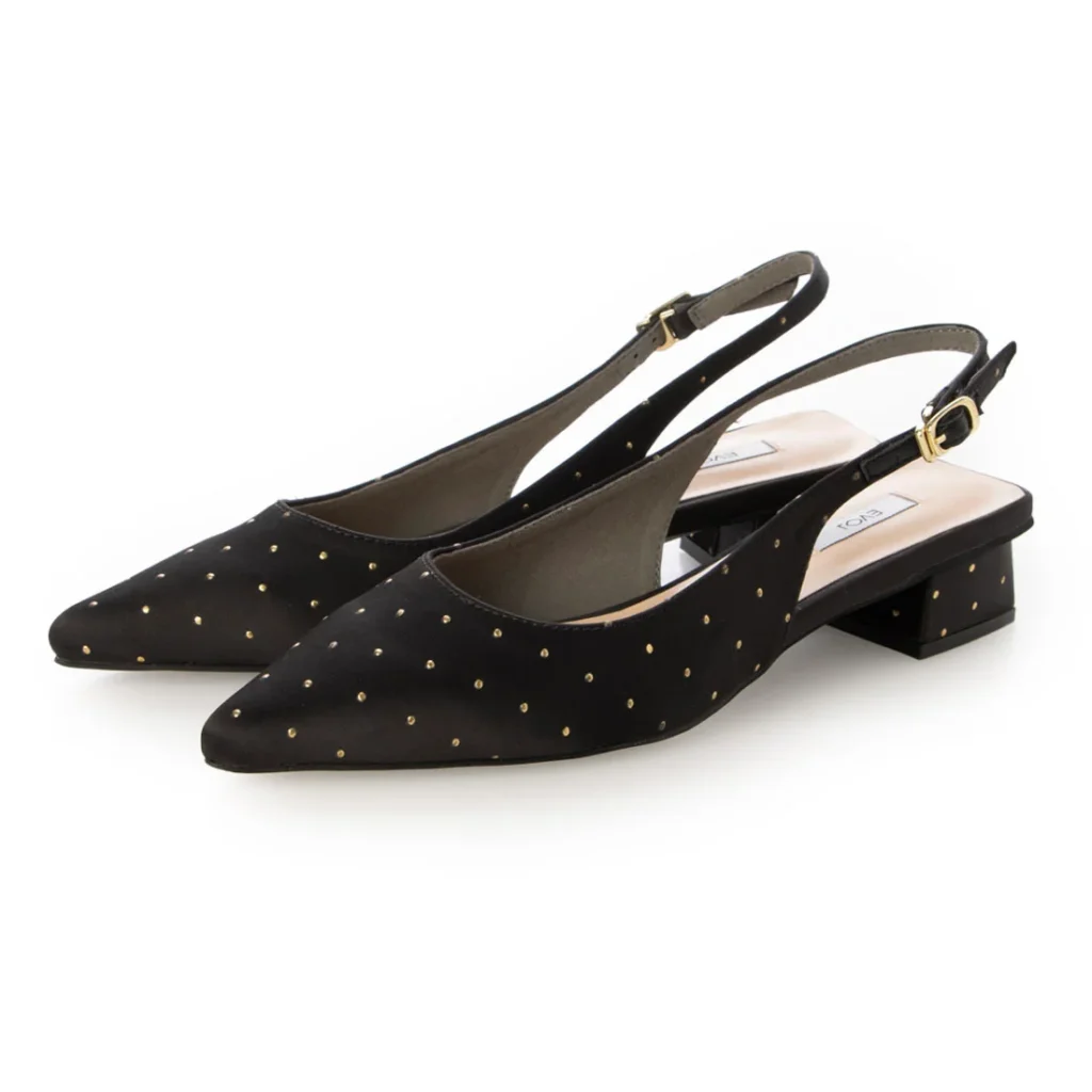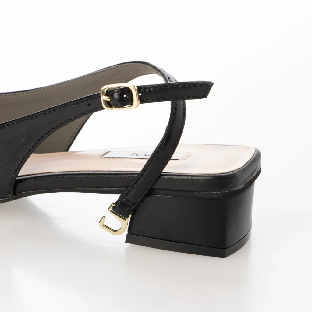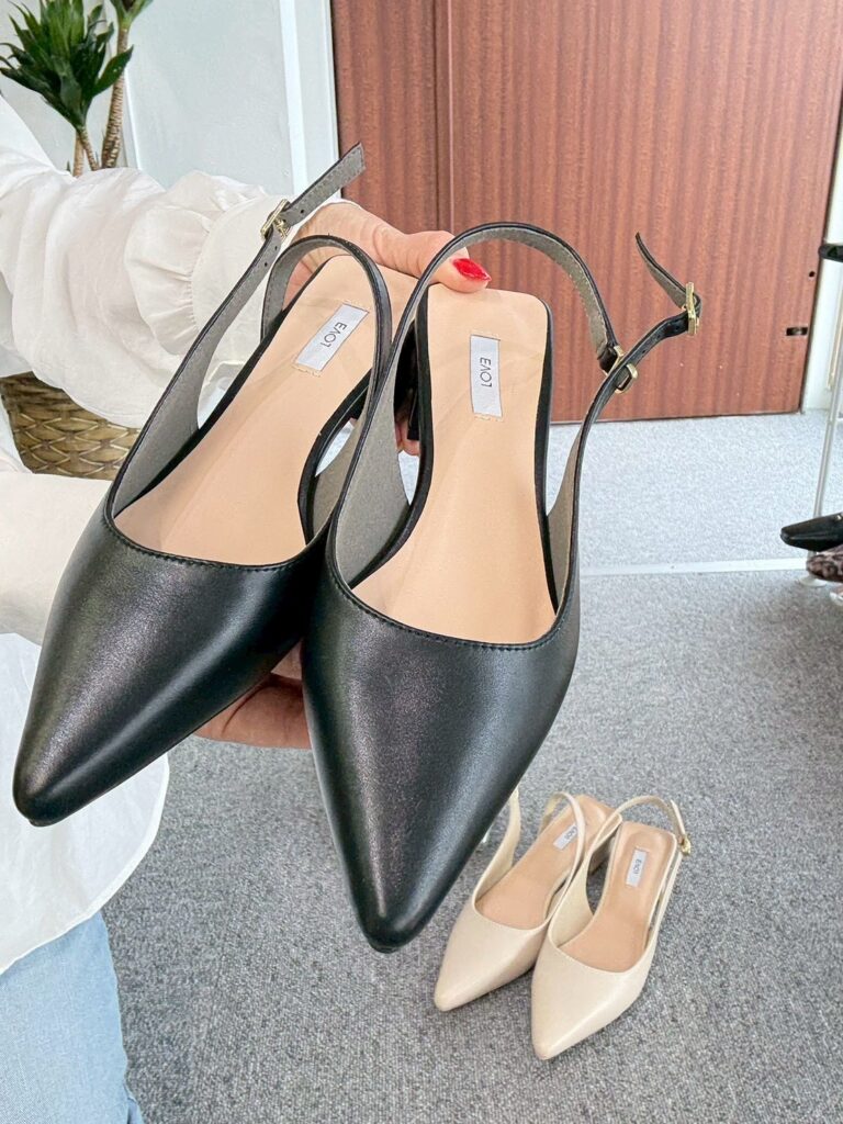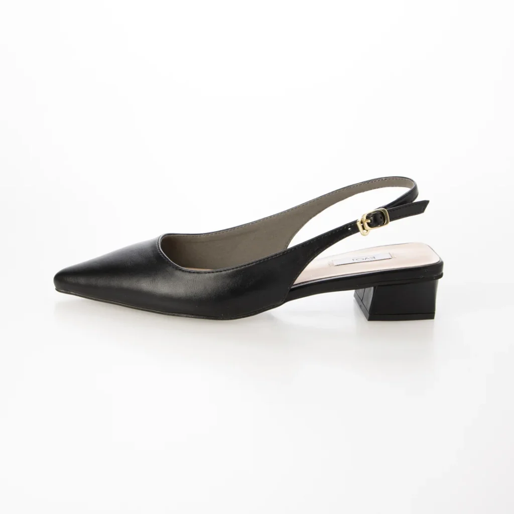 ★毎年大人気のアイテムがより履きやすくアップデートして登場!フック式のバックベルトを採用し、簡単に着脱出来るよう仕上げました。程よいハリ感がありつつ足馴染みの良い素材は、シャープなポインテッドトゥでも足当たり良く履き心地◎約3cmの高過ぎないヒールは安定感があり、クッション性のある中敷き入りなのも嬉しいポイントです。シンプルなデザインにスクエア型のヒールを合わせ、綺麗めになり過ぎずカジュアルなスタイリングにも相性抜群な1足!
