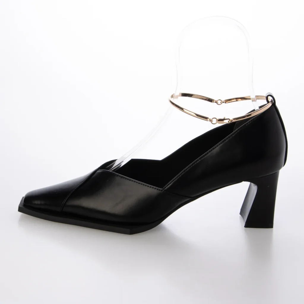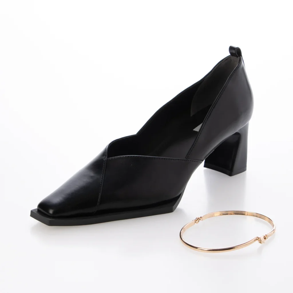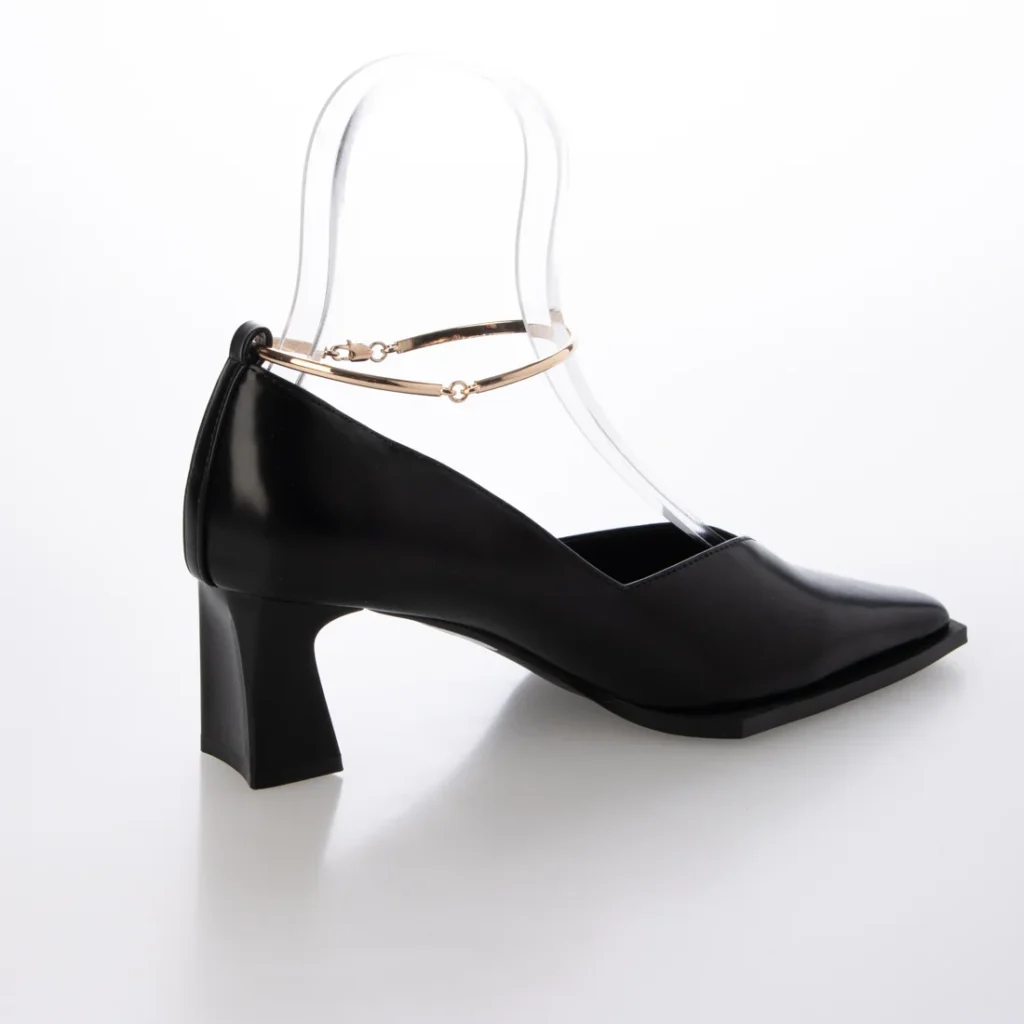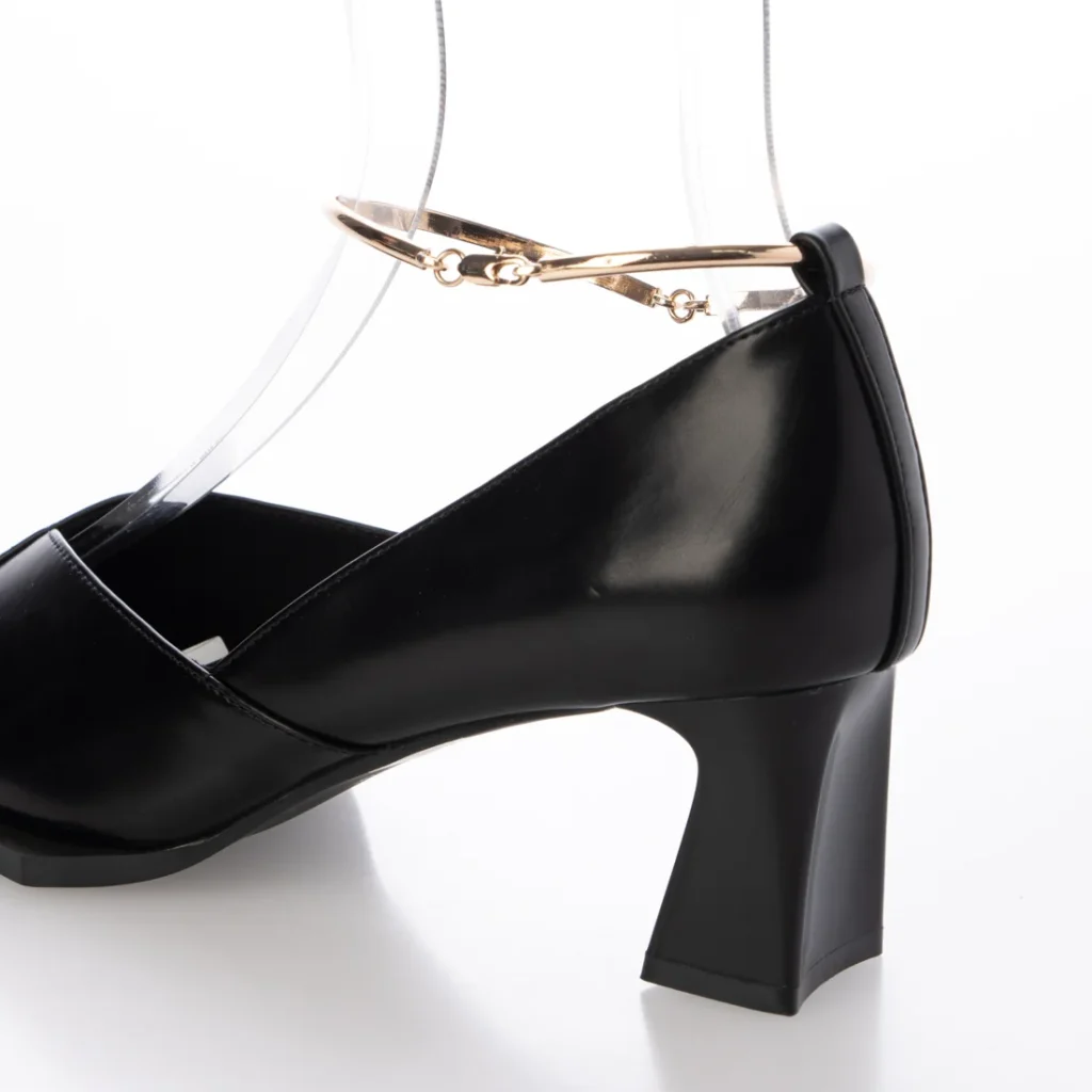 ★華奢なアンクレットと角張ったコバが上品かつモードに魅せ、履くだけでスタイリングを格上げしてくれる主役級パンプス!深めのVカットラインと約6cmヒールが美脚効果も叶えてくれます。アンクレットは取り外し可能で、シーンやコーディネートに合わせて着用出来る2WAYデザイン!クッション性のある中敷きが長時間のお出かけでも快適にサポートしてくれます。ON・OFF問わず使えるアイテムは、ワードローブに1足あると大活躍間違いなし!