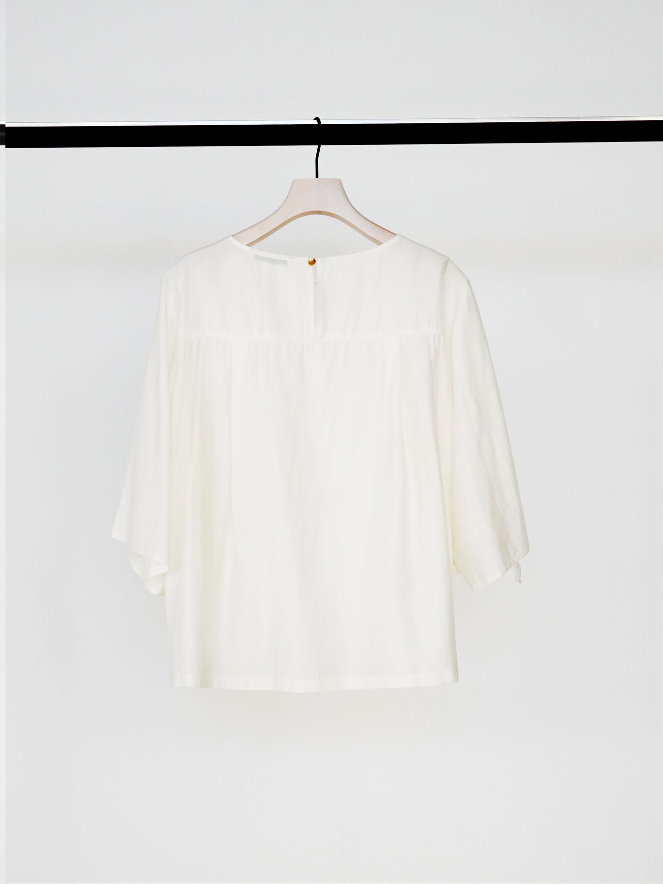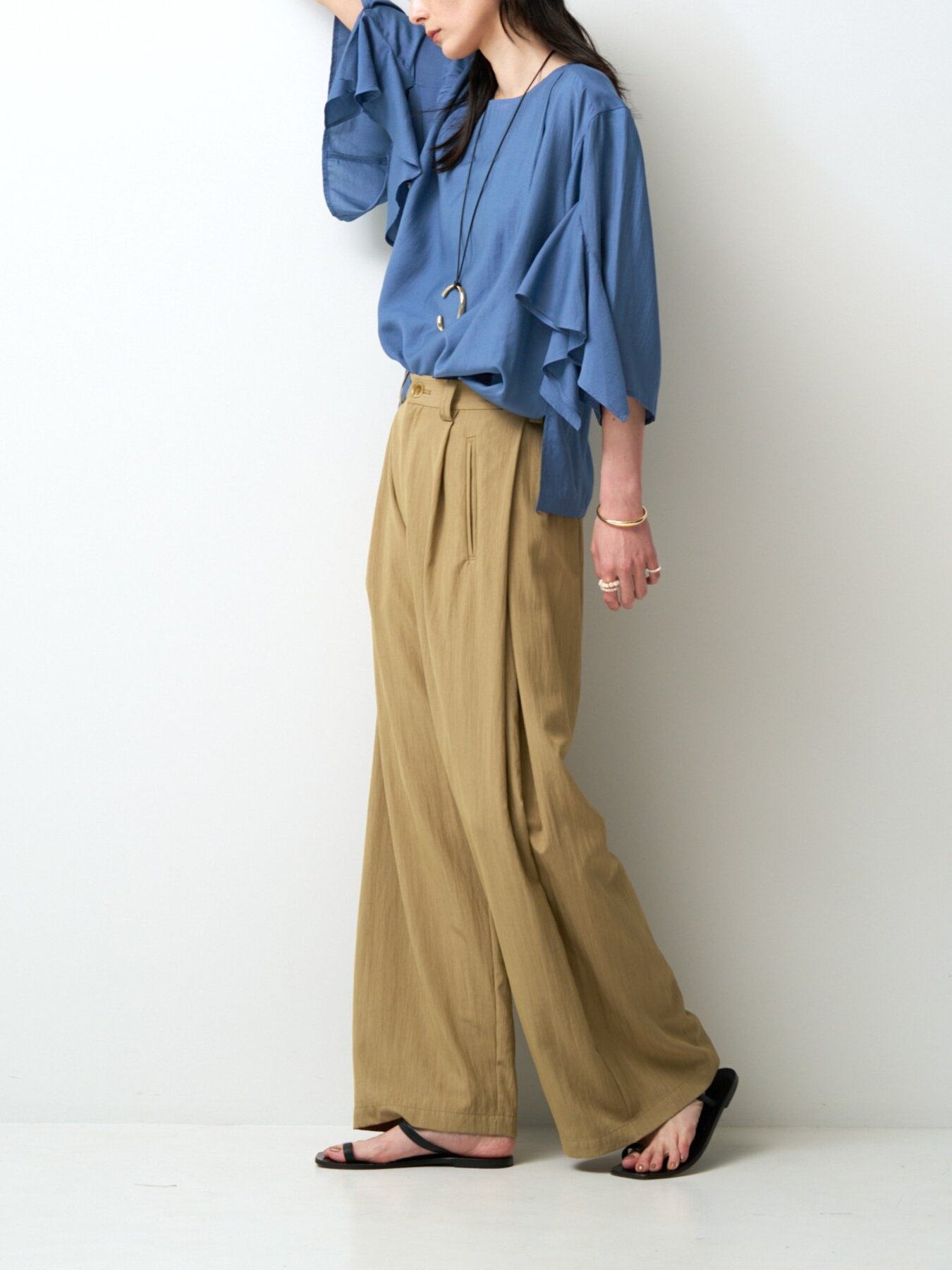 オンにもオフにも使える、着回し力の高いブラウスです。