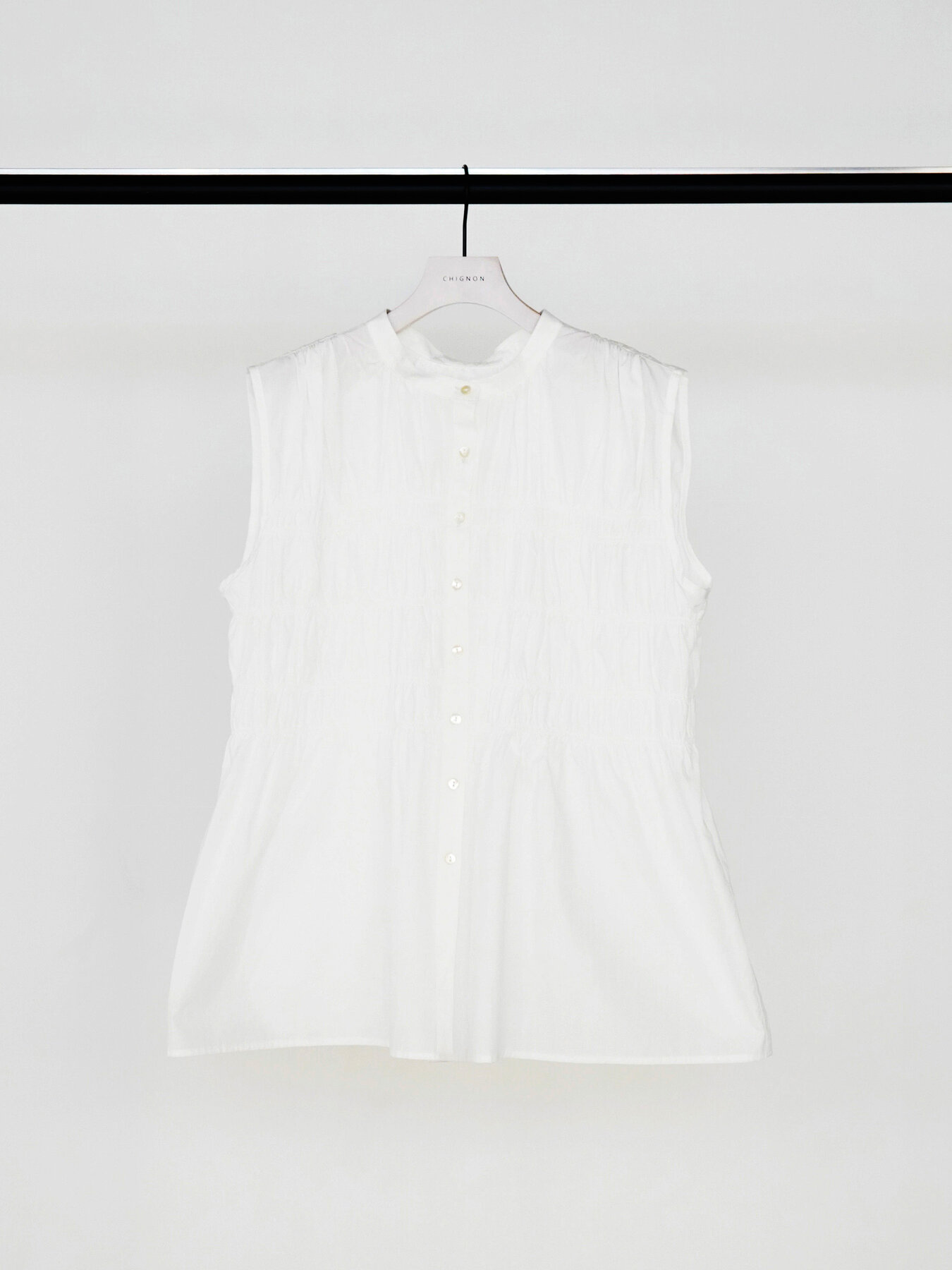 やわらかなコットン素材を使用した、シャーリングブラウス。