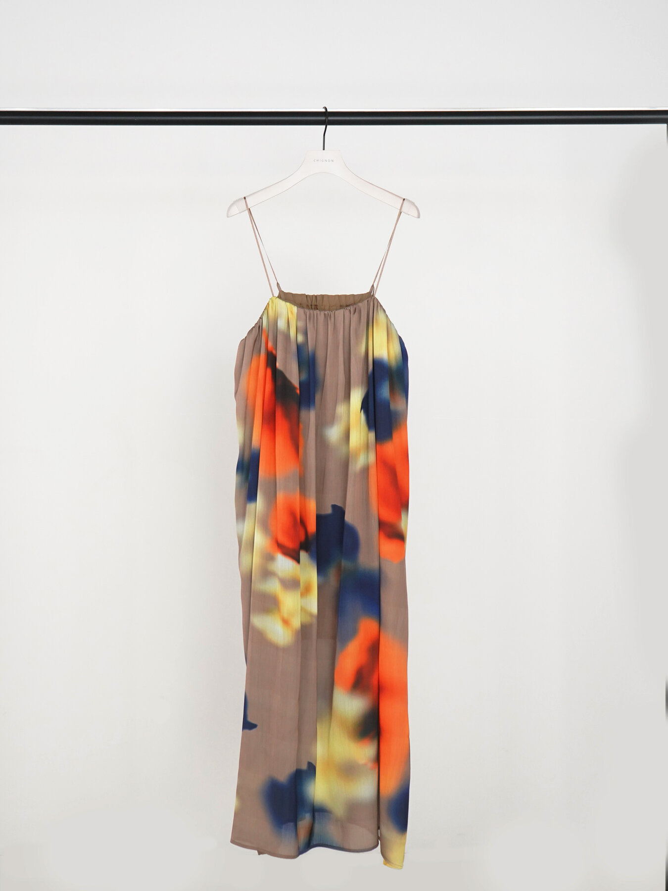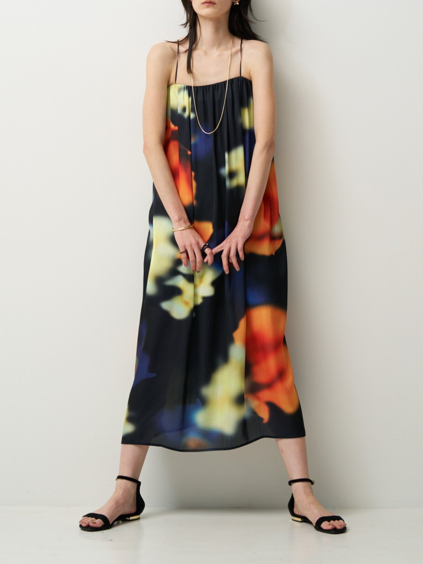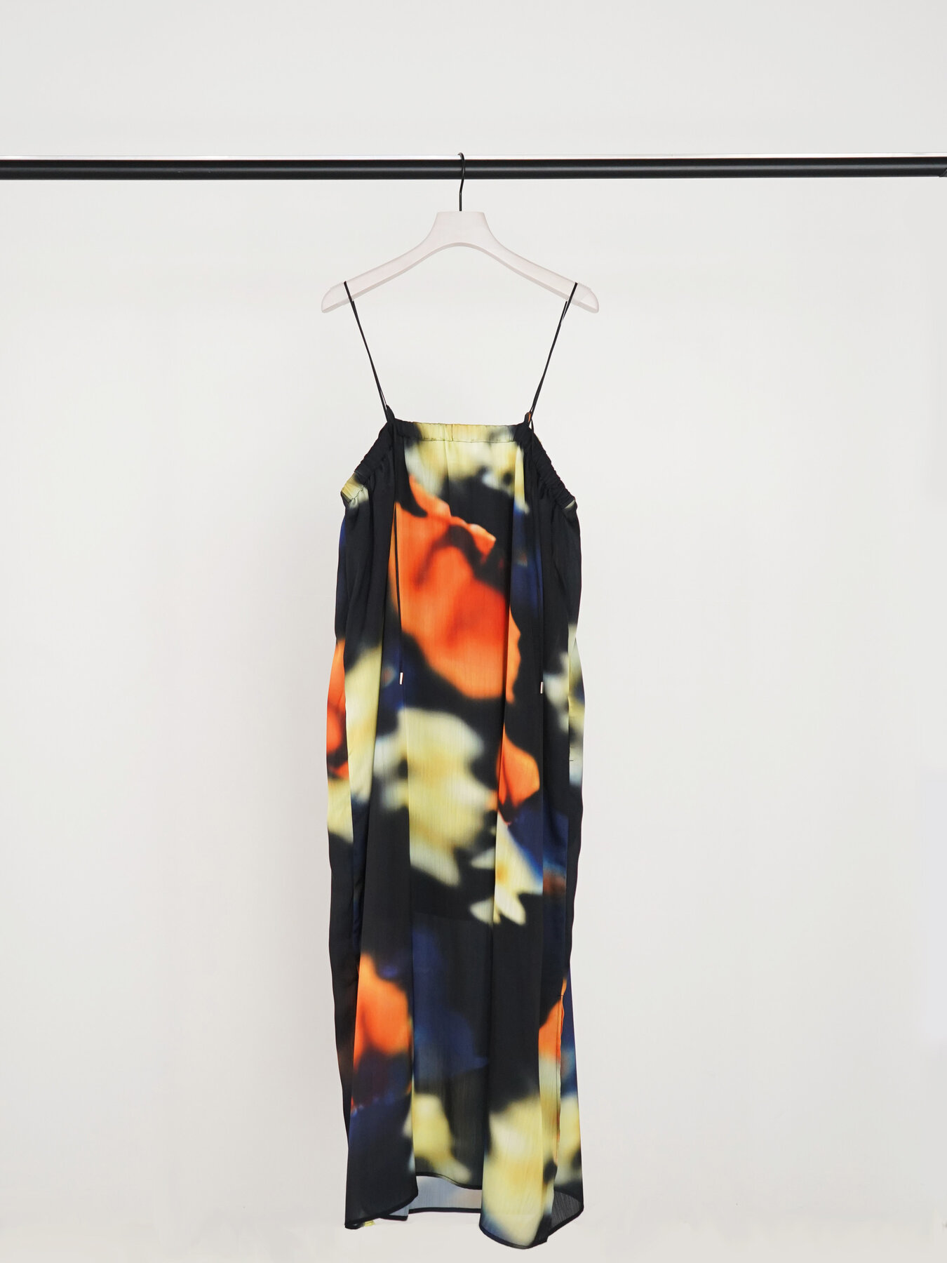 オリジナルで作った霧の中に漂うようなフラワープリントが印象的なキャミワンピース。