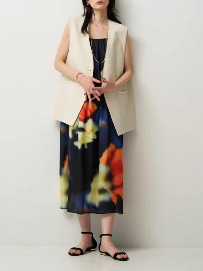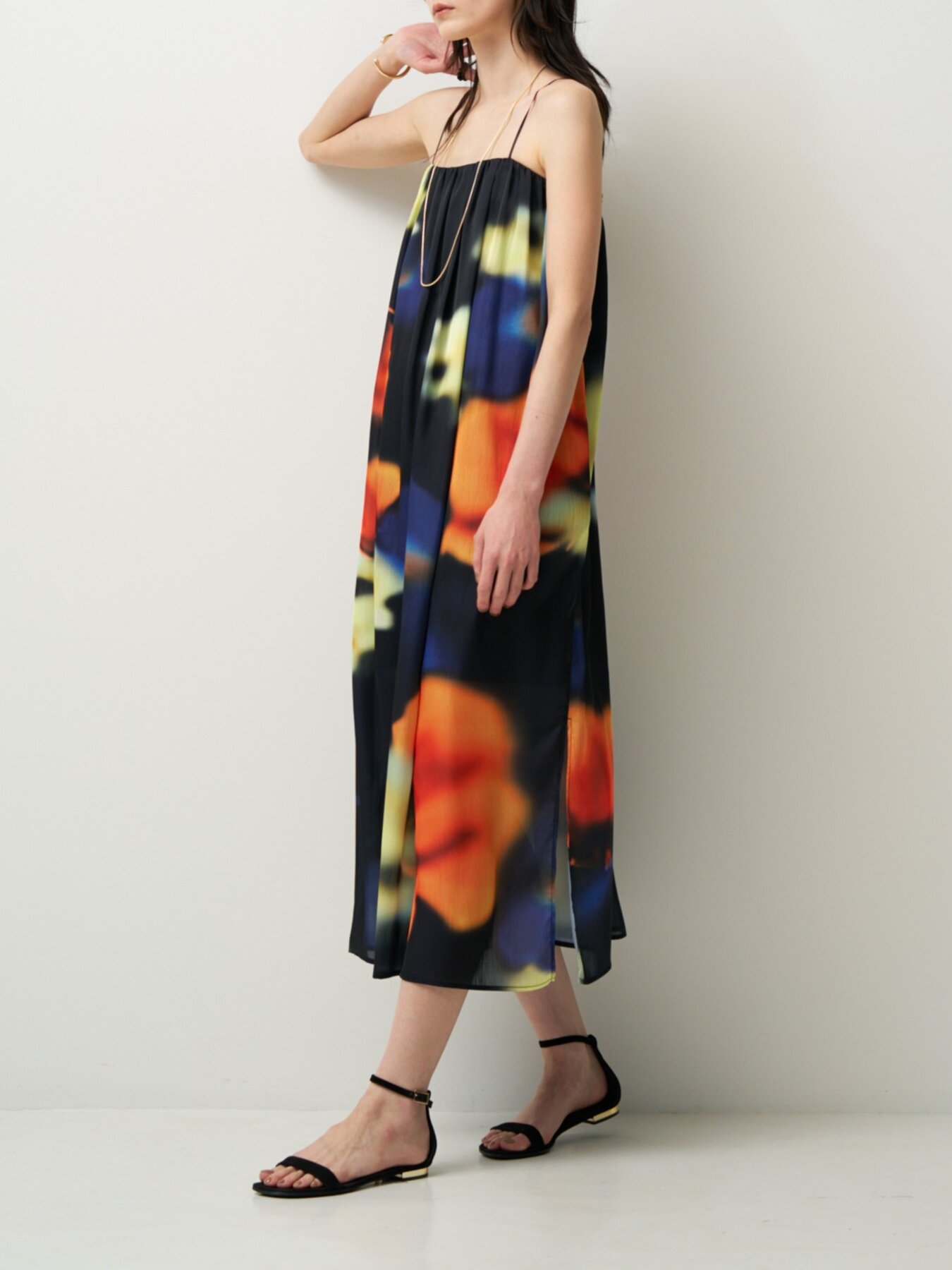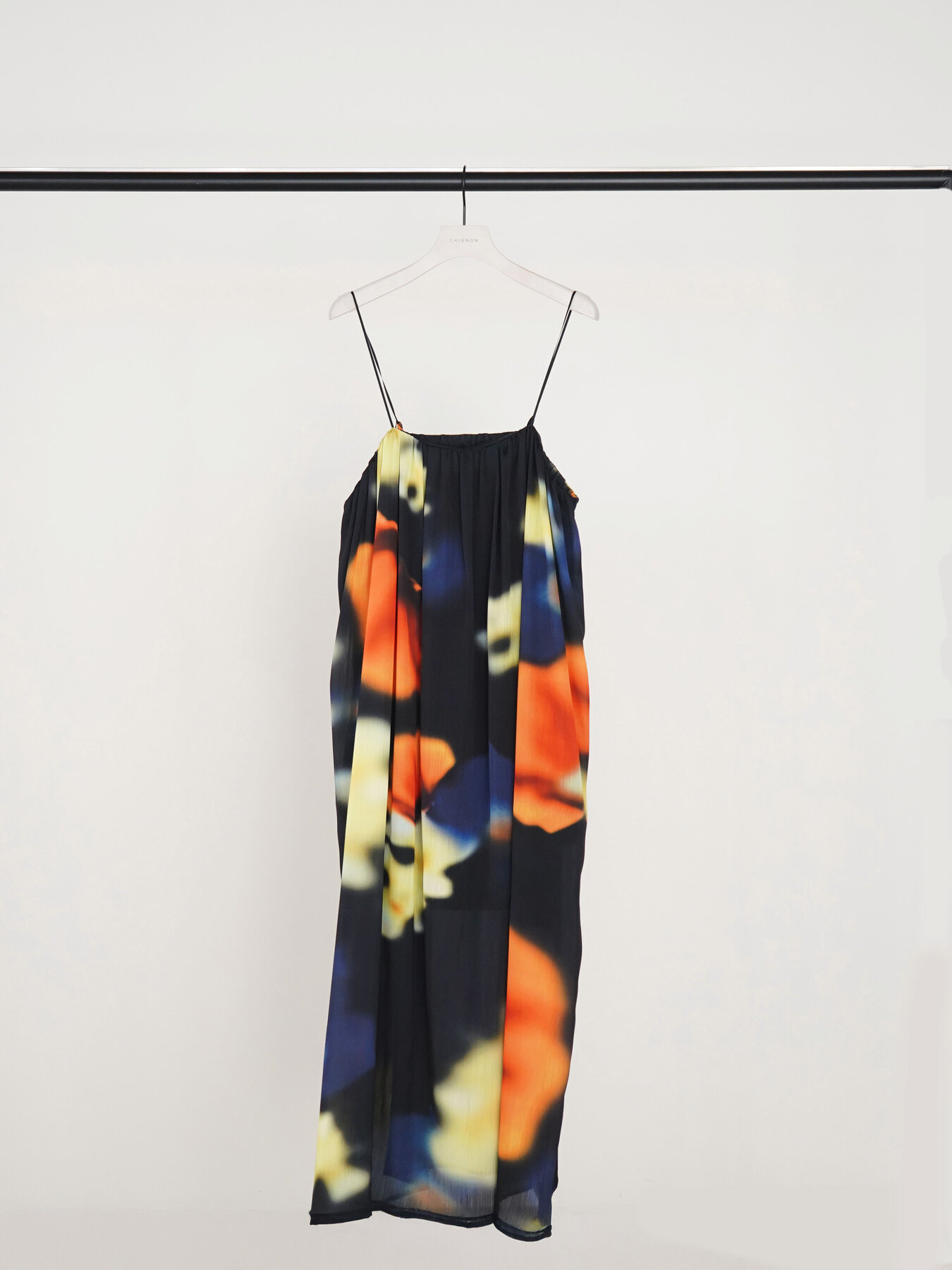 オリジナルで作った霧の中に漂うようなフラワープリントが印象的なキャミワンピース。