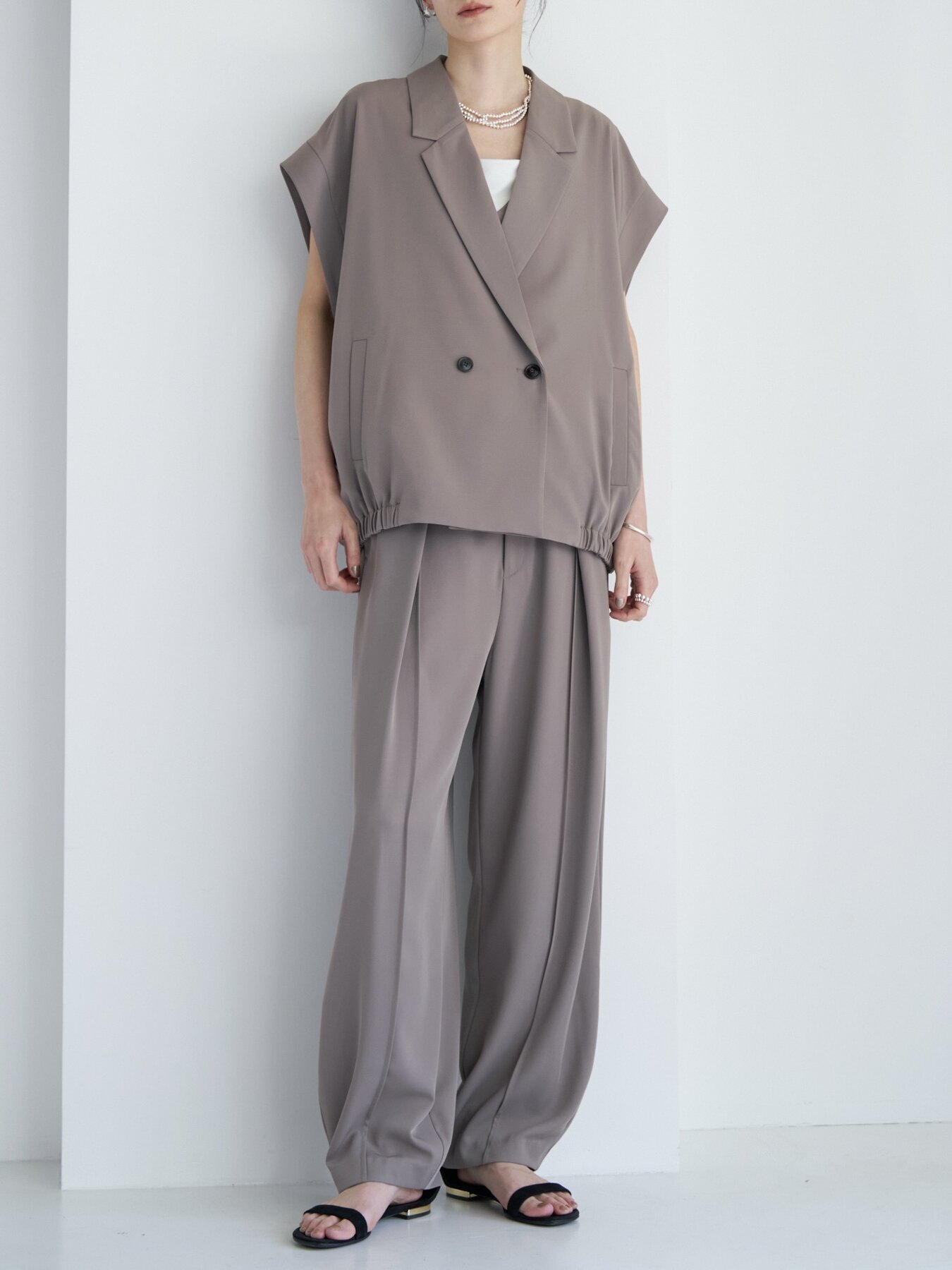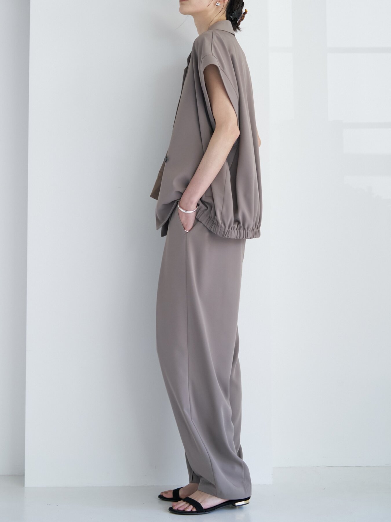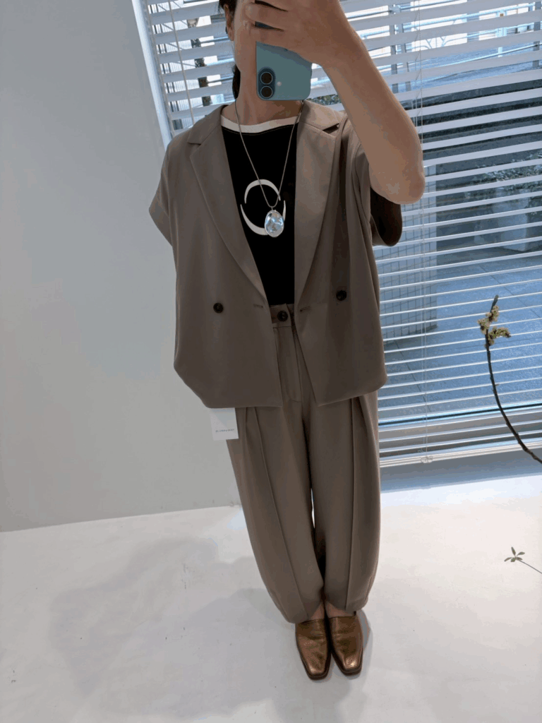 テーラードのきちんと感とブルゾンライクな丸みを掛け合わせたニュアンスジレ。