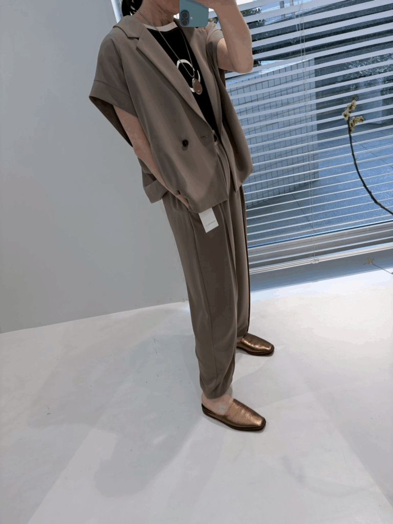 ジレとビスチェ、ジレとパンツ、フルセットなど、気分に合わせてお好みのセットアップスタイルをお楽しみいただけます。