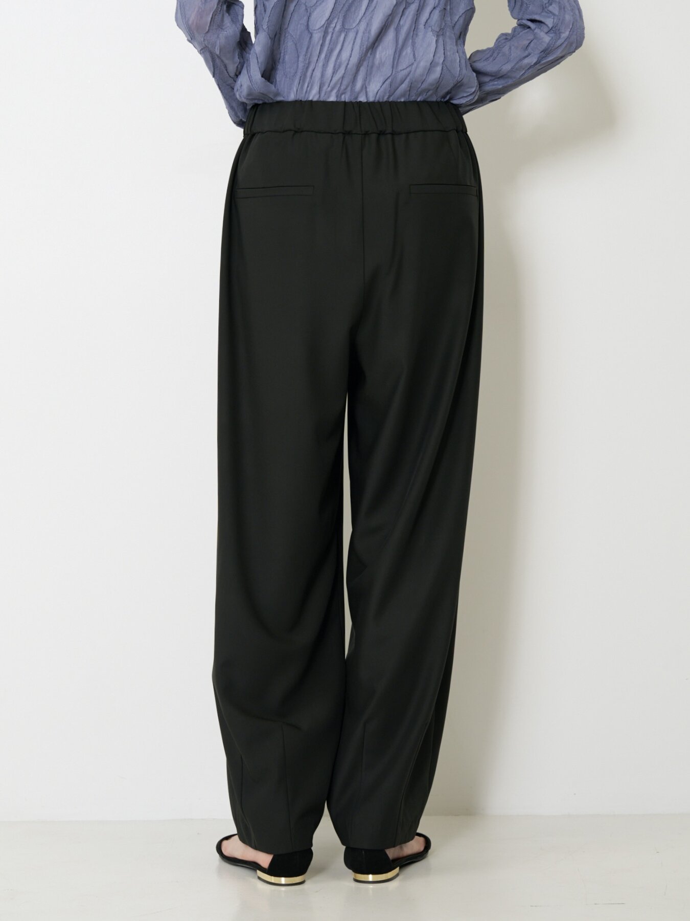 ウエストは後ろゴム仕様で、きちんと見えと快適な履き心地を両立。