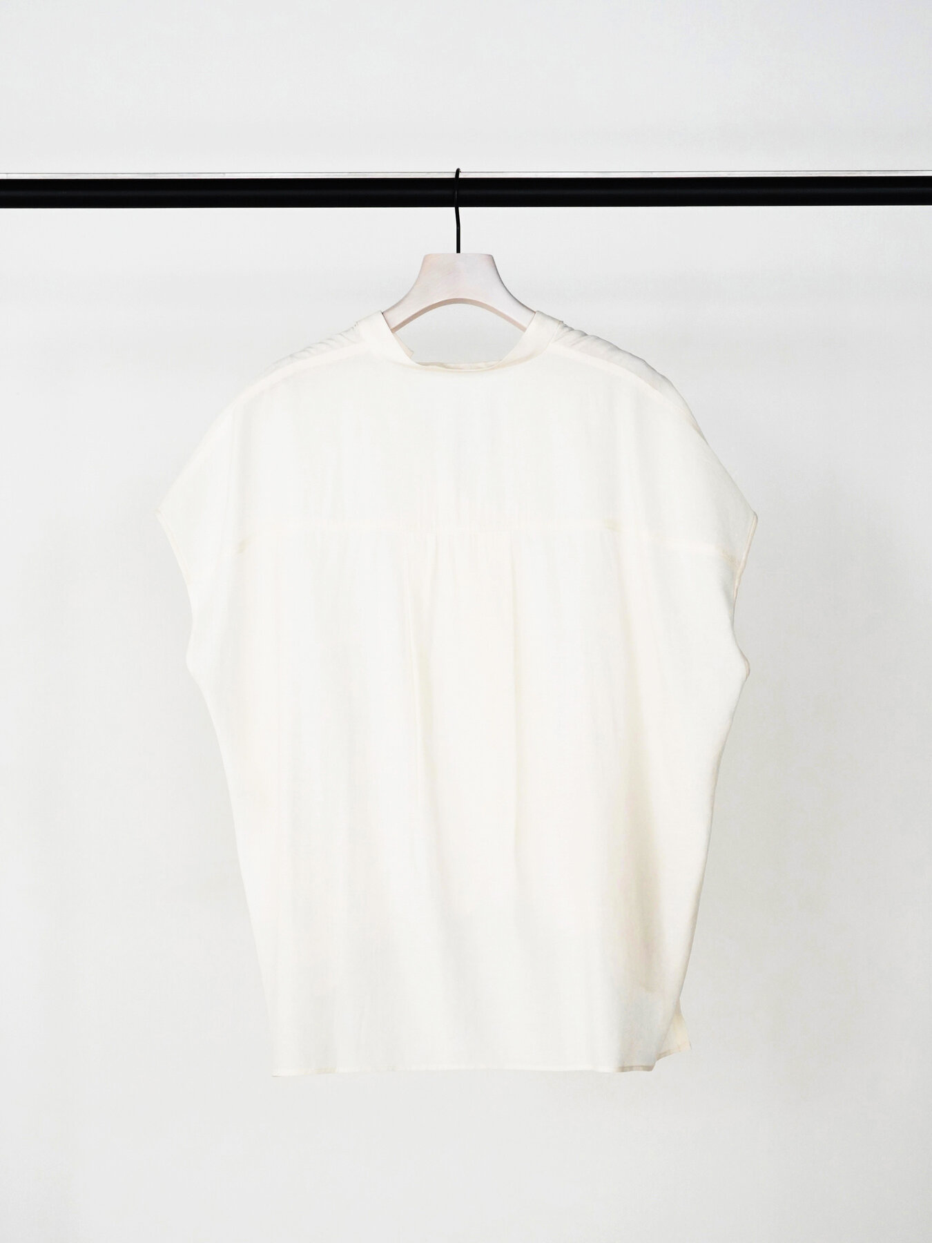 肩を程よく覆うフレンチスリーブと、身体から離れるボックスシルエット。