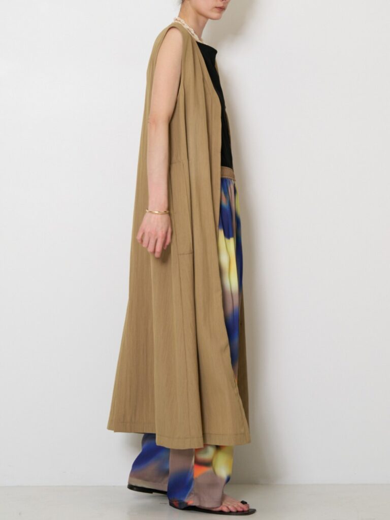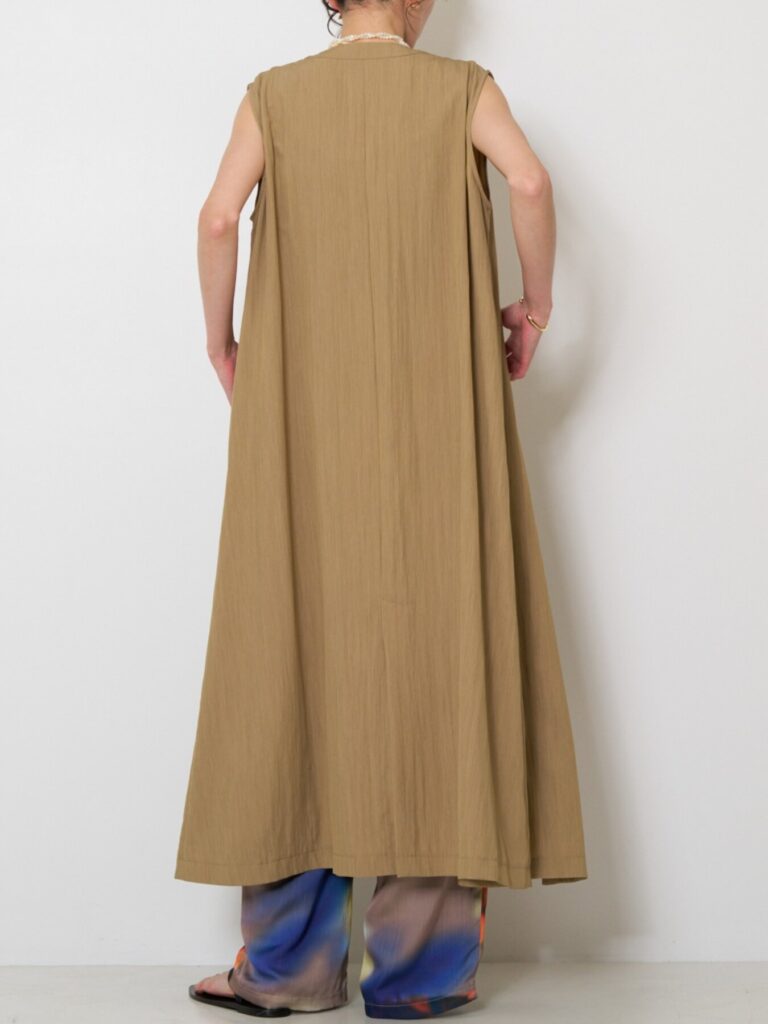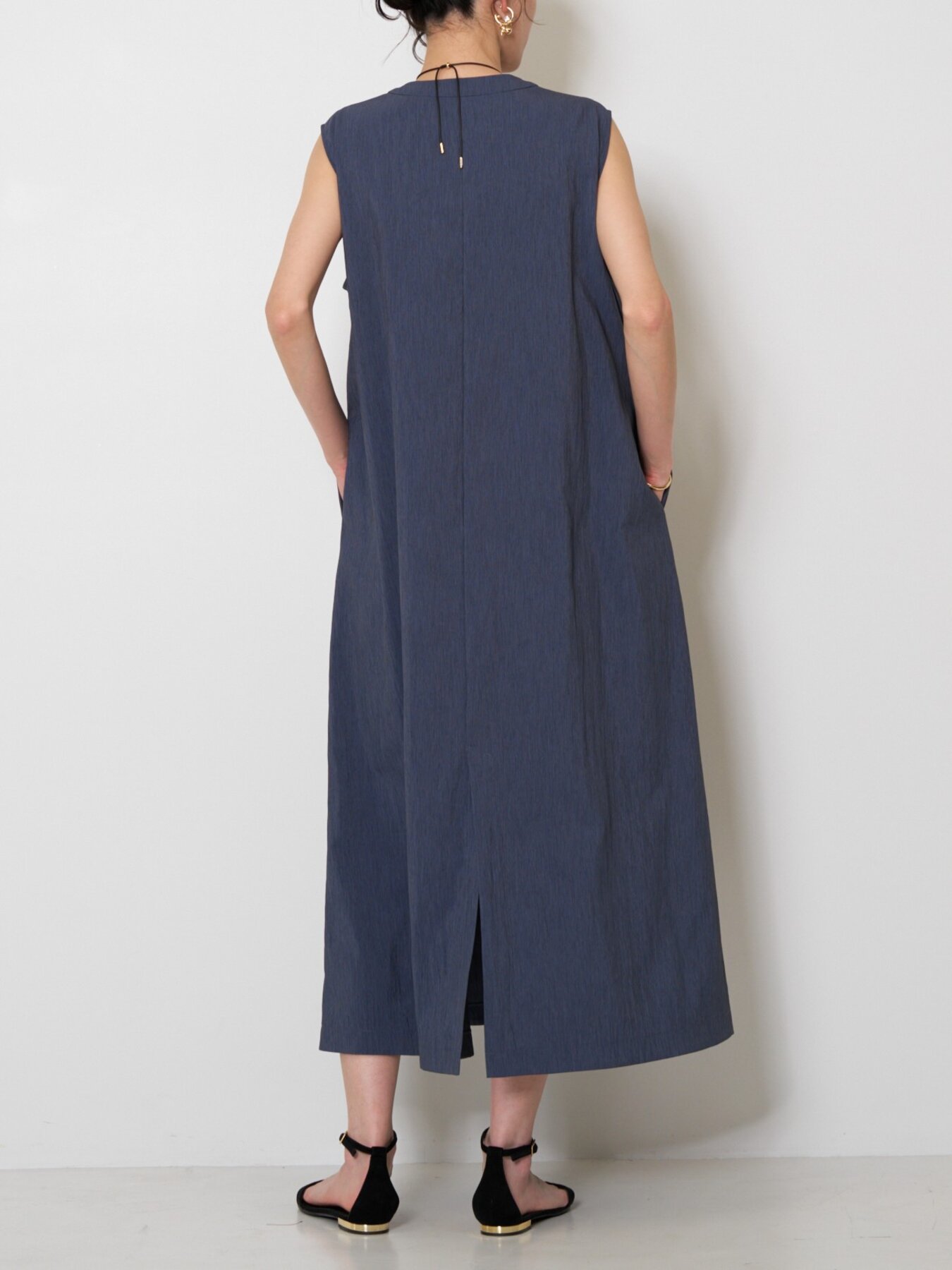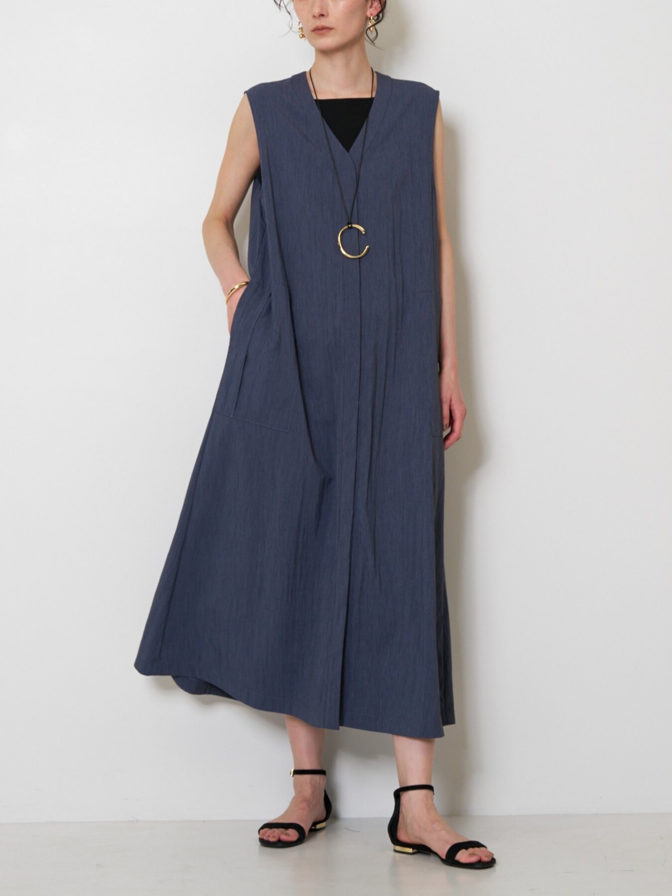落ち感のあるポリエステルレーヨン素材を使用したロングワンピース。