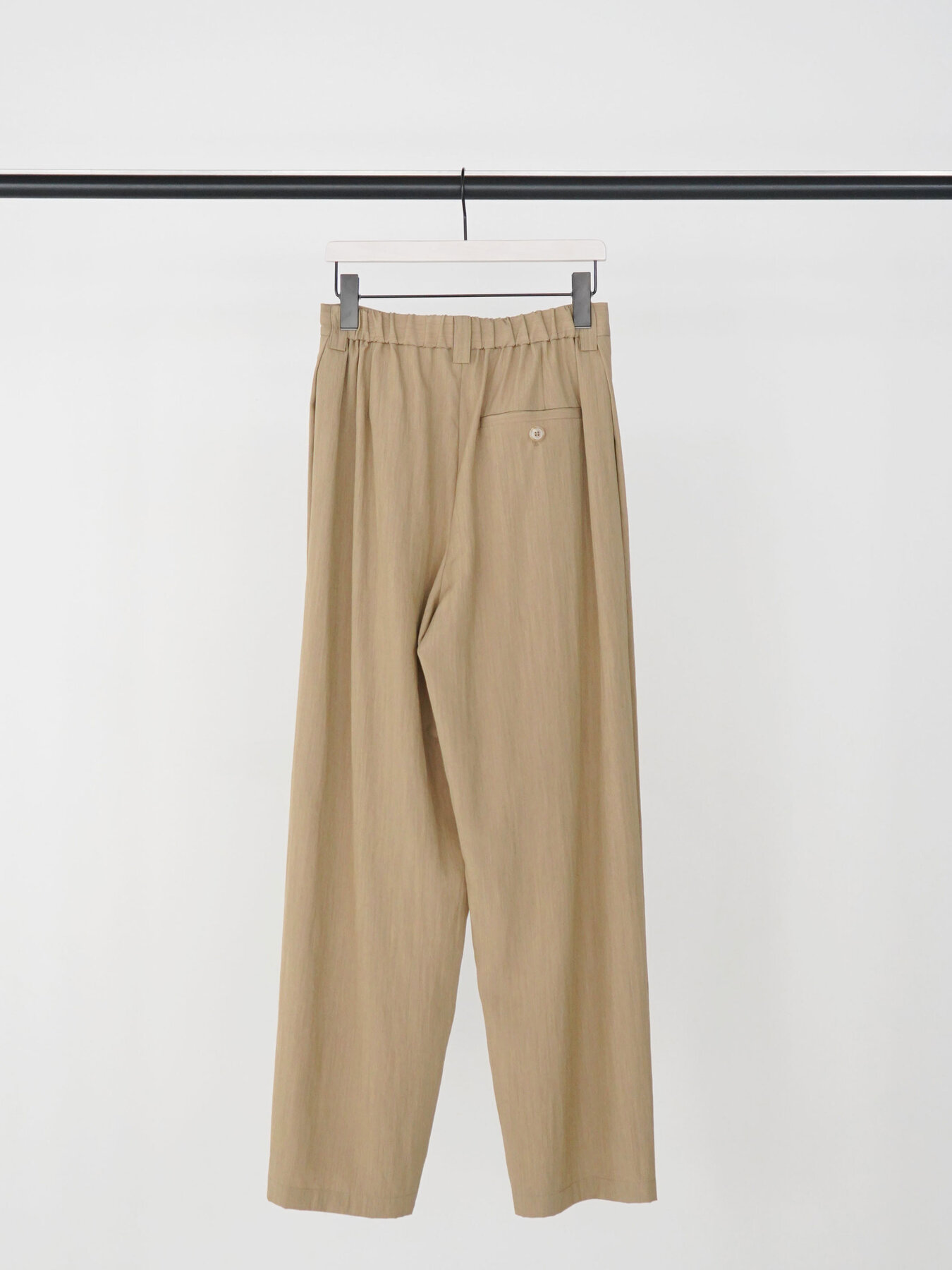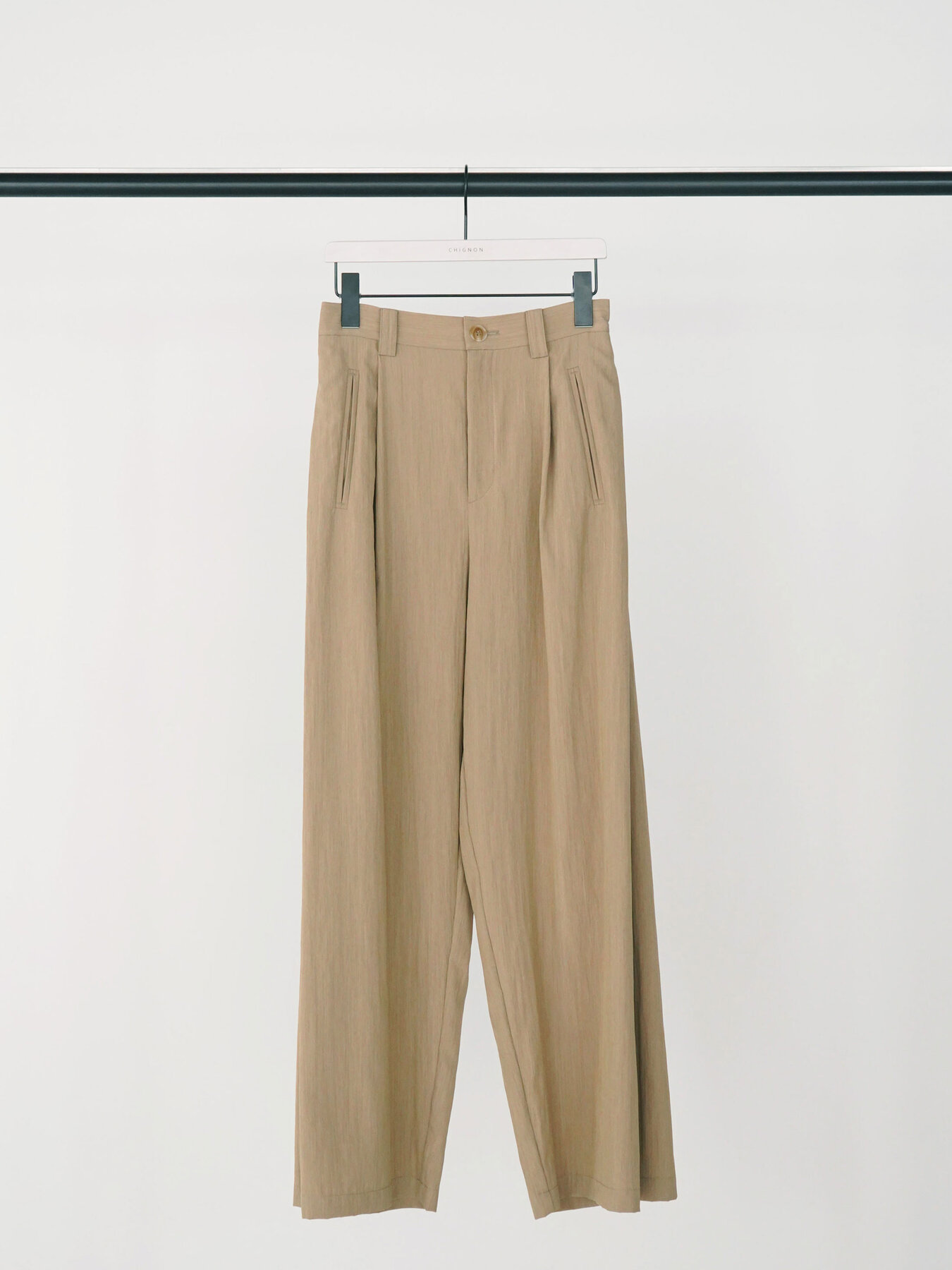 落ち感のあるポリエステルレーヨン素材を使用した、サイドタックがポイントのワイドパンツ。しなやかなドレープ感があり、動きのある美しいシルエットを演出します。