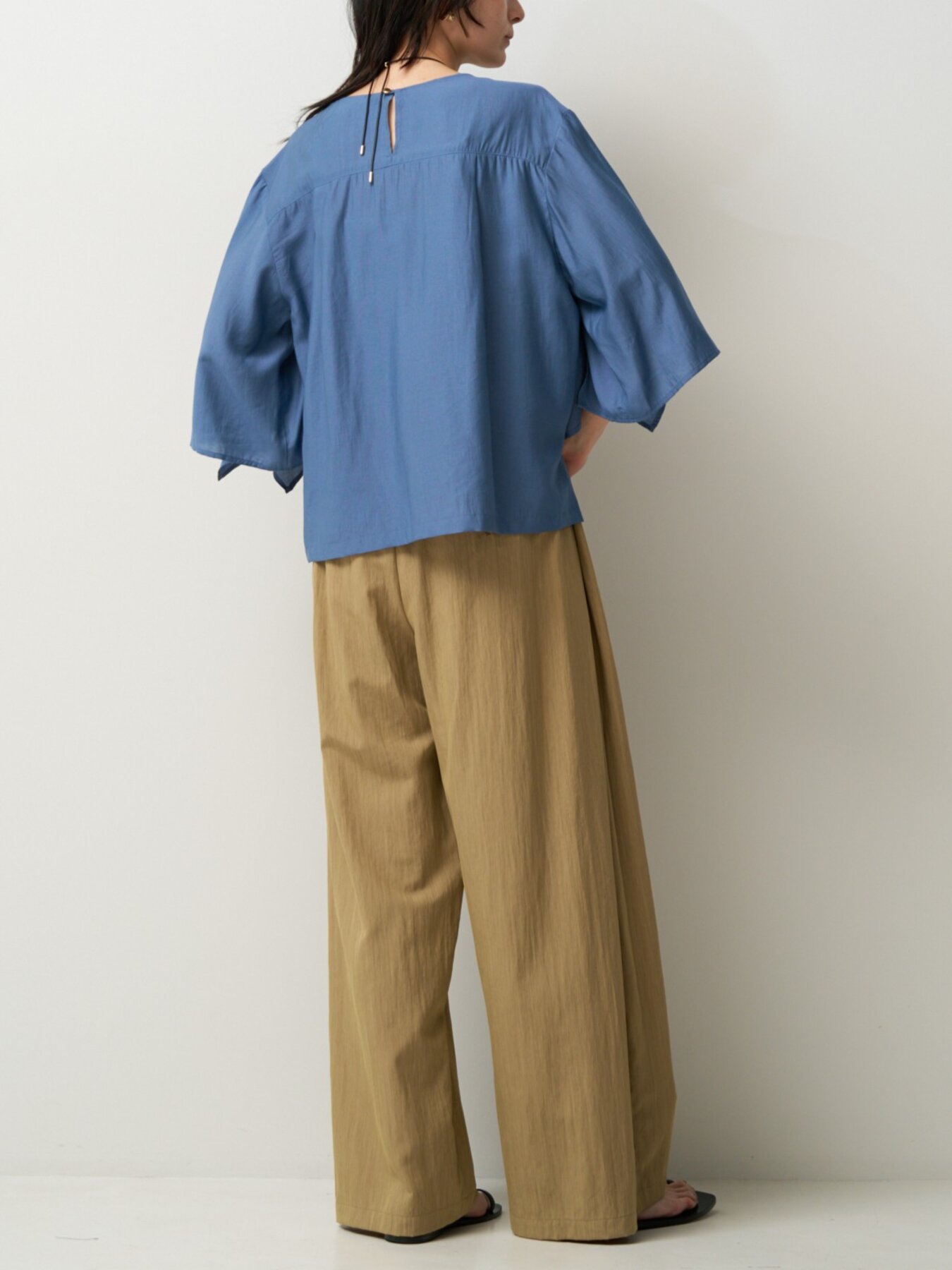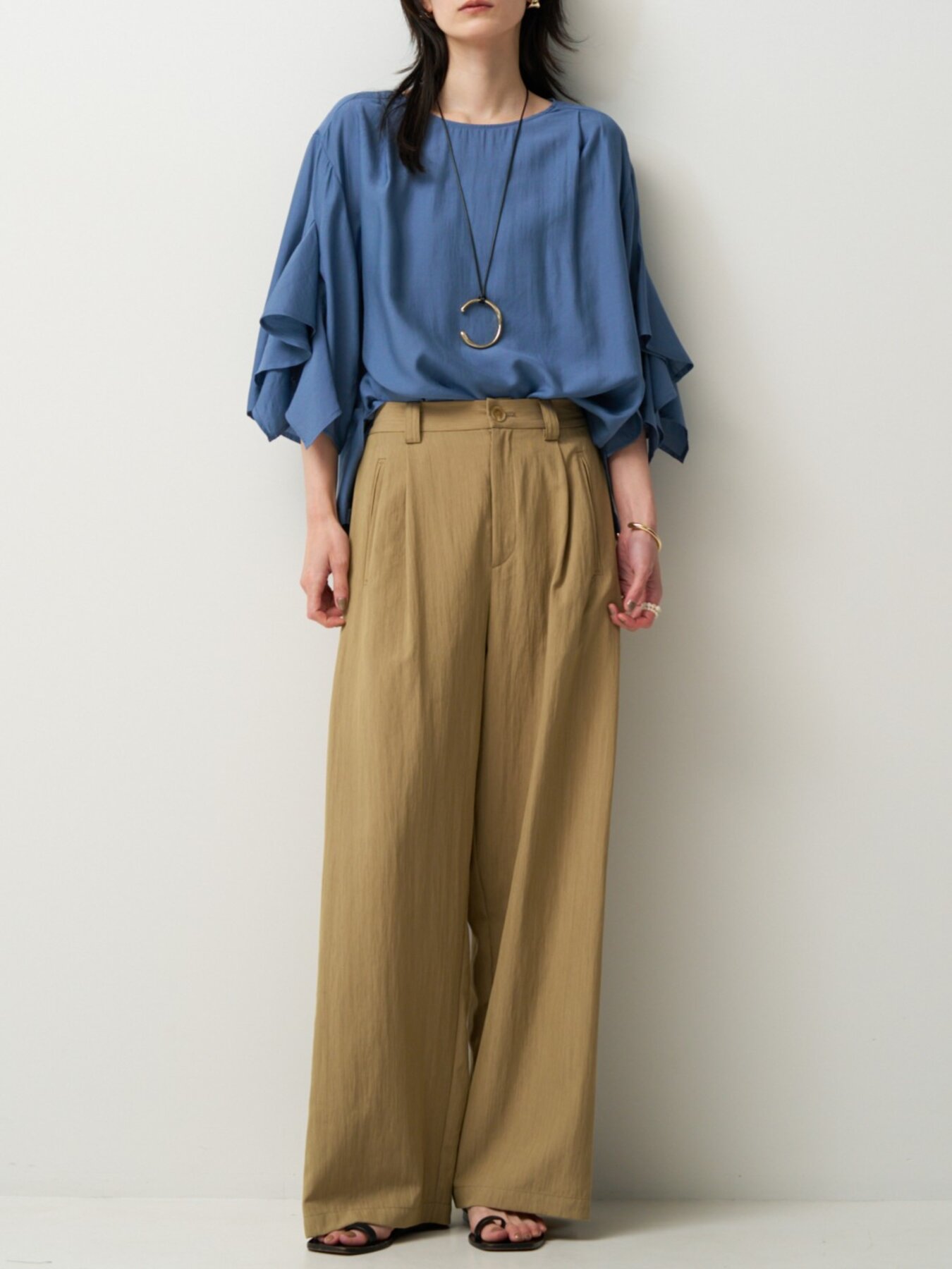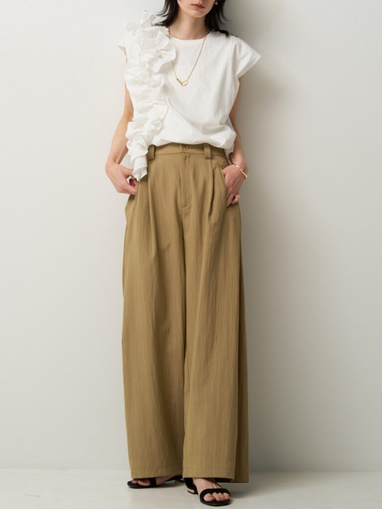 ゆとりのあるサイズ感ながら、裾にかけてやや入ったラインですっきりとした印象に。シンプルなトップスと合わせるだけで、こなれたスタイリングが完成します。