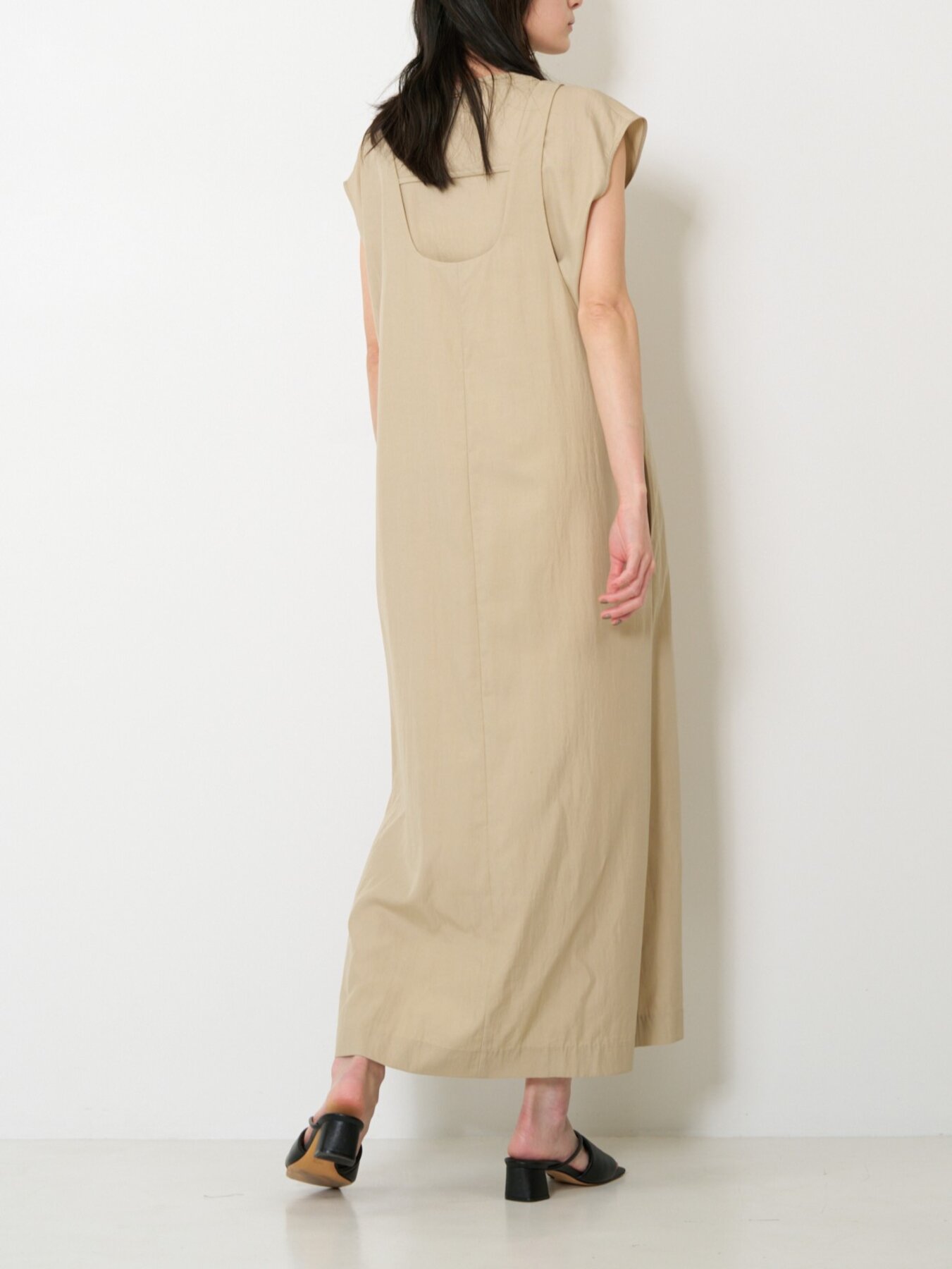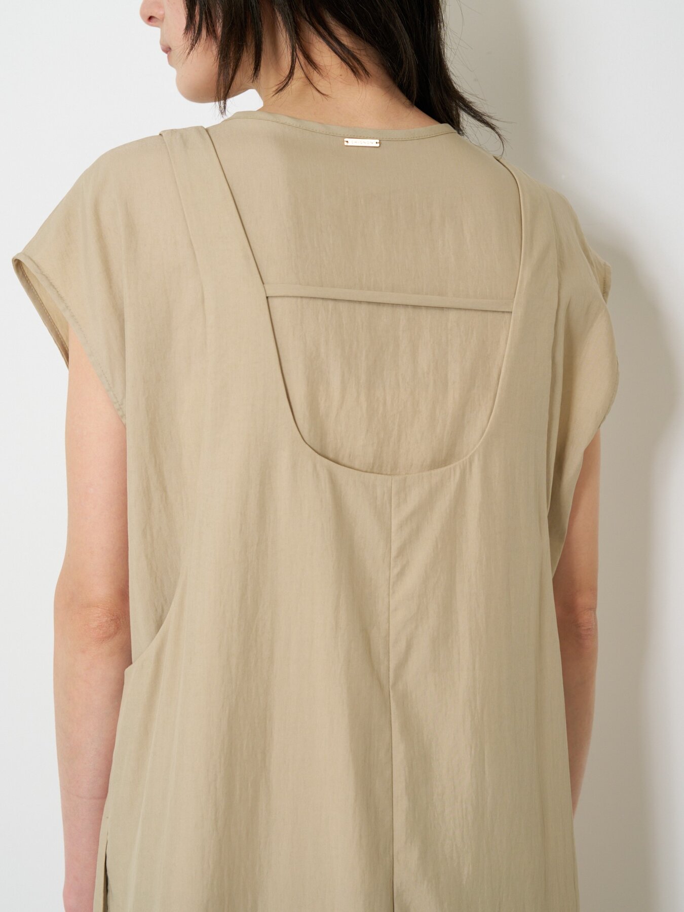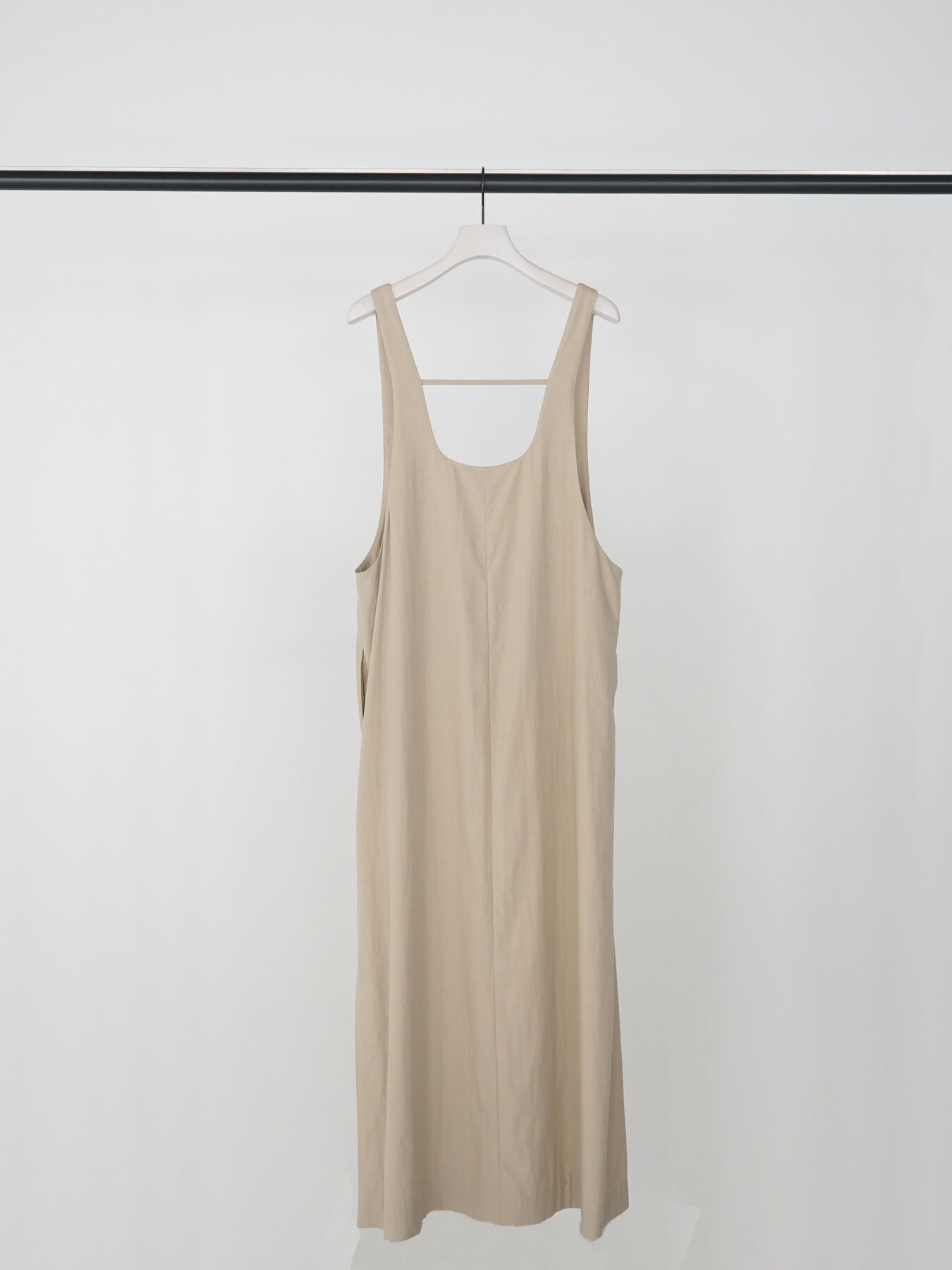 インナーとのレイヤードを楽しむために設計された、デザインをそぎ落としたミニマルなジャンパースカート。