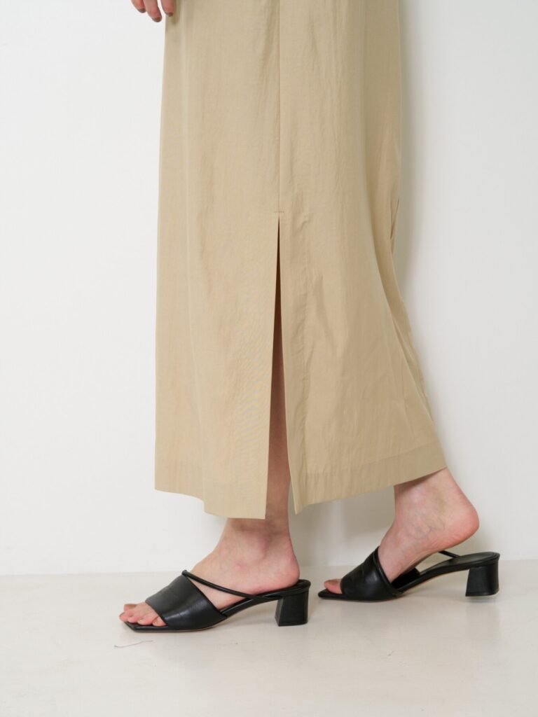 身体のラインを拾いにくいストレートシルエットに、軽やかで落ち感のある素材を使用し、リラックスした着心地と洗練された印象を両立。