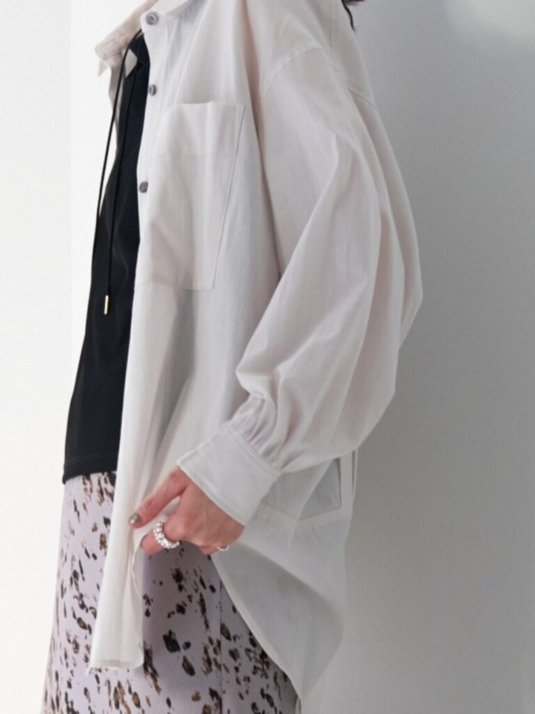 ほんのり透け感のあるシアー素材を使用した、軽やかなオーバーサイズシャツ。