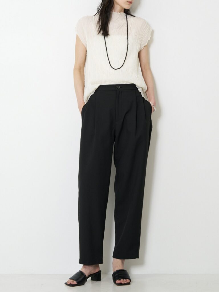 腰まわりに程よいゆとりを持たせ、裾にかけてすっきりと細くなる美しいテーパードシルエット。