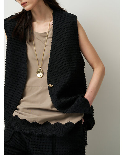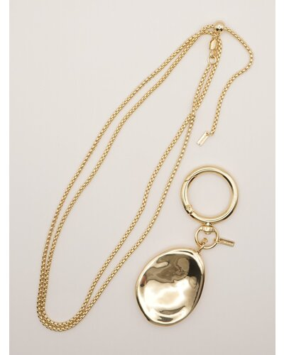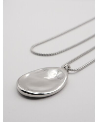 波打つ表面がきれいなたまご型モチーフと、スライドビーズで簡単に長さ調節可能なチェーンネックレスの組み合わせは、つけるだけでいつものコーディネートが締まる万能ネックレスです。